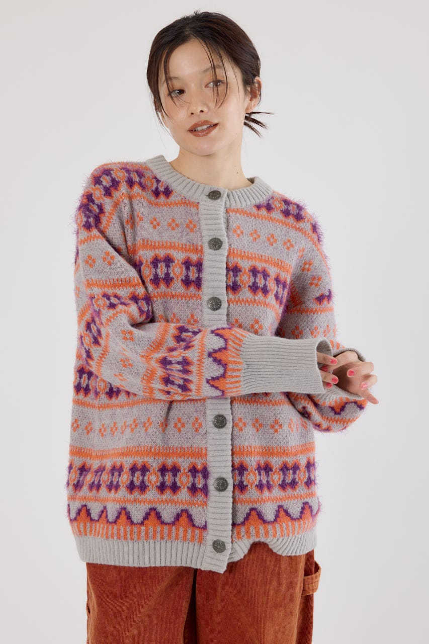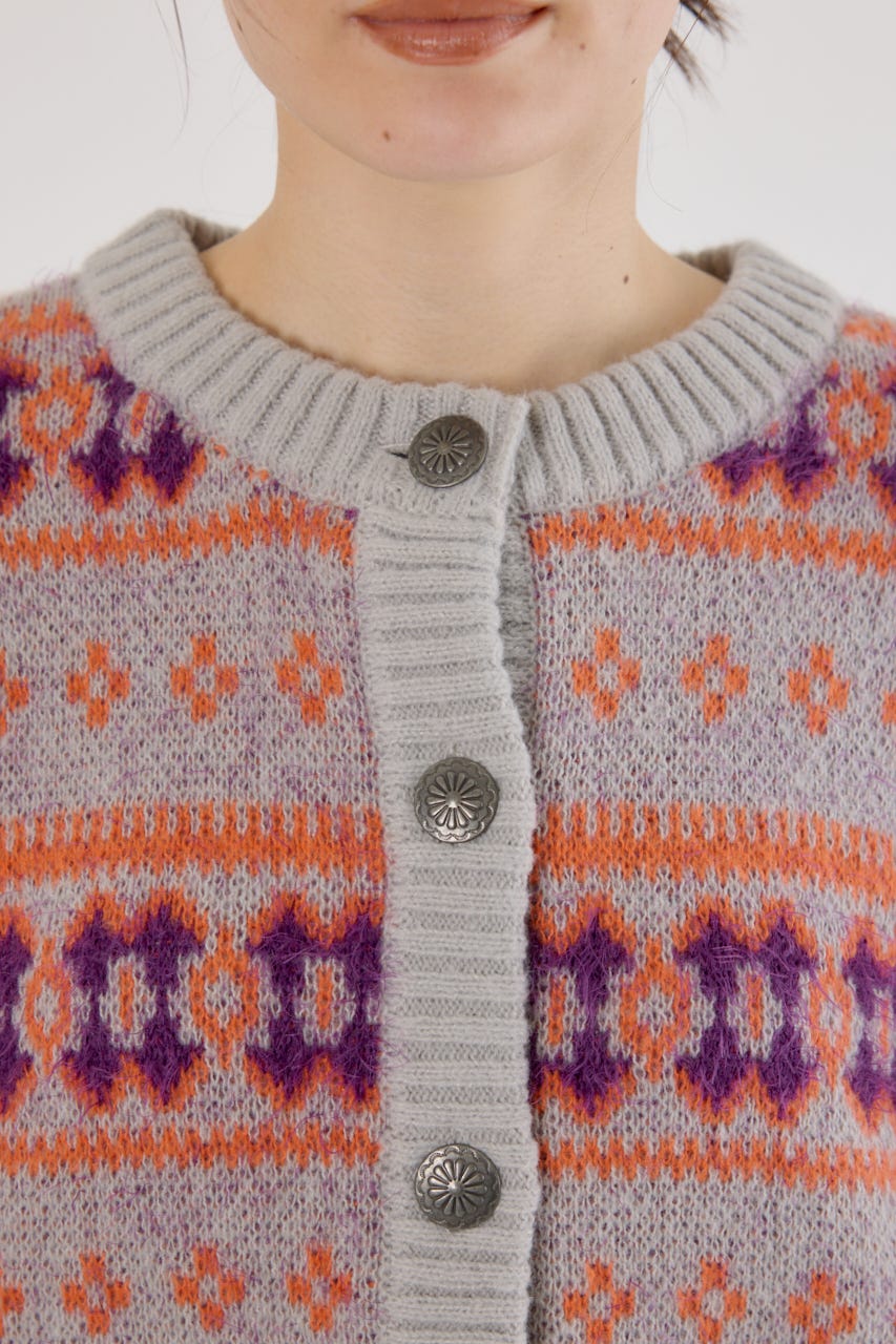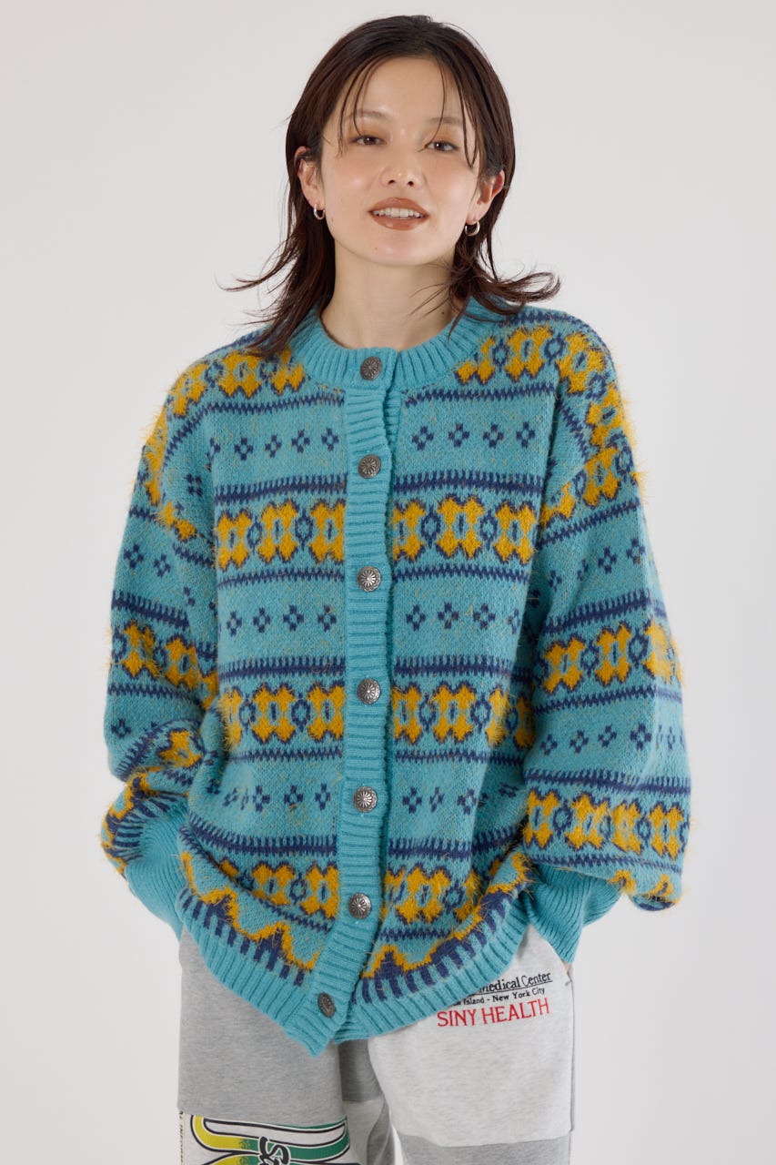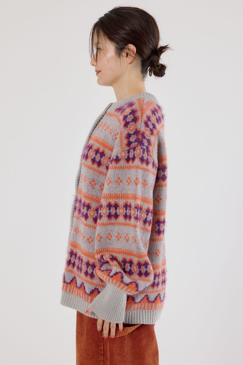 シャギー意匠糸を使用しているため、素材特性上、編地表面にネップや糸の浮きが多少生じる場合があります。