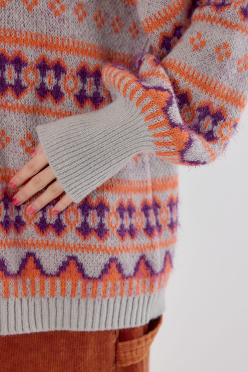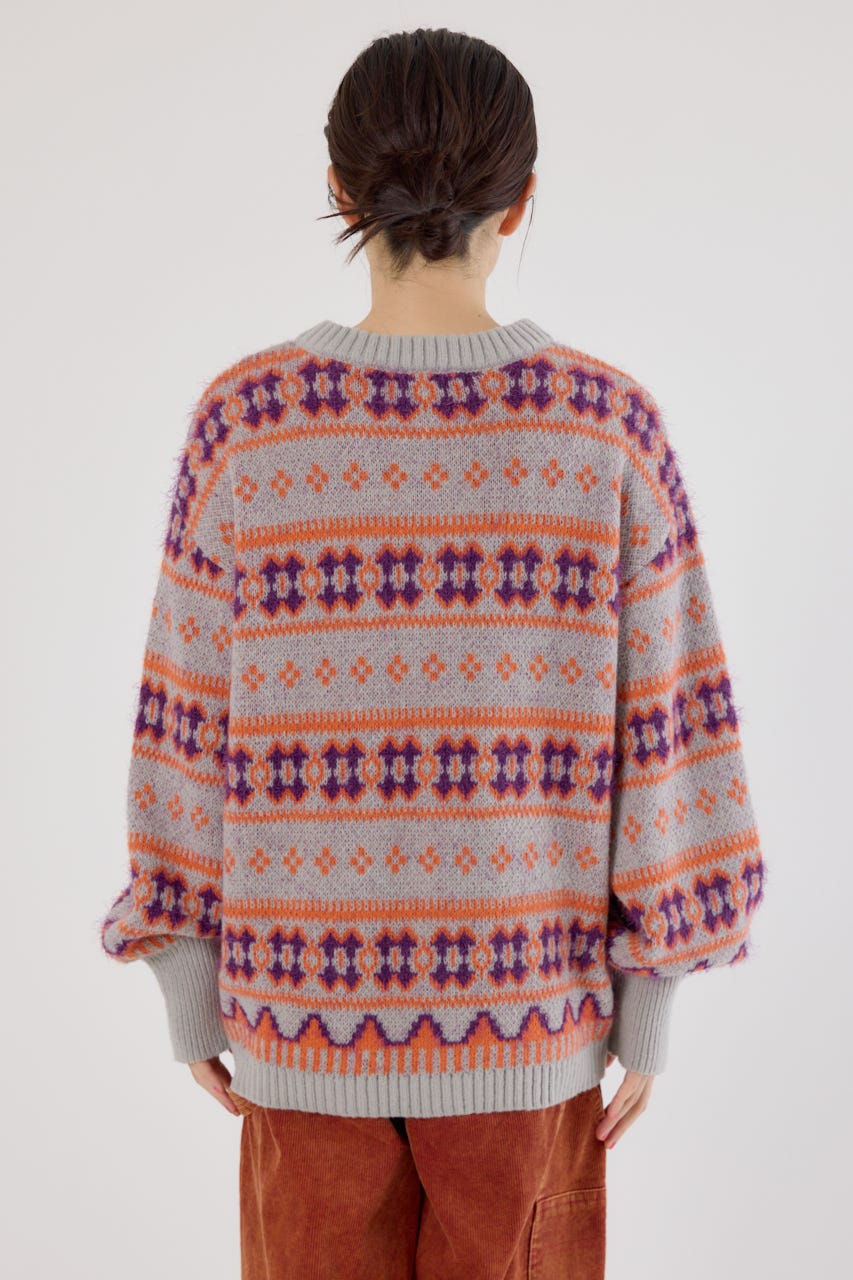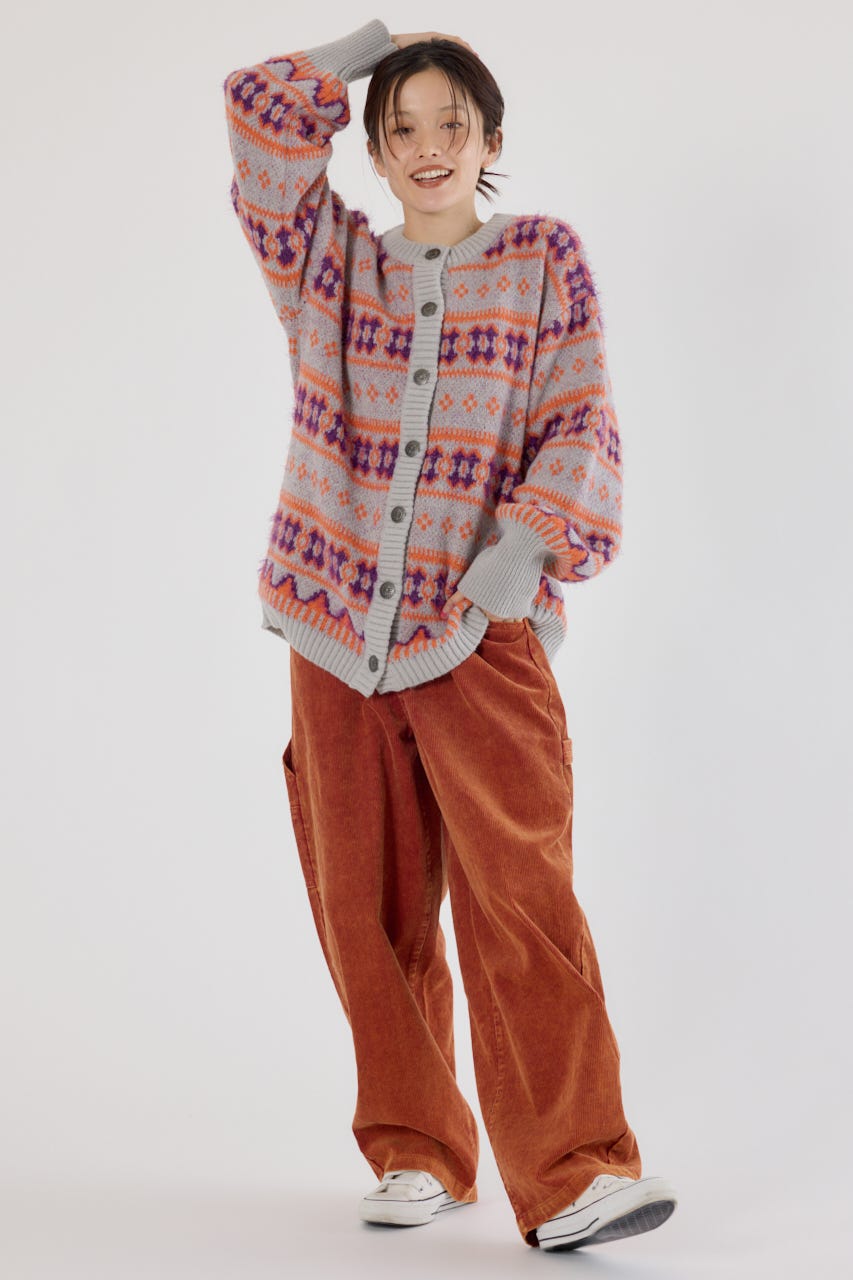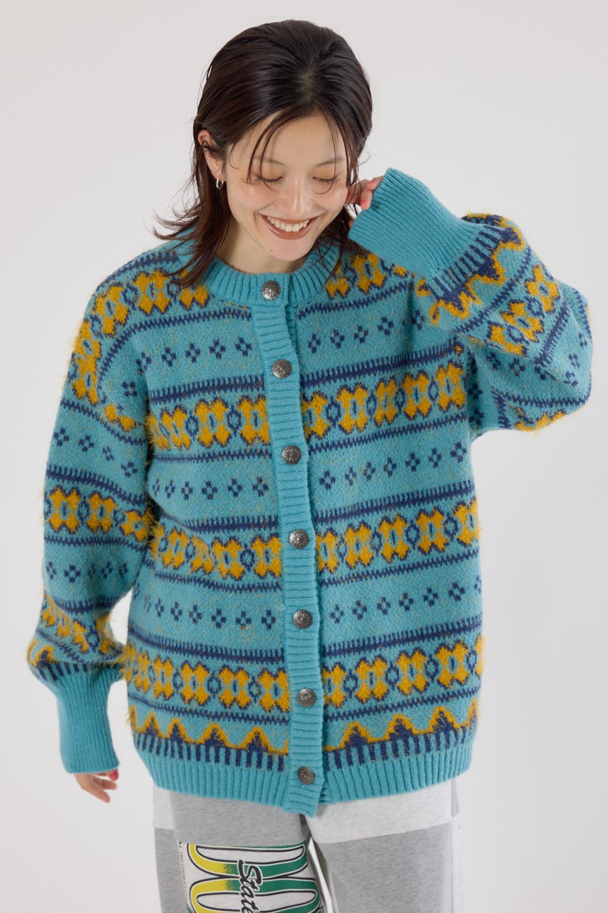 シャギー意匠糸を使用しているため、素材特性上、編地表面にネップや糸の浮きが多少生じる場合があります。