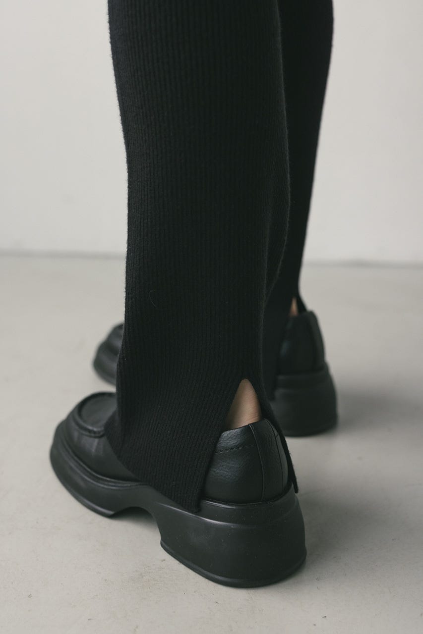 あえて長め丈に仕上げていて、シューズの上にレギンスを被せたりスリットからシューズをのぞかしたスタイリングがおすすめです。
