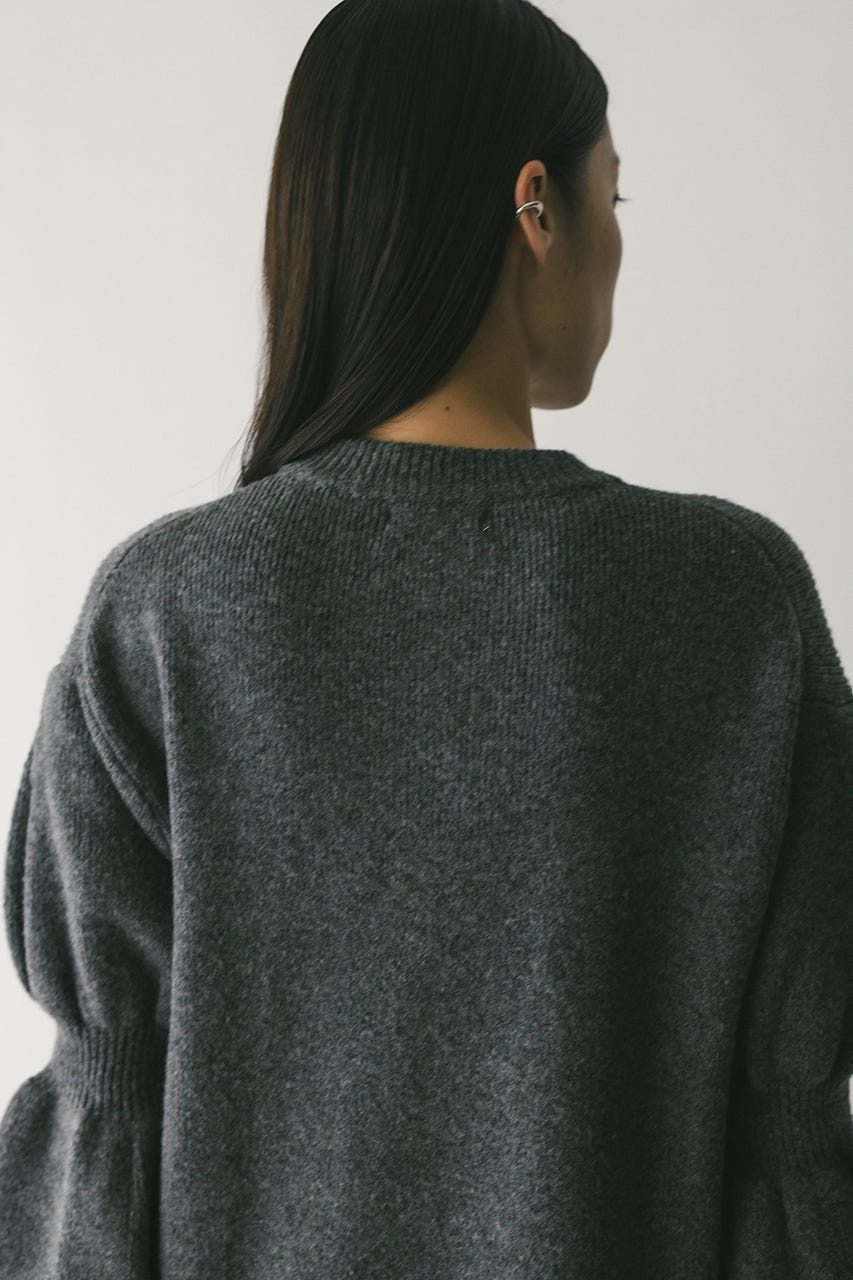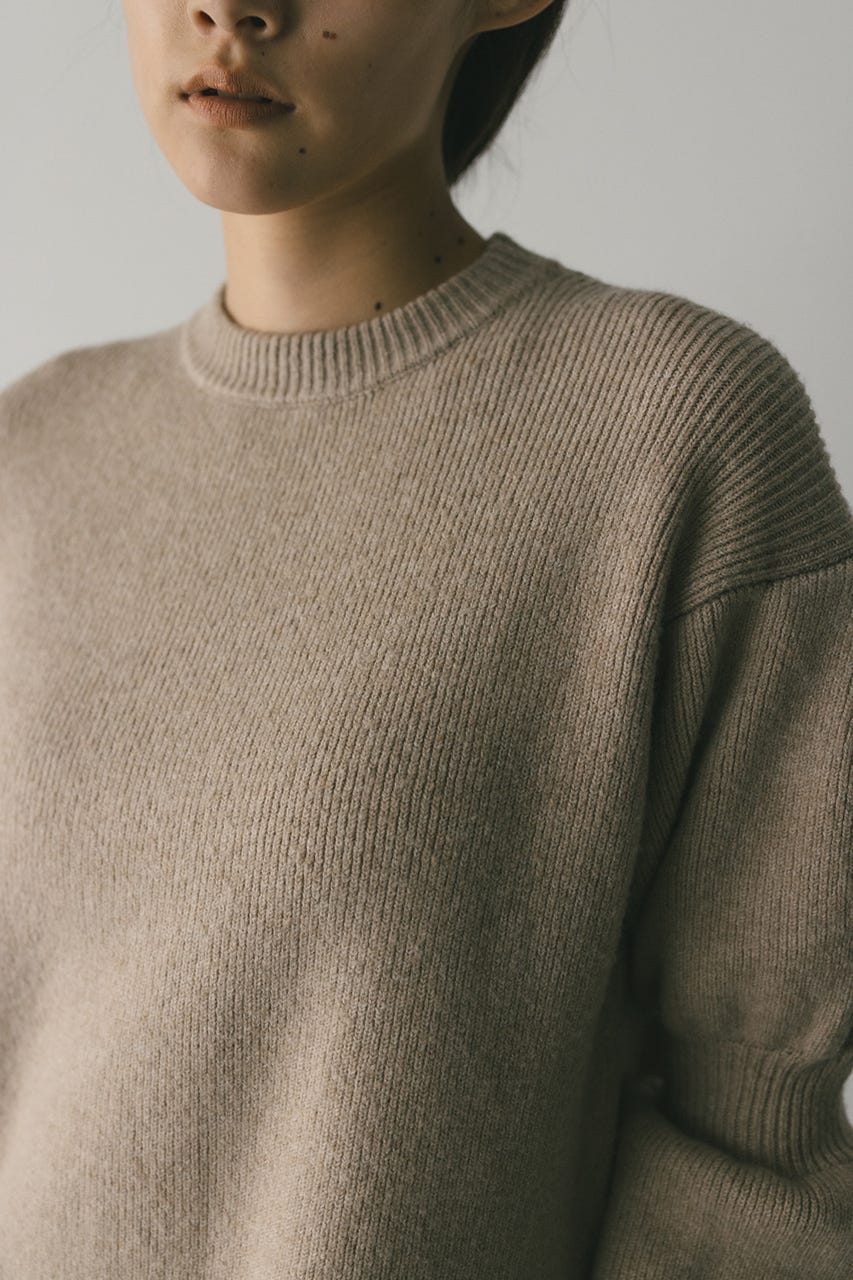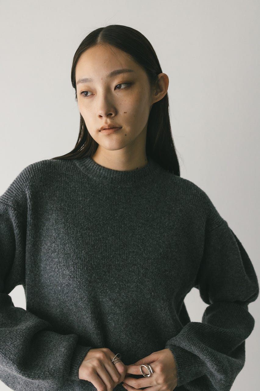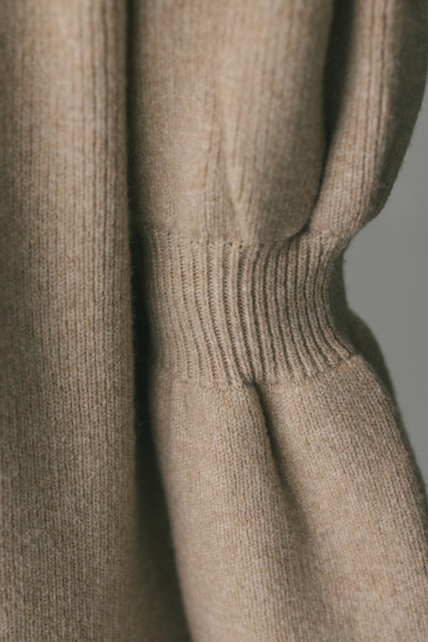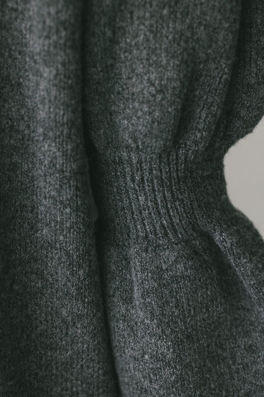 身頃は片畦で編みたてることで、しっかりとした厚みがある身体のラインを拾いにくい仕様に仕上げました。