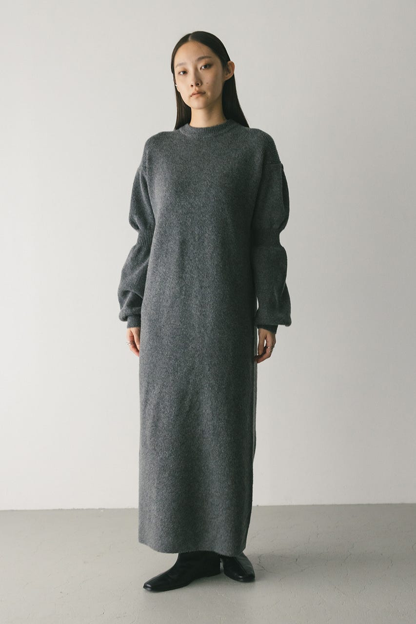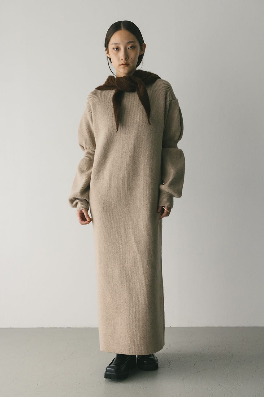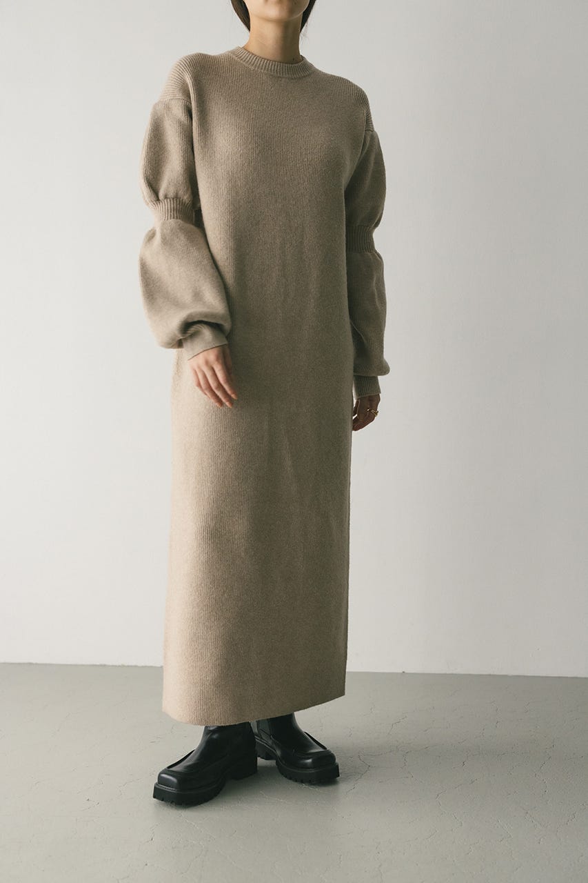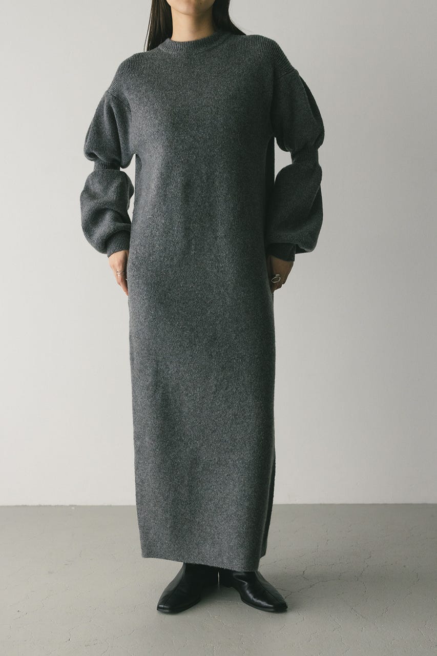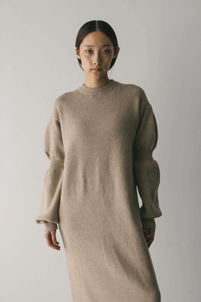 キャンディーのようにパフっとした袖がポイントのニットワンピース。