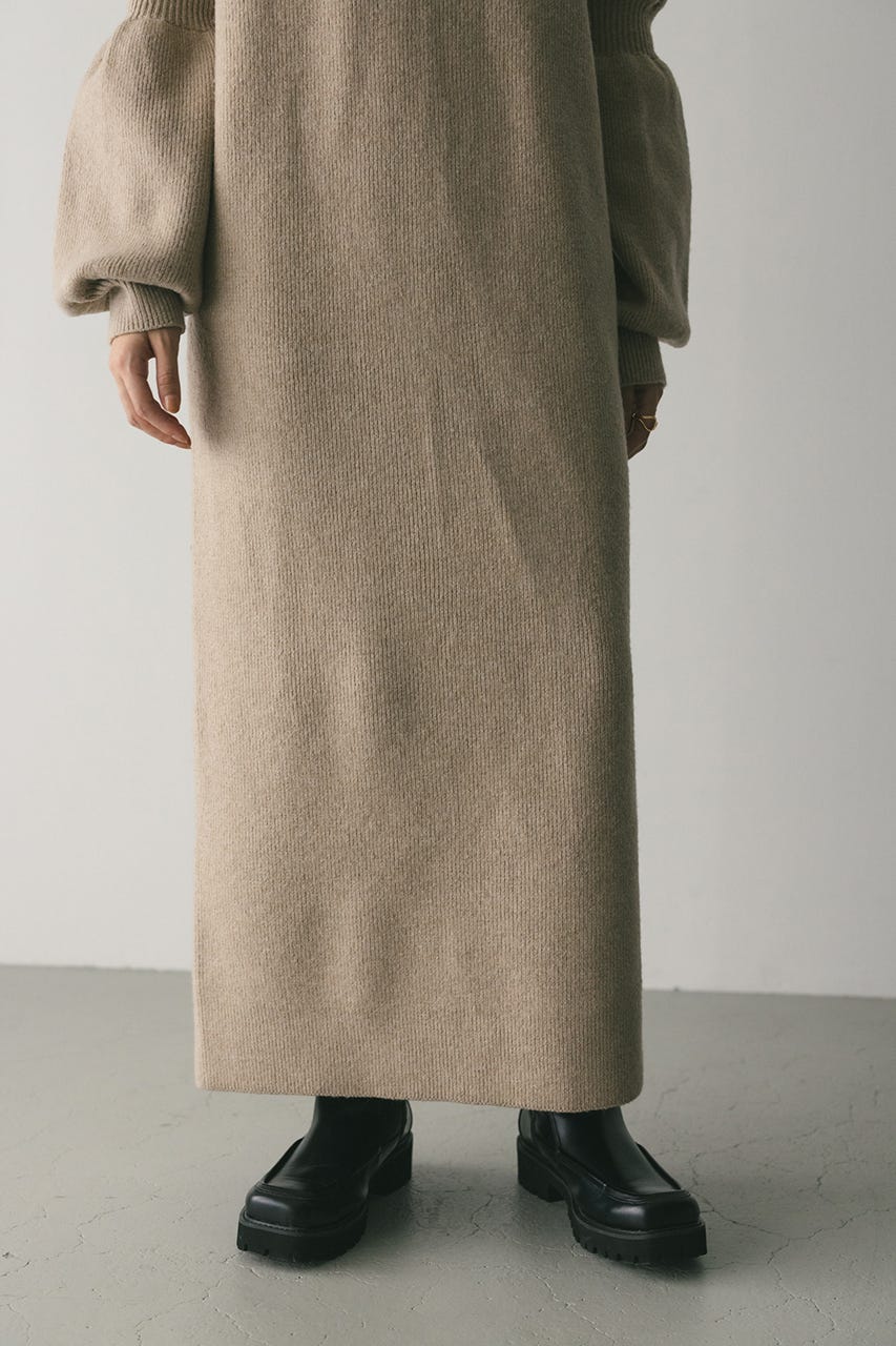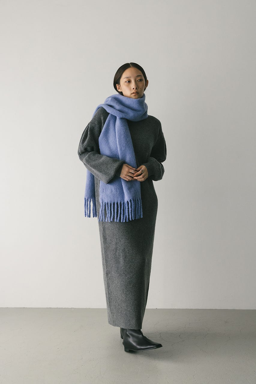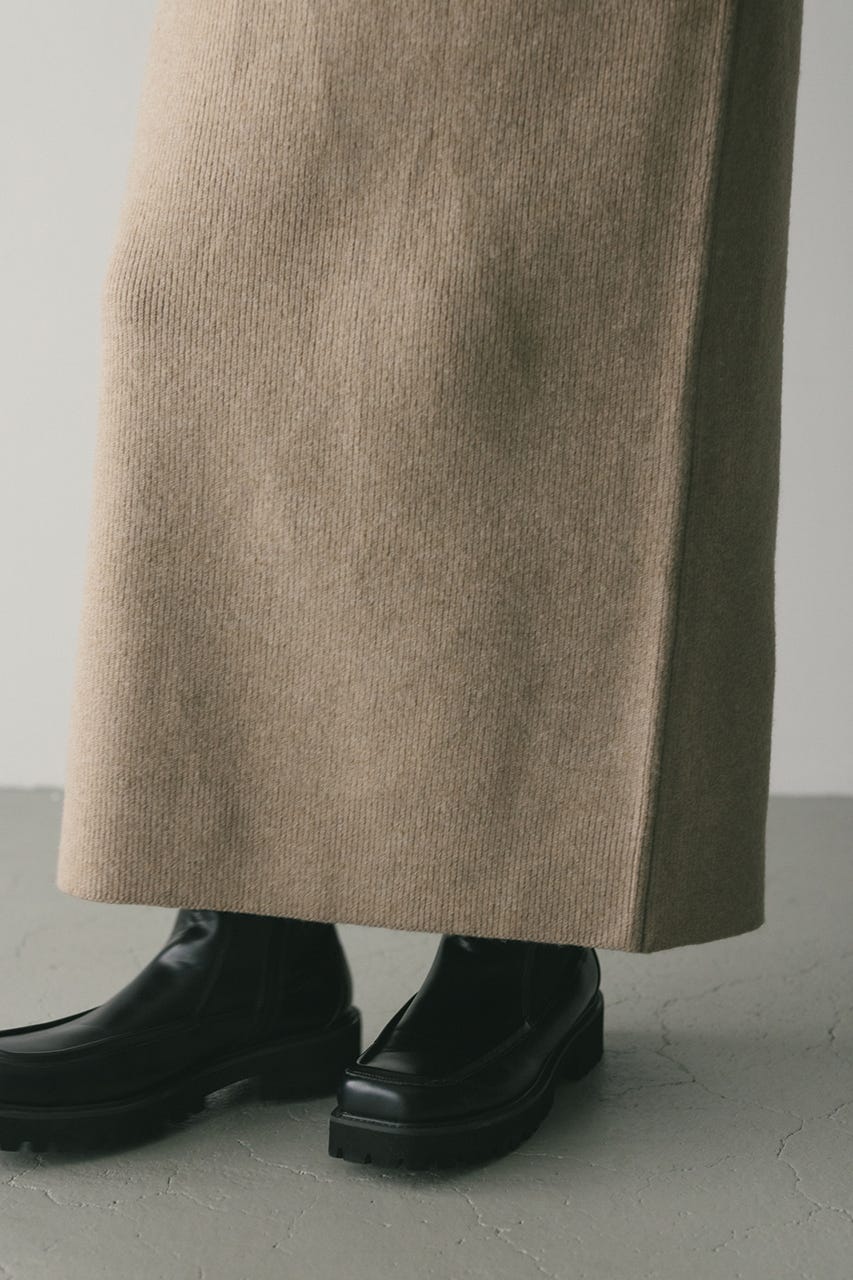 あえて身頃はストレートシルエット、ロング丈にすることで、甘さの中にもスタミキらしいモードな雰囲気をプラスしています。