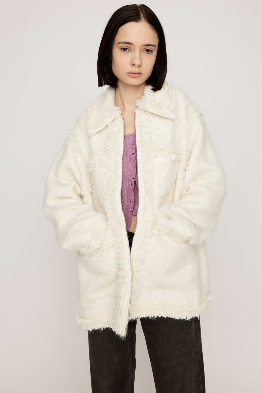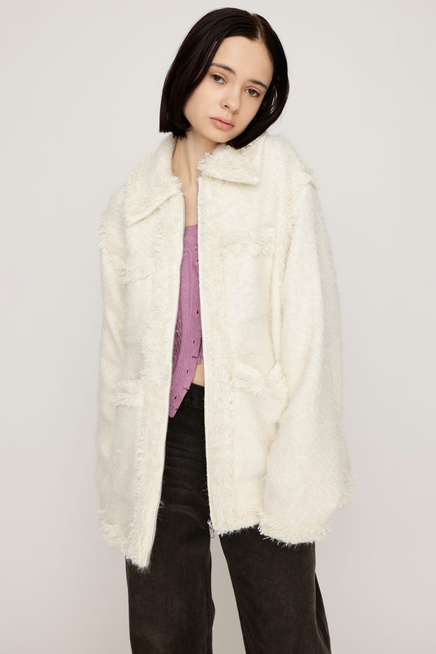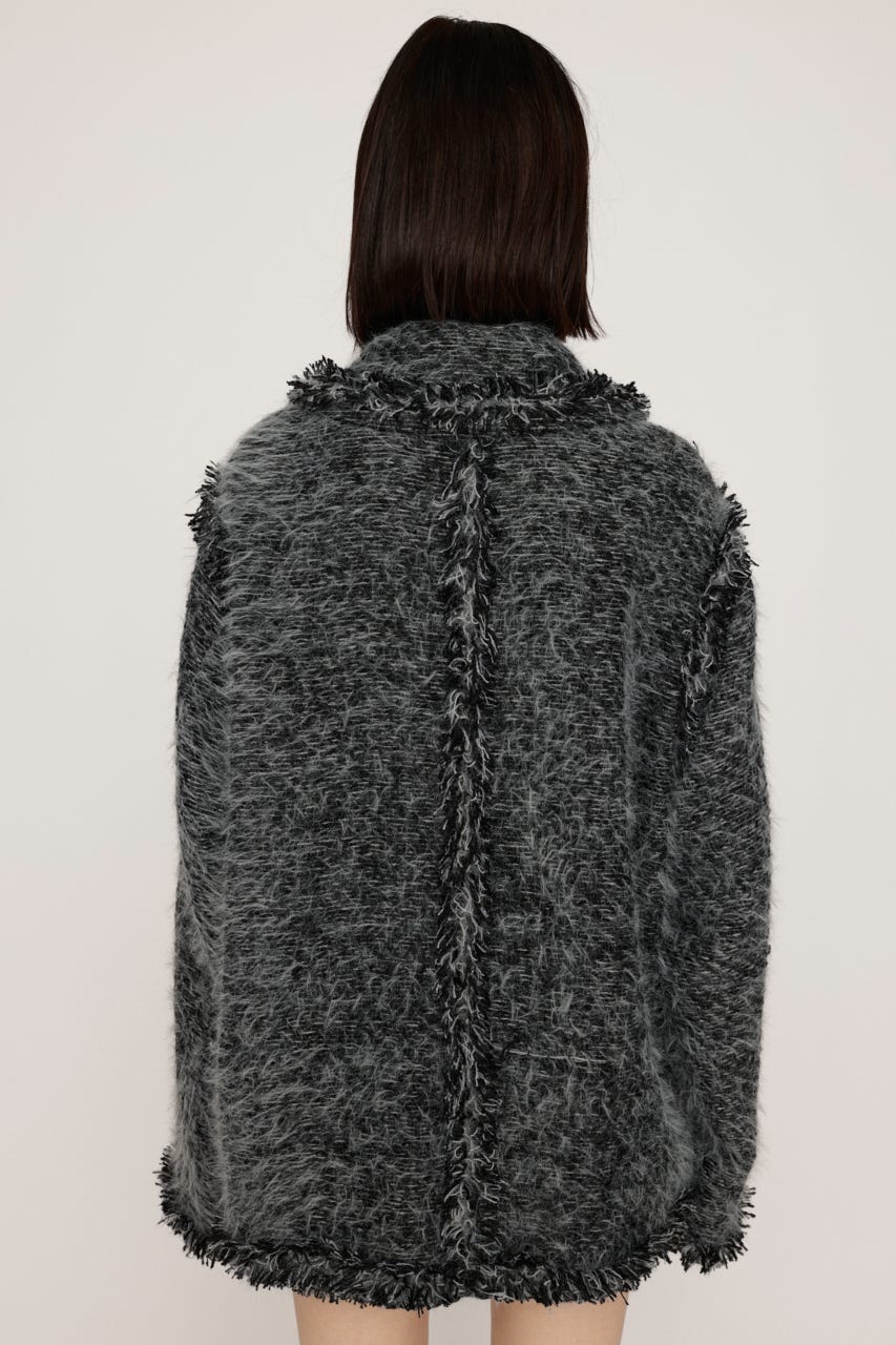 ■POINT:複数の太さの糸をミックスさせファーのようなふわふわとした風合いが魅力のツイード風ジャケット。