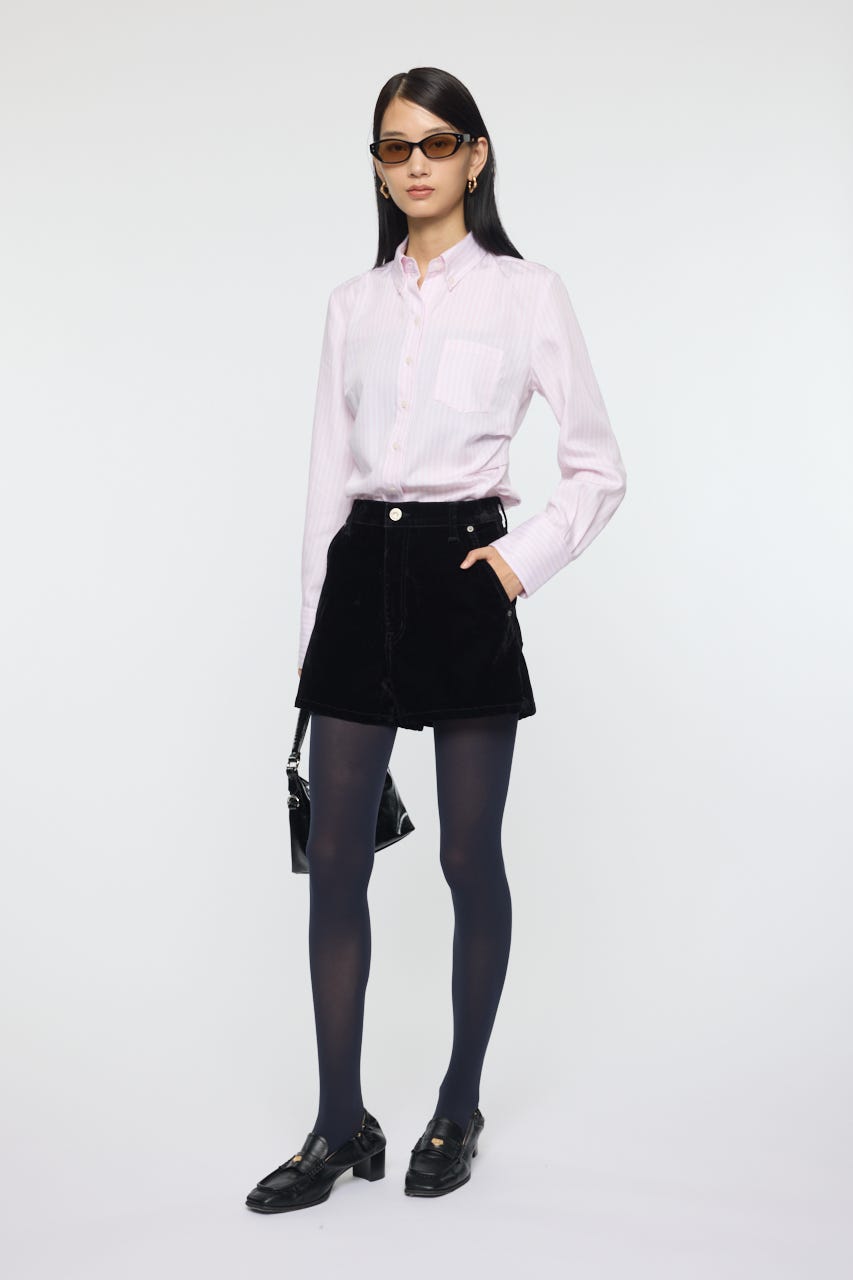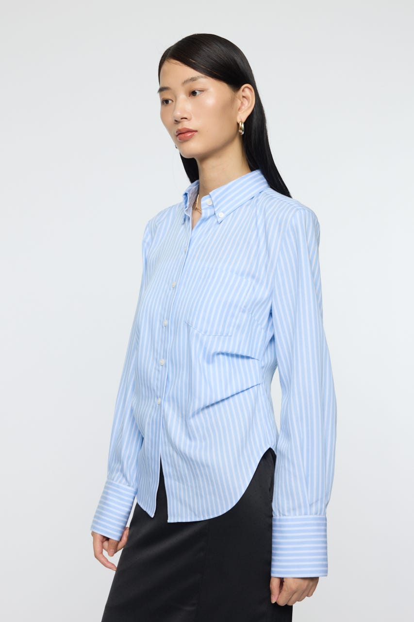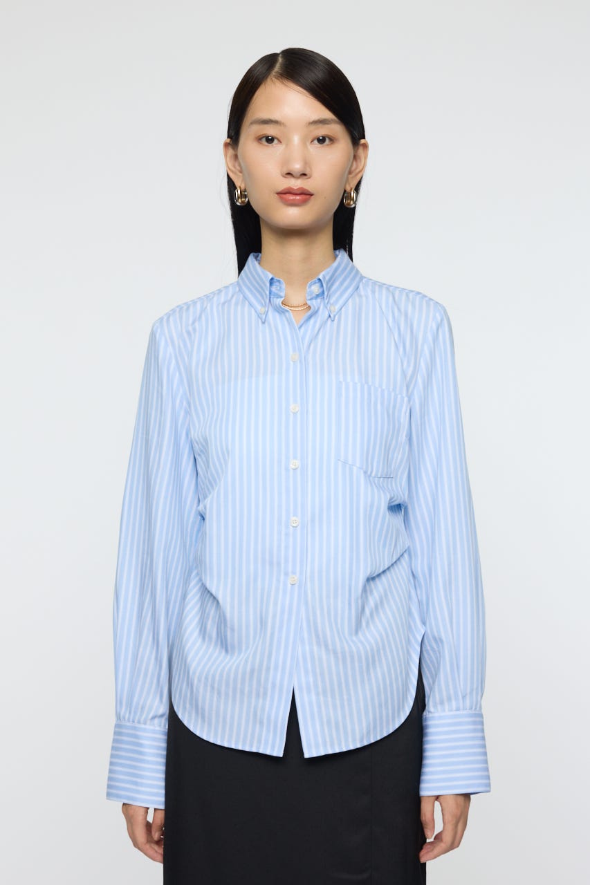 フィット感のあるシルエットが魅力のストライプシャツ。