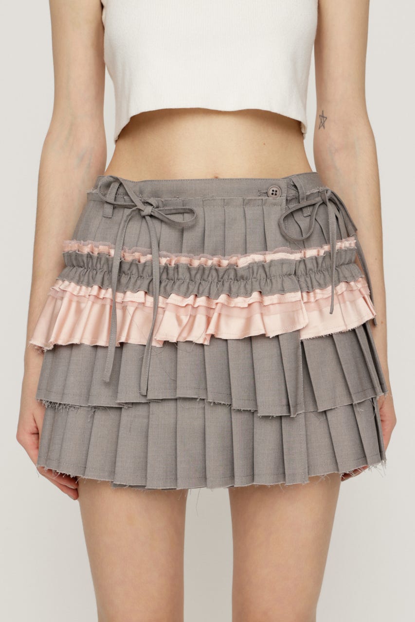 スーツ地にチュールやサテンを重ねた立体的なシルエットが、SLYらしいモード感と抜け感を演出します。