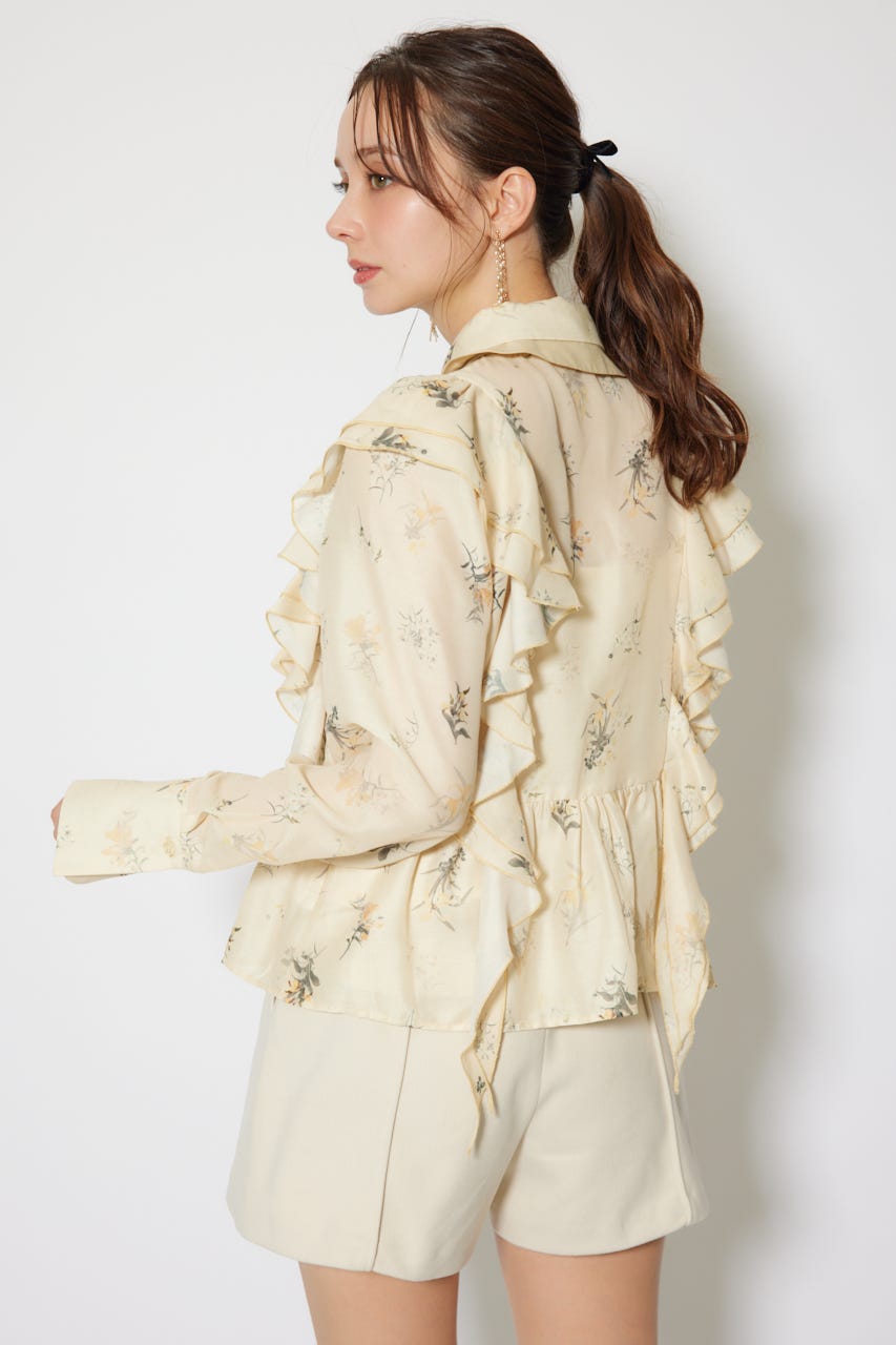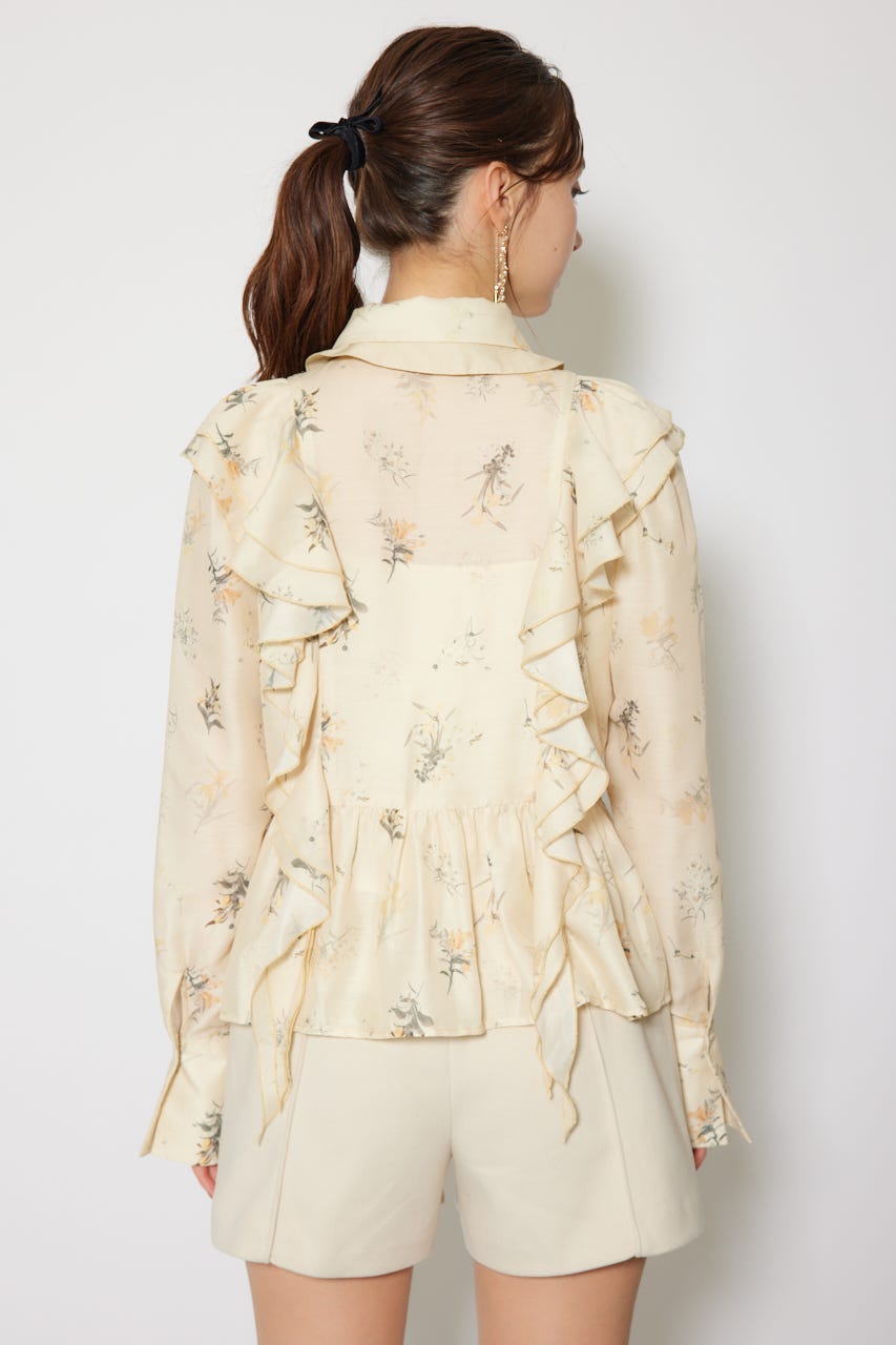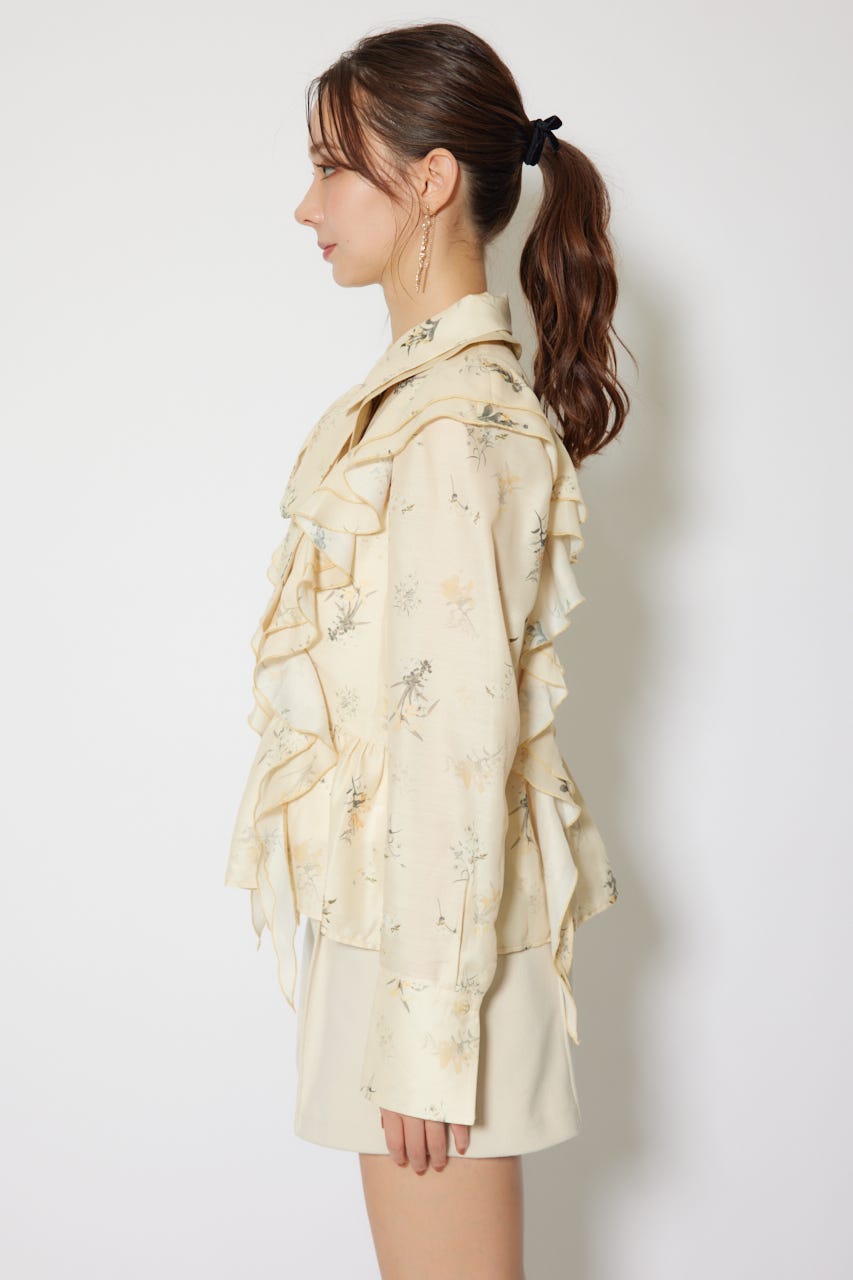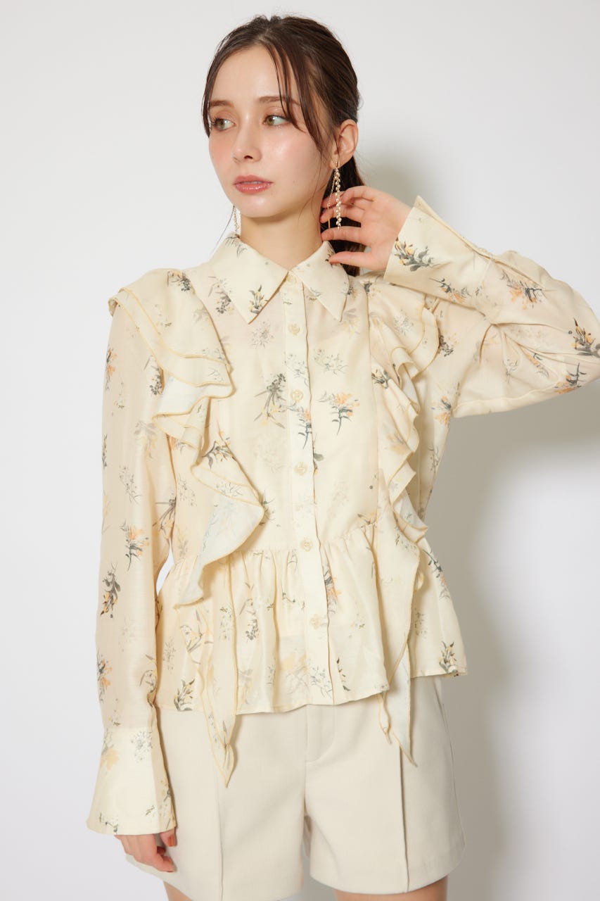 ふんだんにあしらったフリルとクラシカルなボウタイデザインが華やかな印象を与えるブラウス。