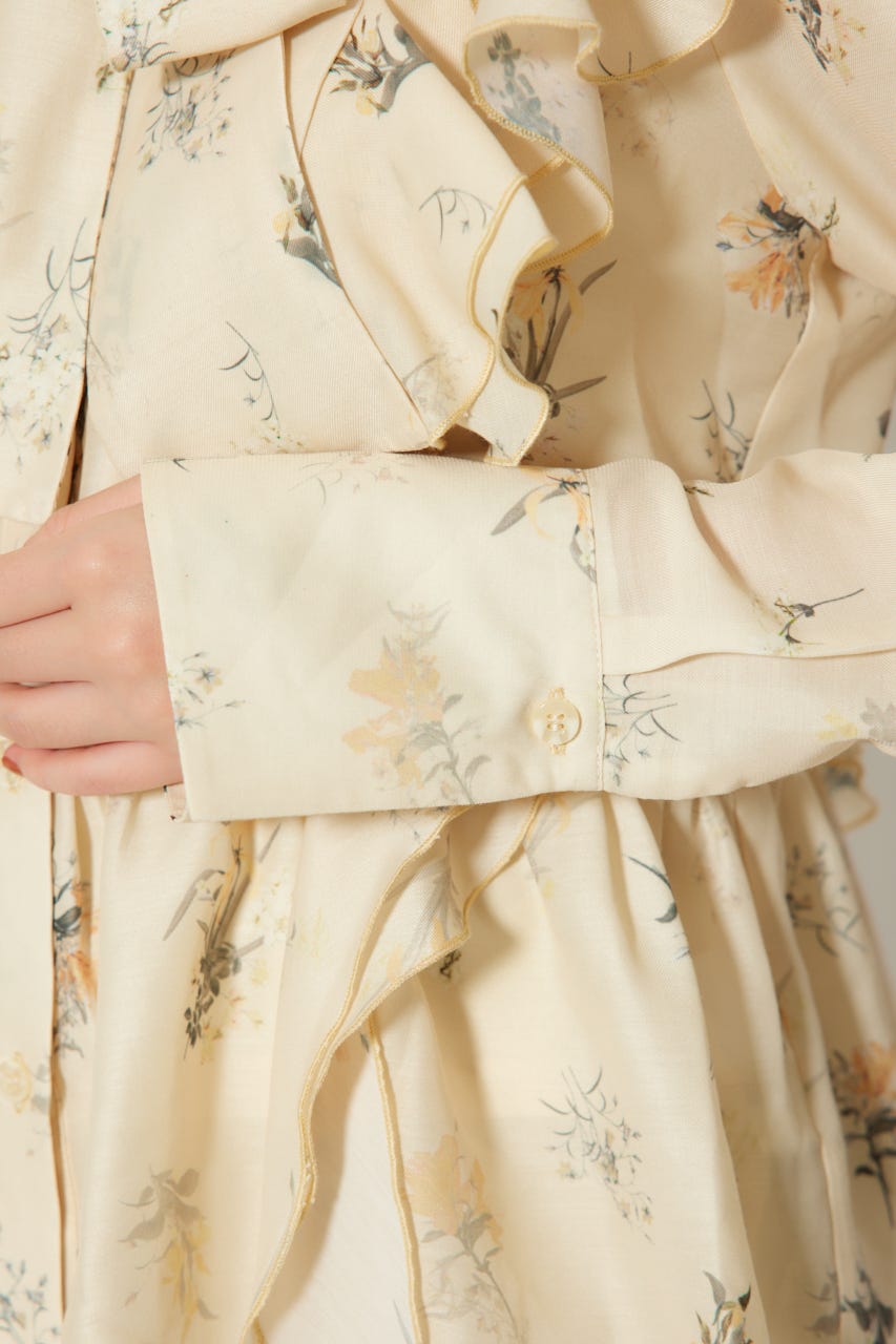 ポイントであるフラワー柄は、今季らしくリアルなタッチで余白を残しながら散りばめ、儚く華やかに仕上げています。
