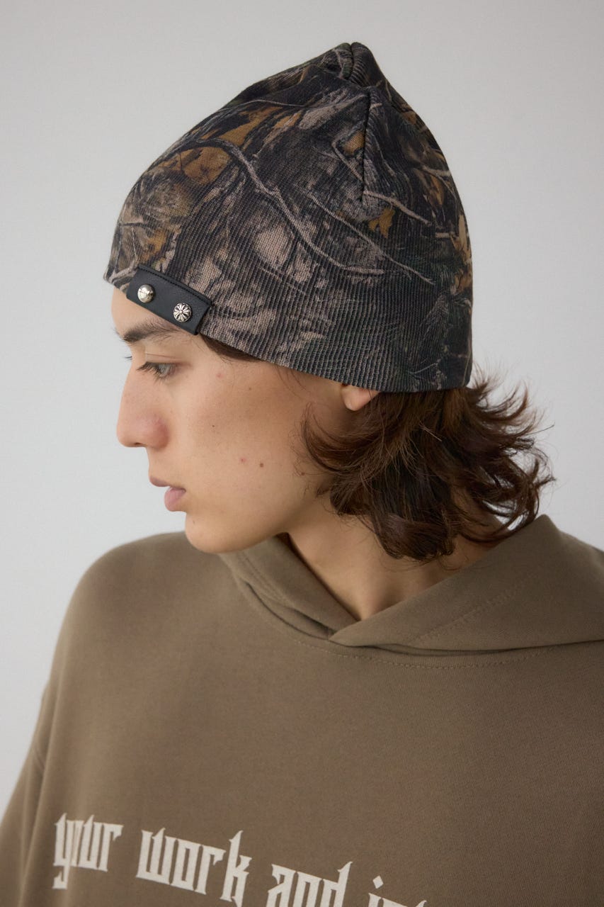 自然なリアルツリープリントをほどこしたニットキャップ。