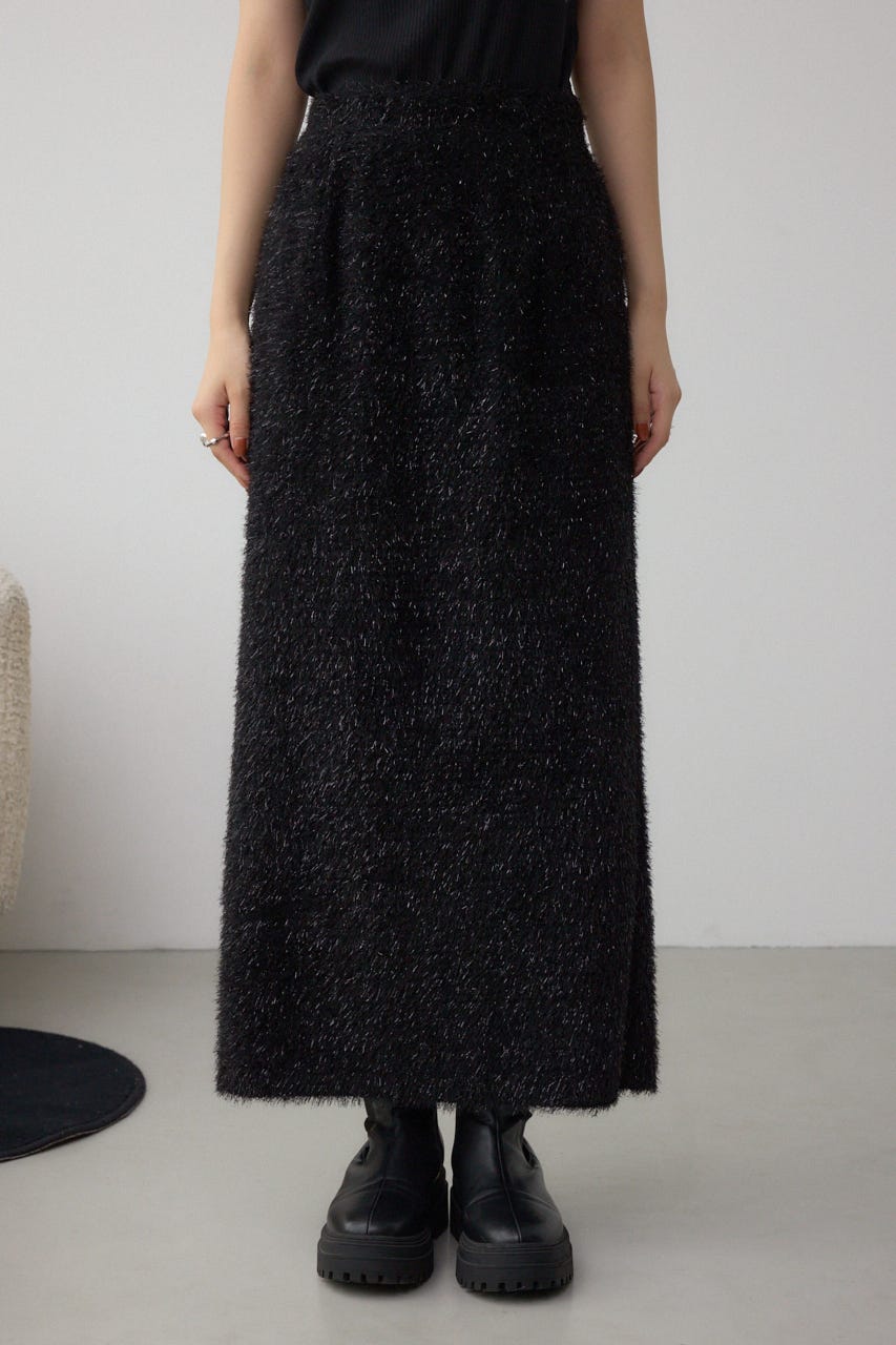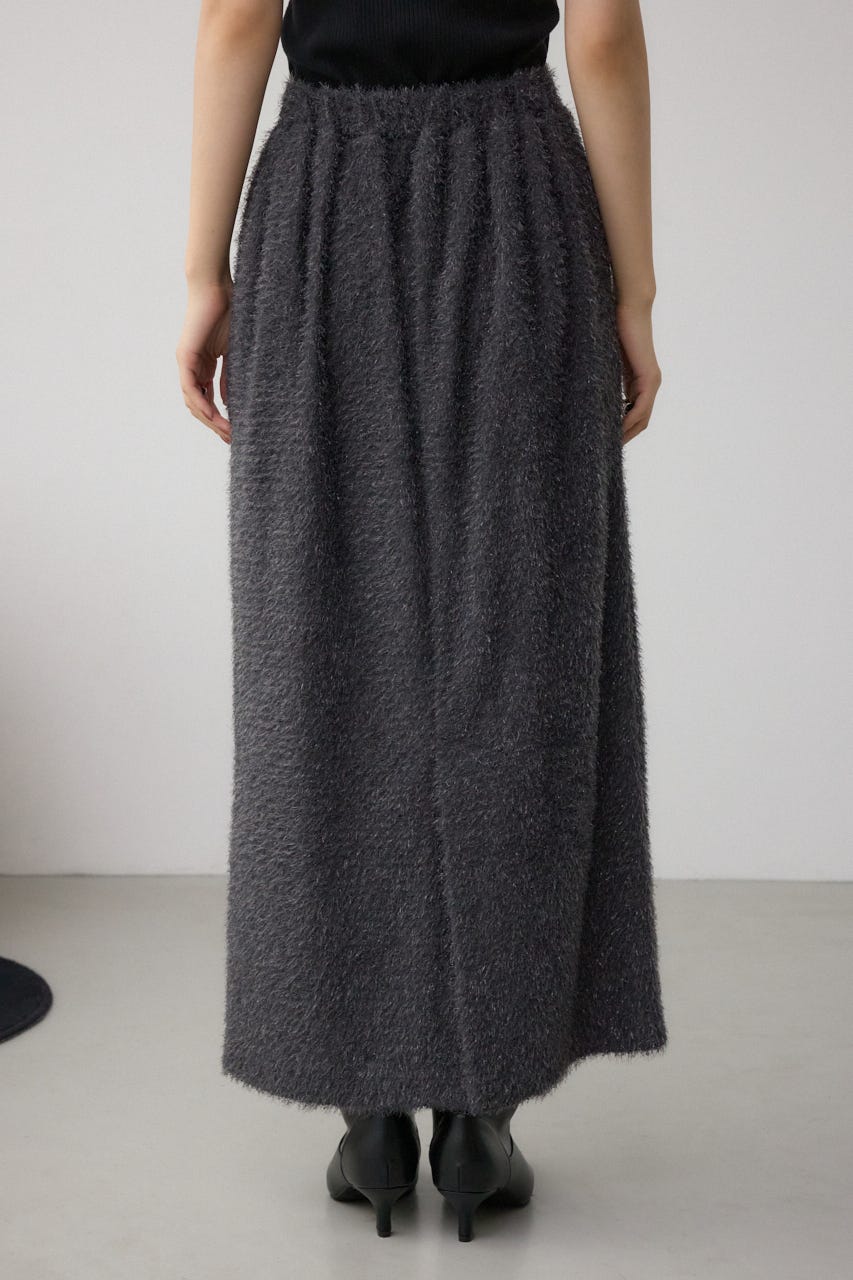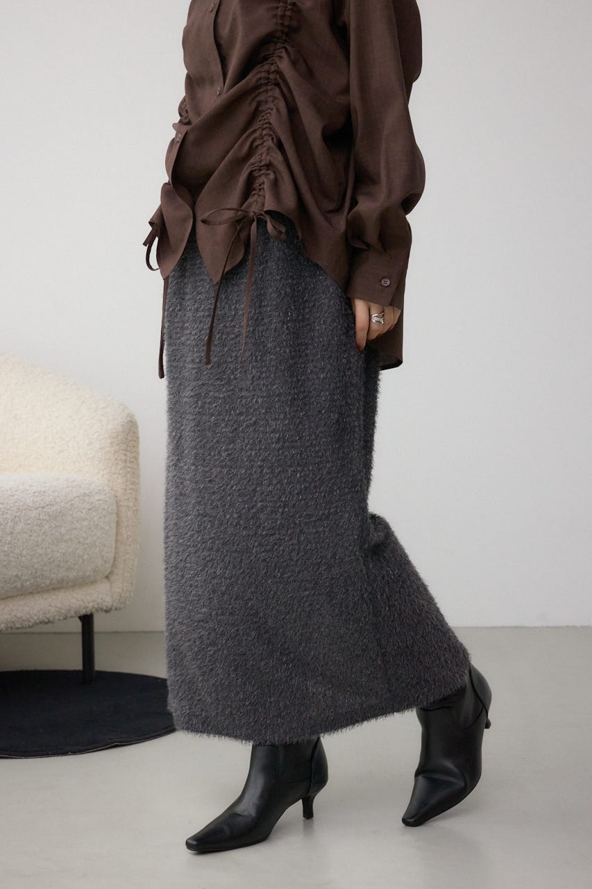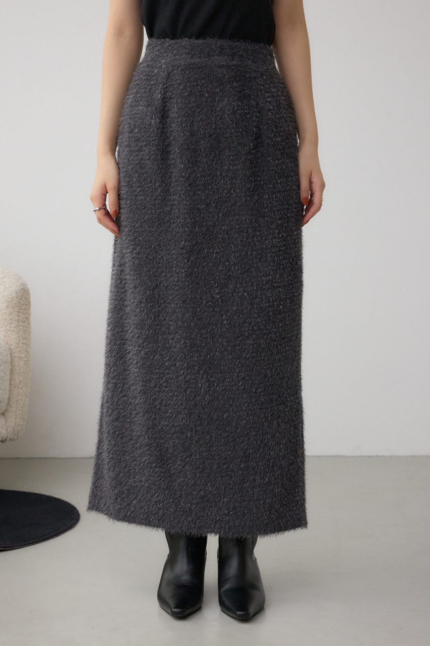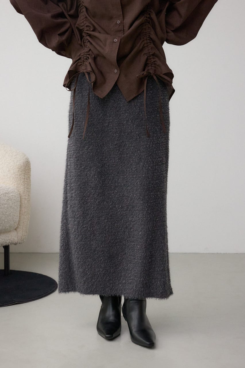 トレンド感のあるシャギー素材で、大人可愛い雰囲気を演出するロングスカート。