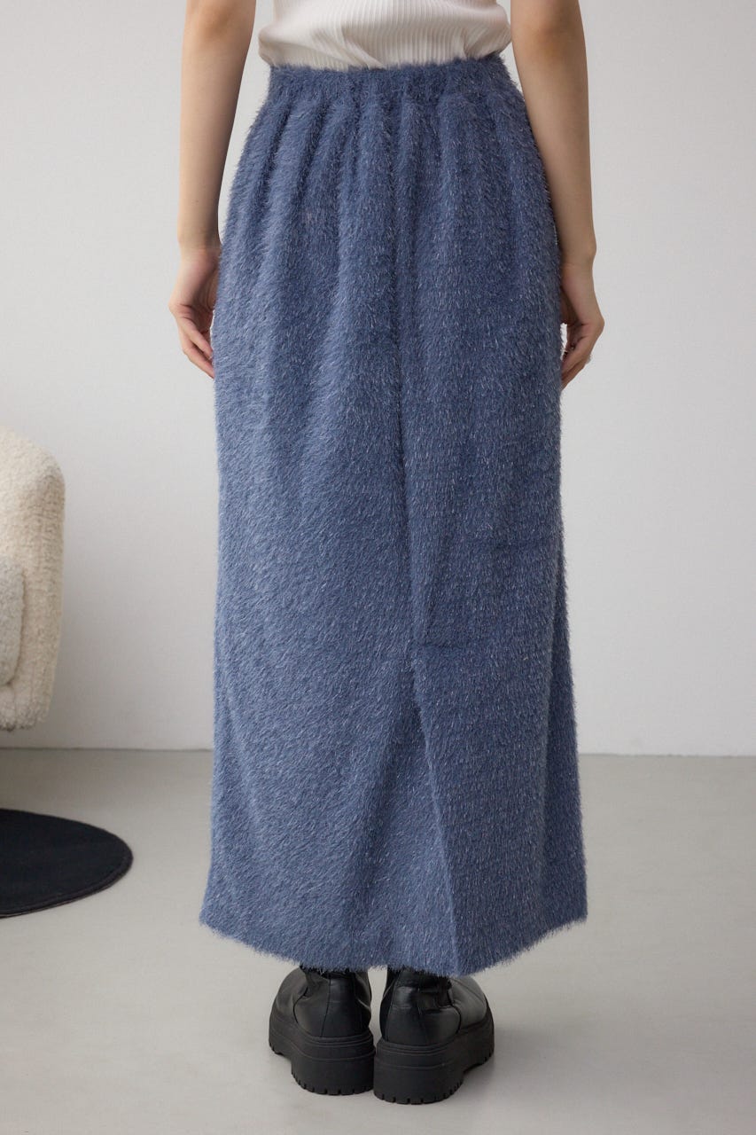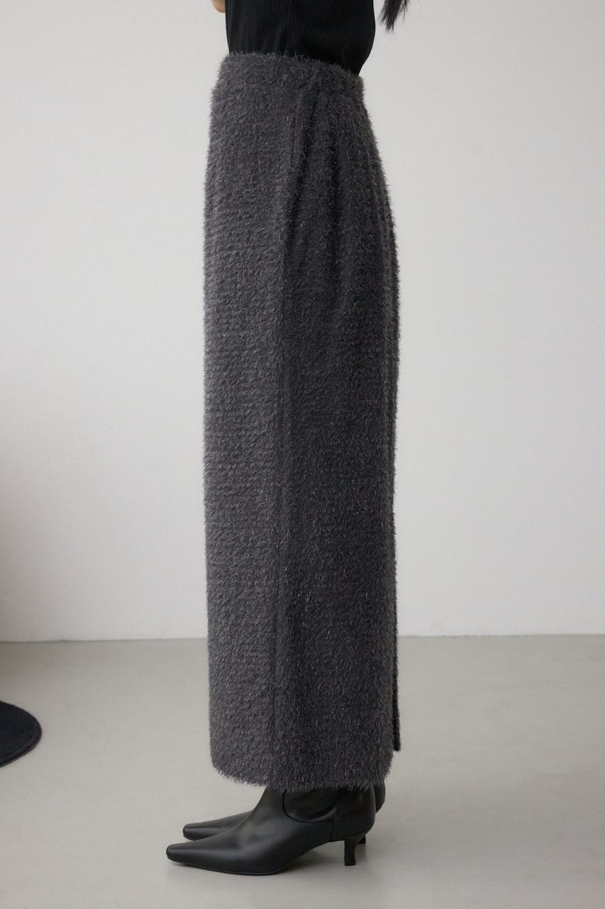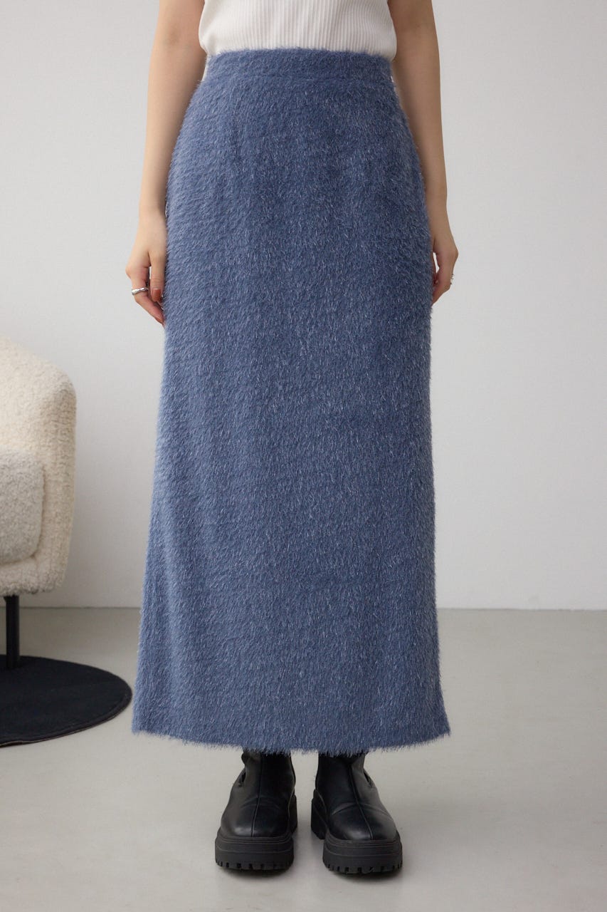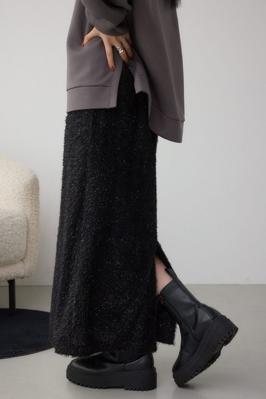 トレンド感のあるシャギー素材で、大人可愛い雰囲気を演出するロングスカート。