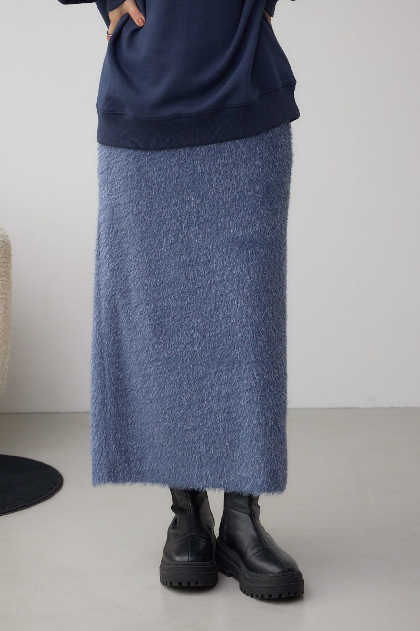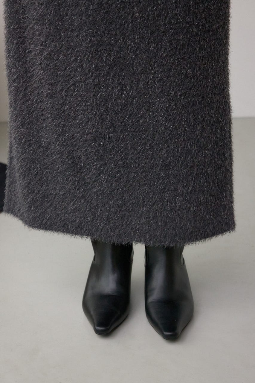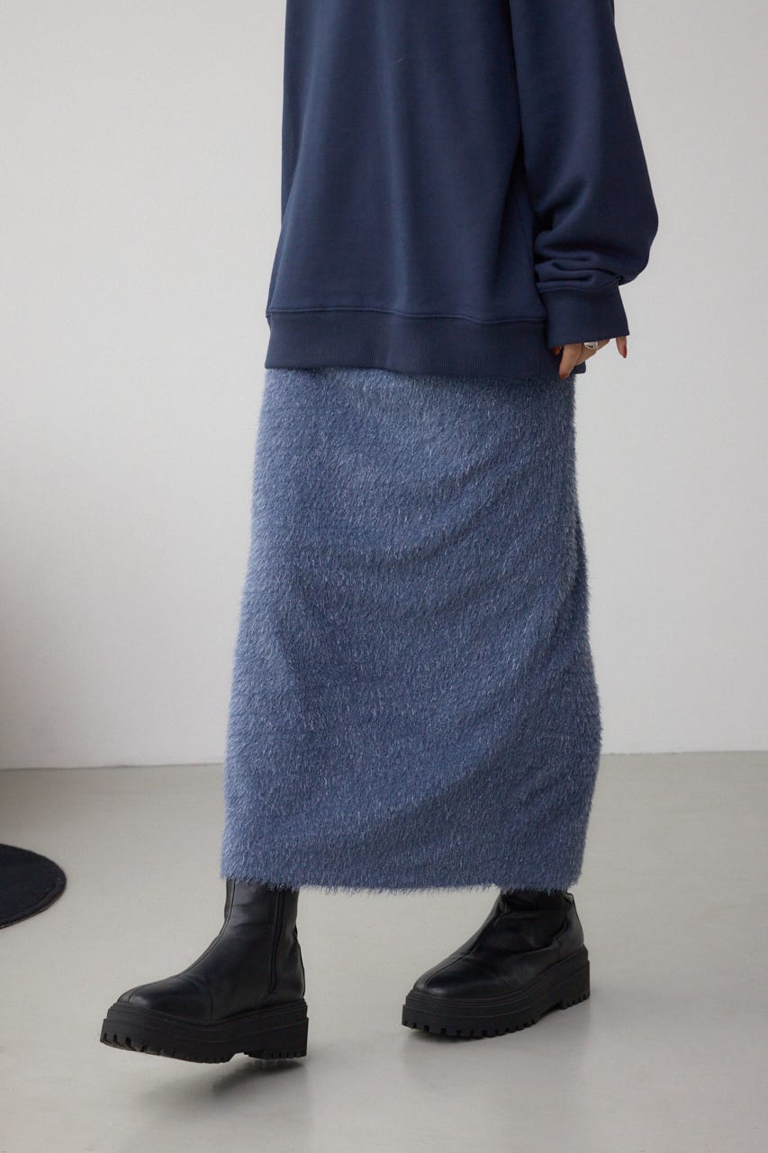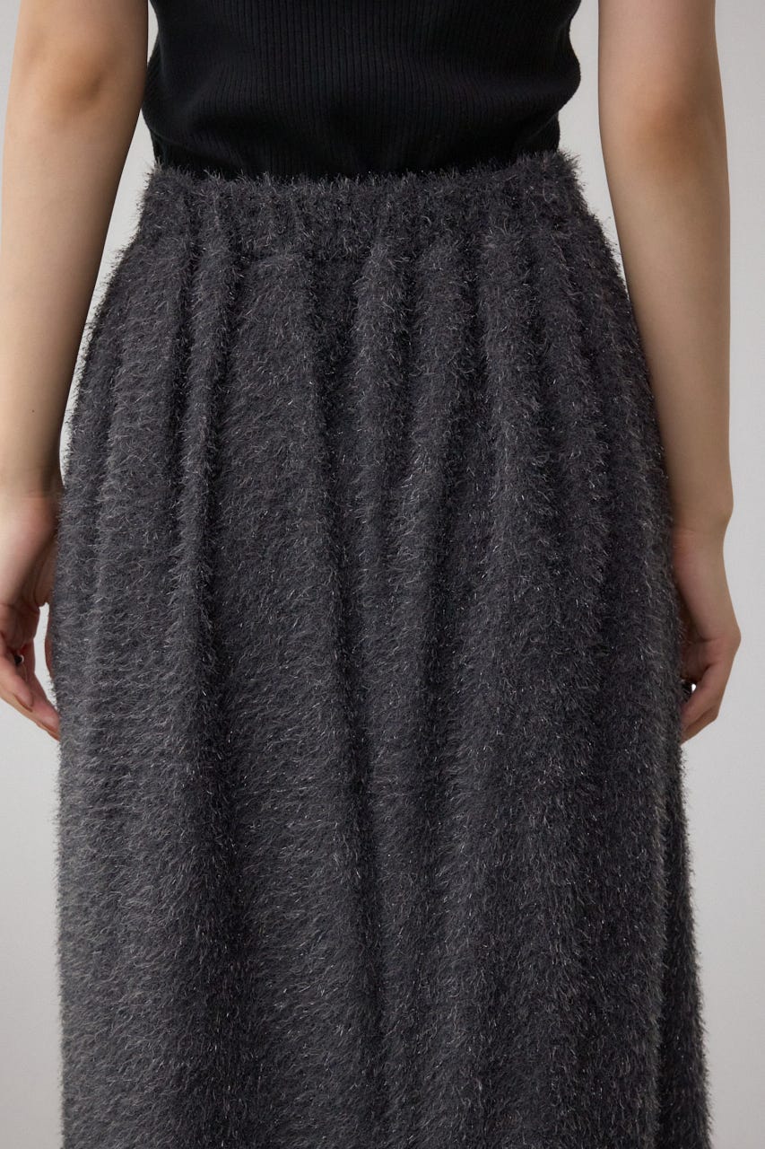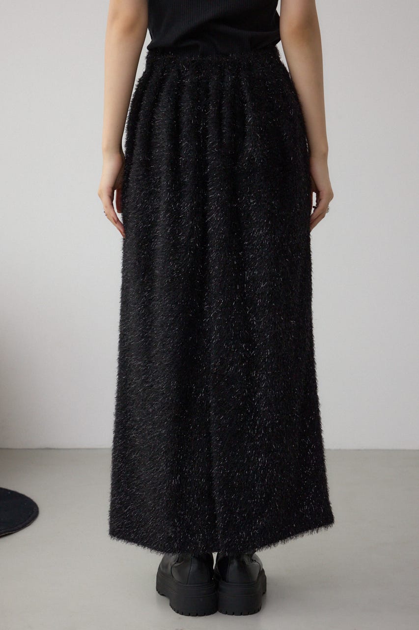 トレンド感のあるシャギー素材で、大人可愛い雰囲気を演出するロングスカート。
