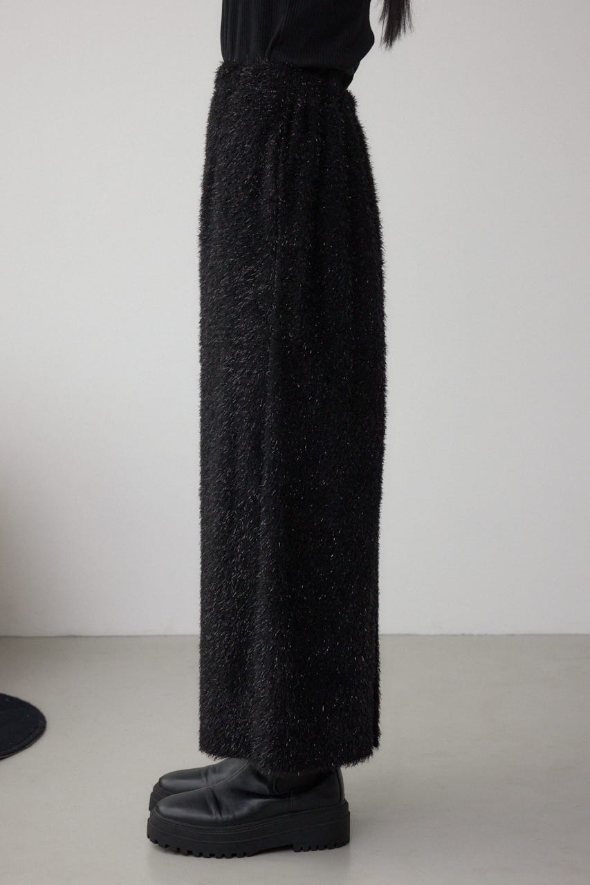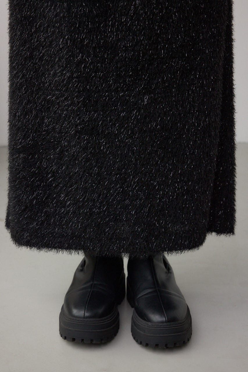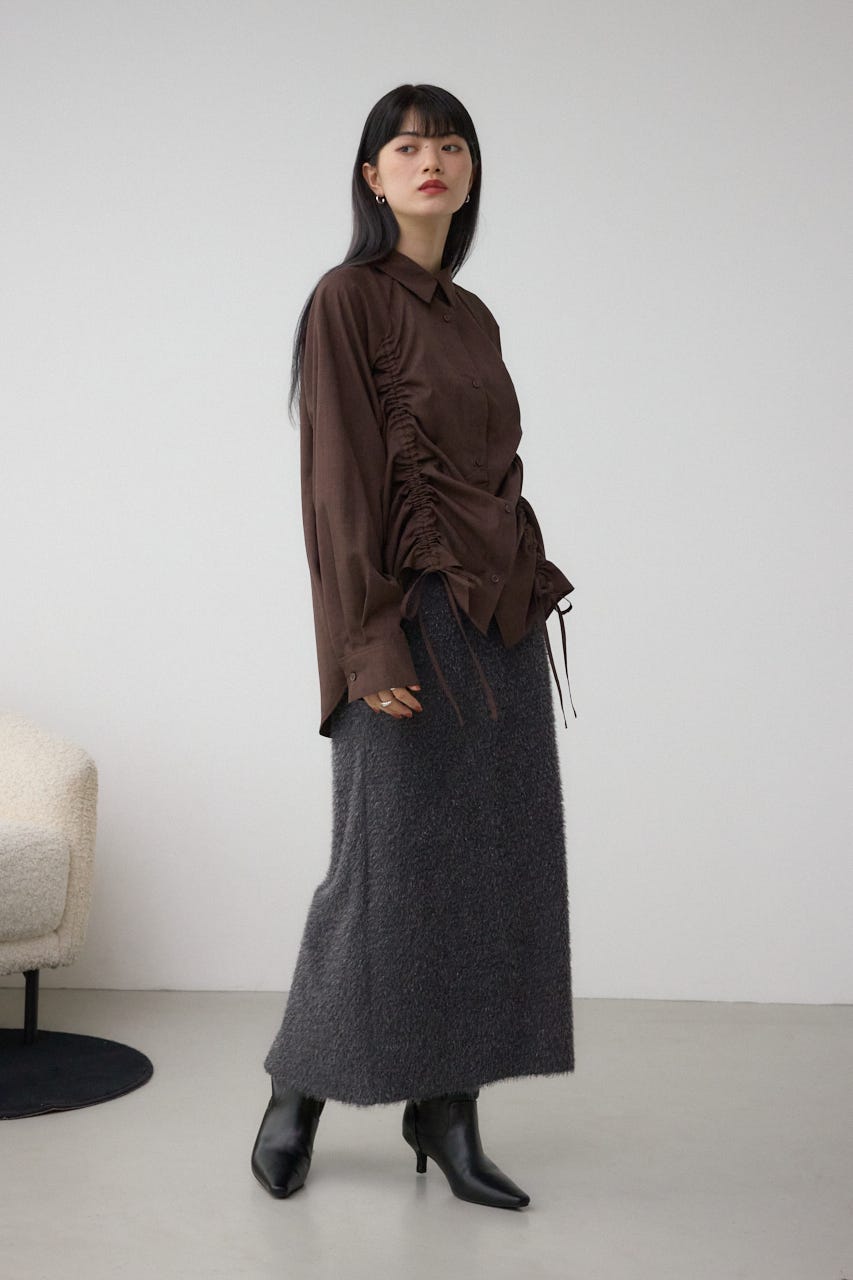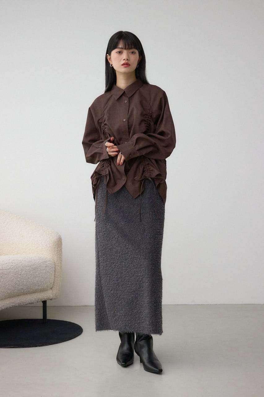 トレンド感のあるシャギー素材で、大人可愛い雰囲気を演出するロングスカート。