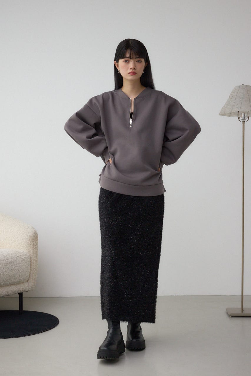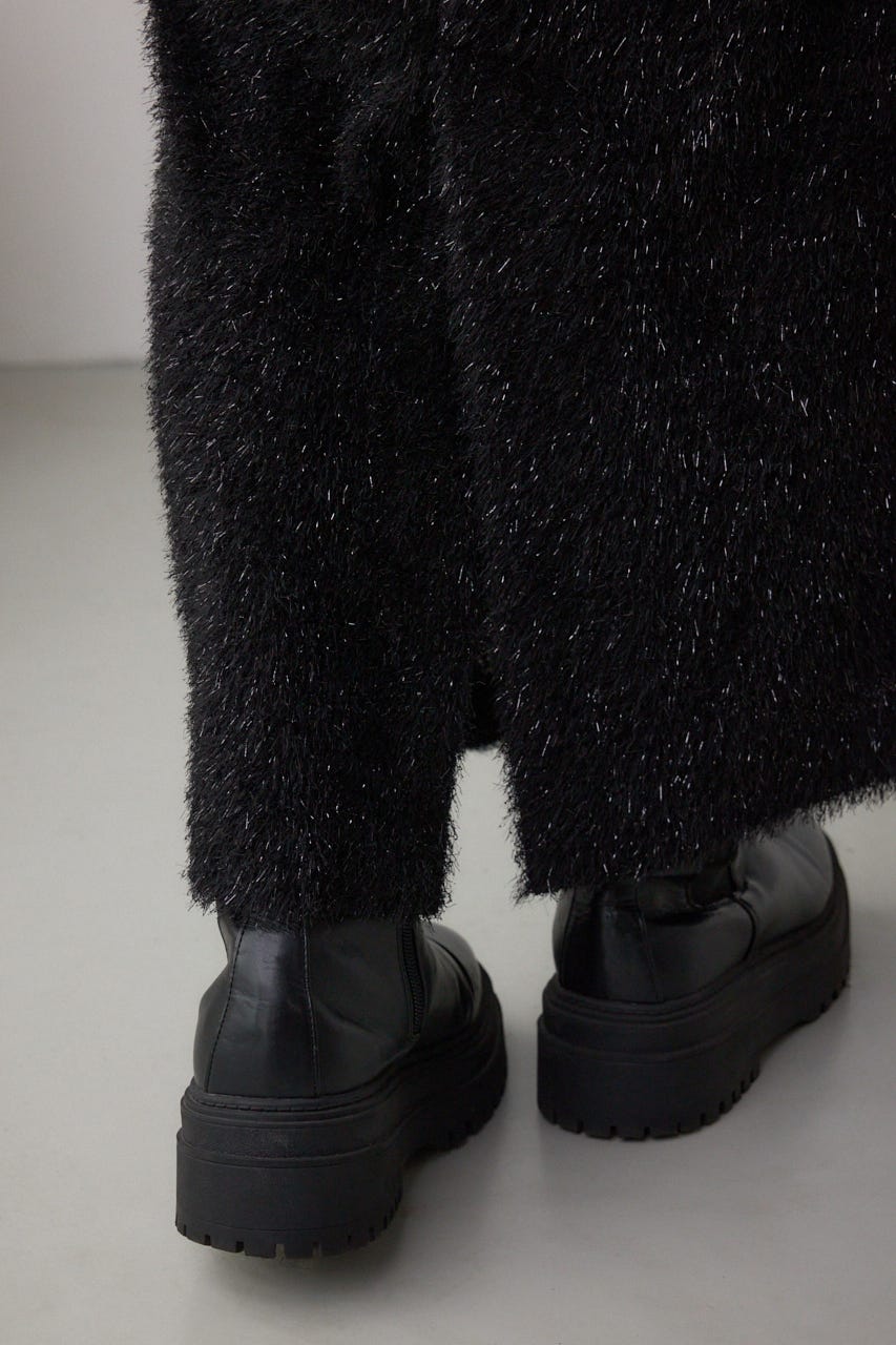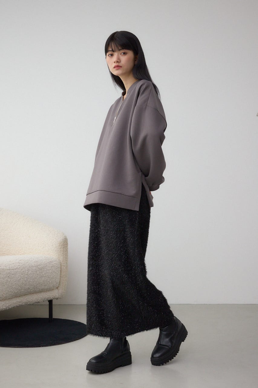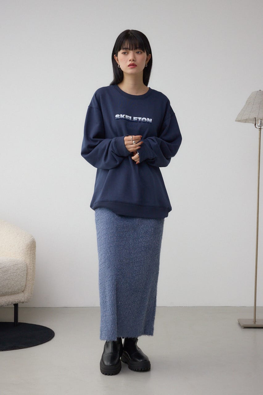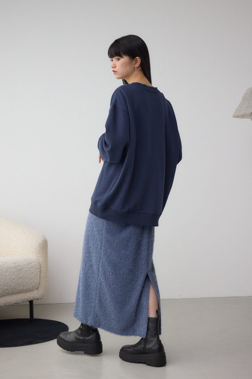 トレンド感のあるシャギー素材で、大人可愛い雰囲気を演出するロングスカート。