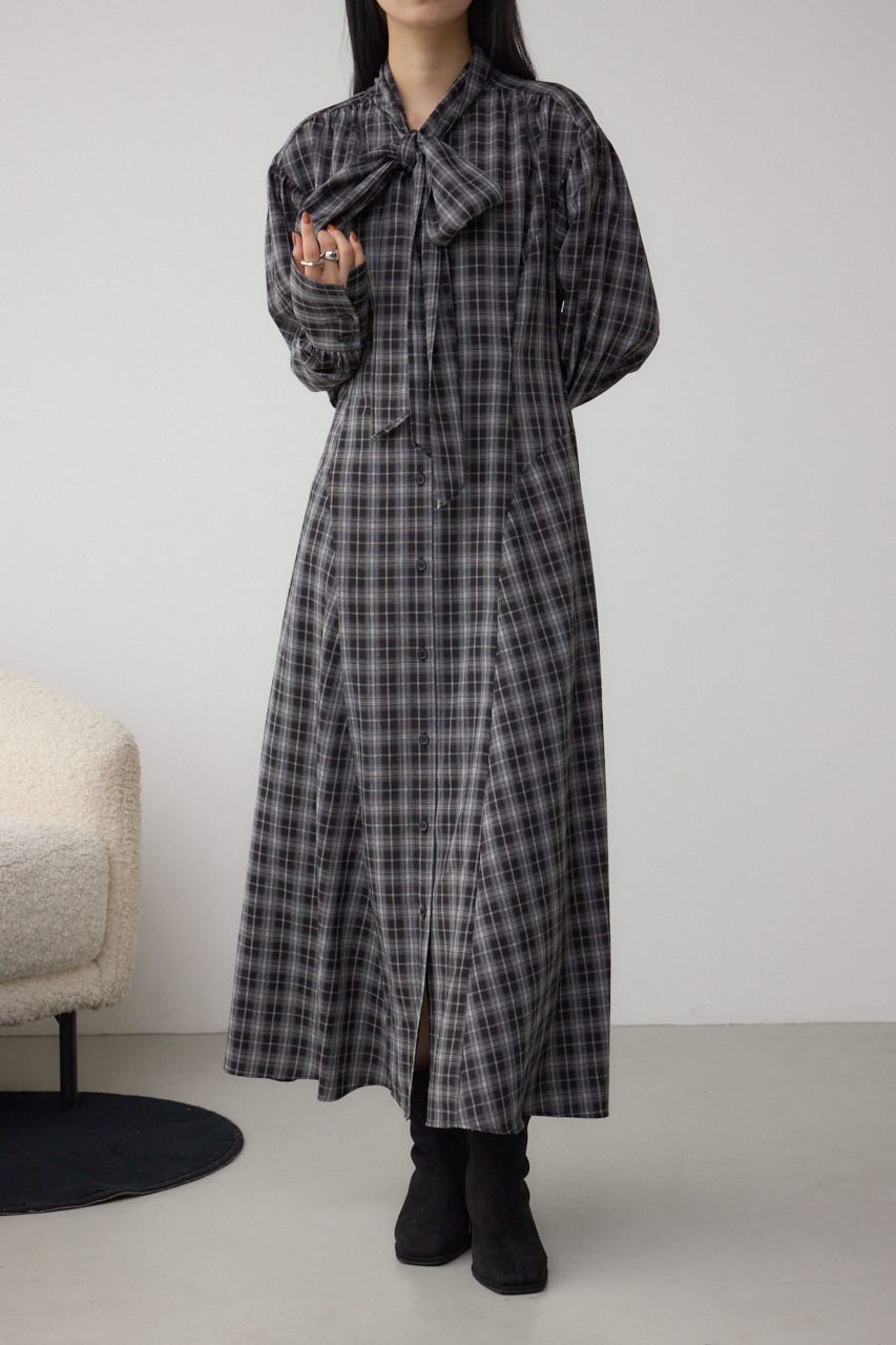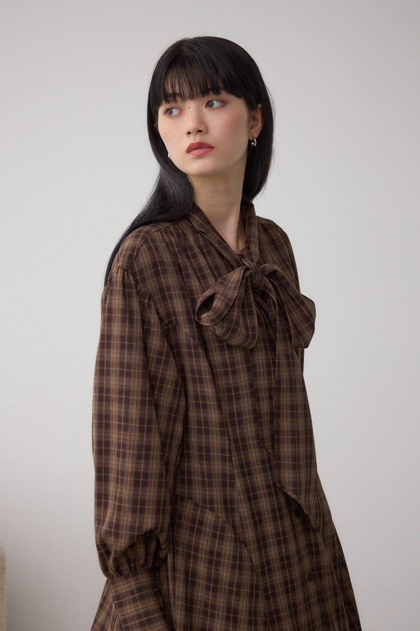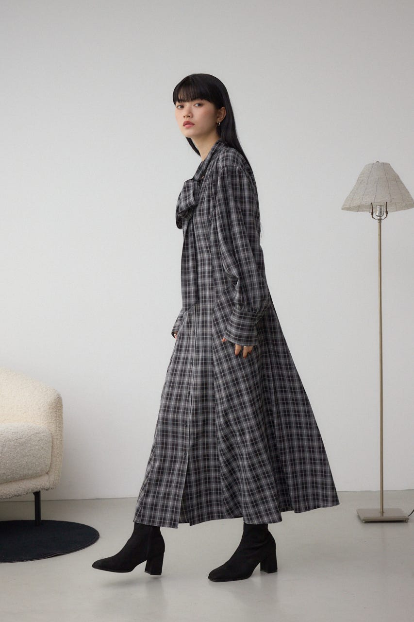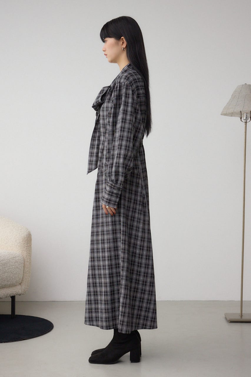 秋冬に注目のボウタイデザインのクラシカルムード漂うチェック柄ワンピース。