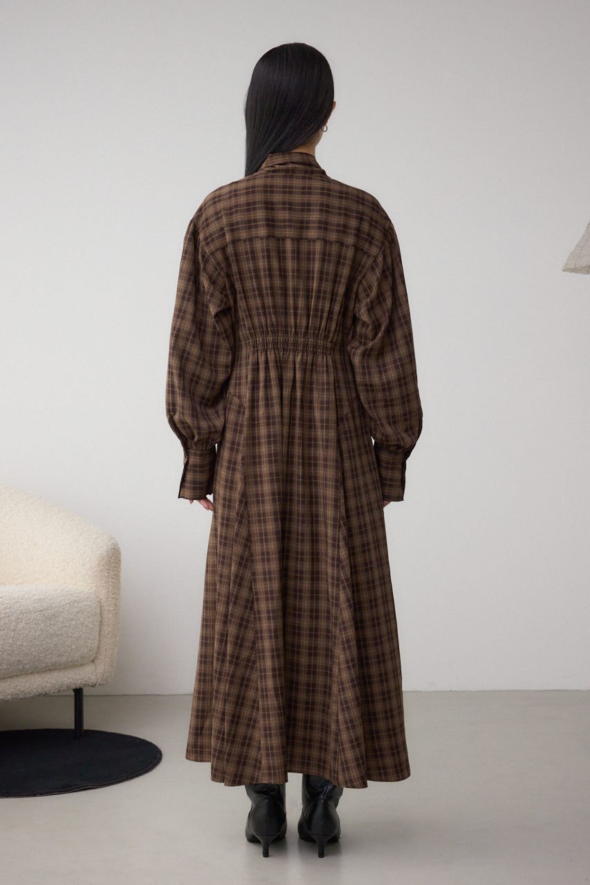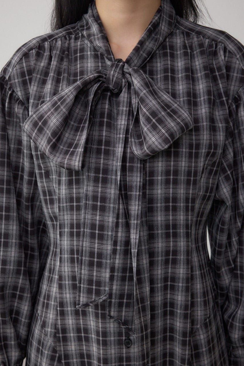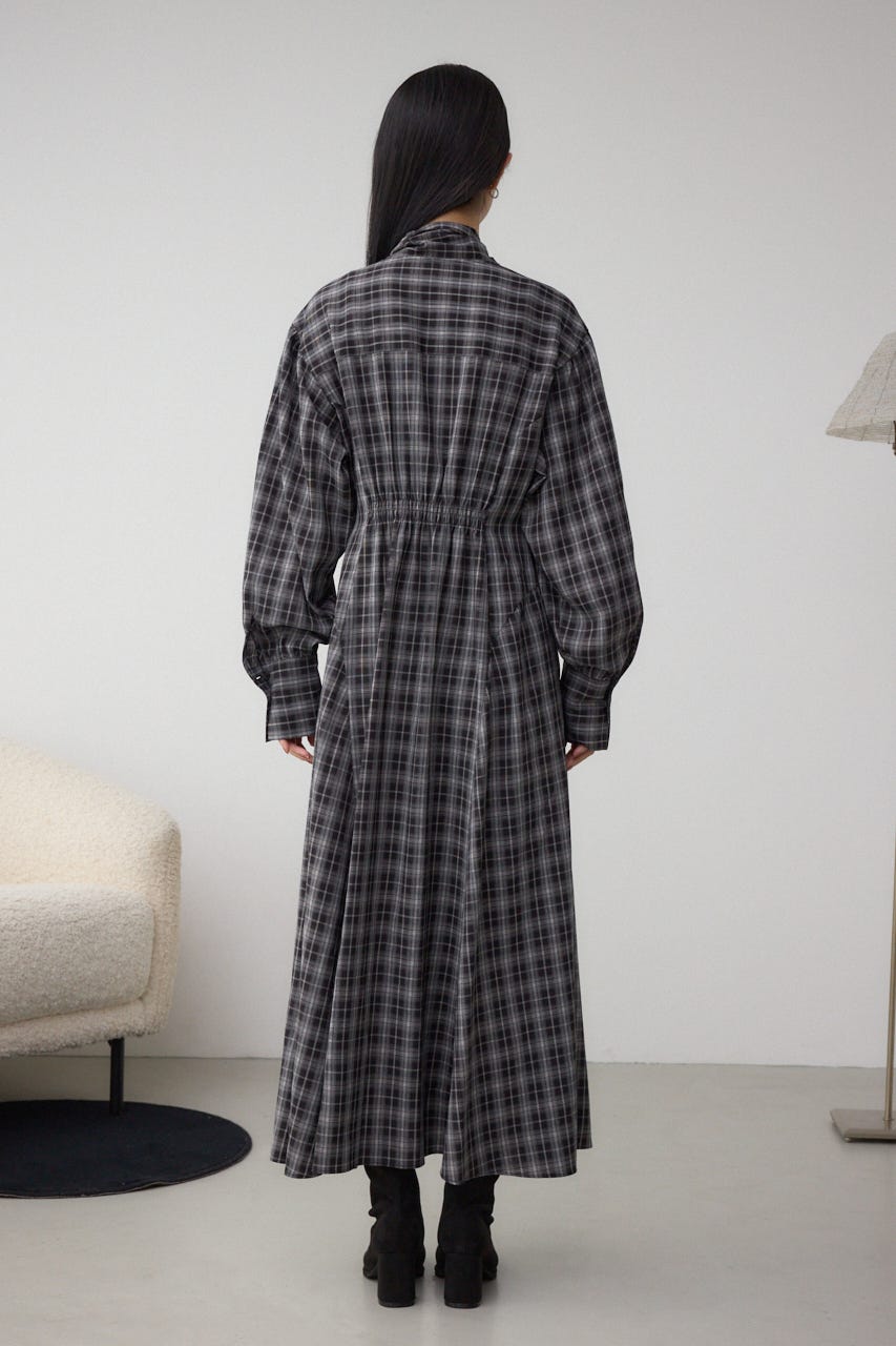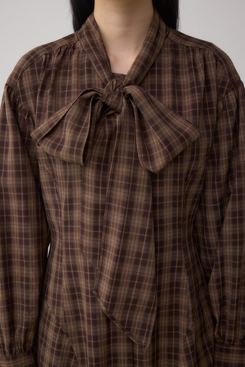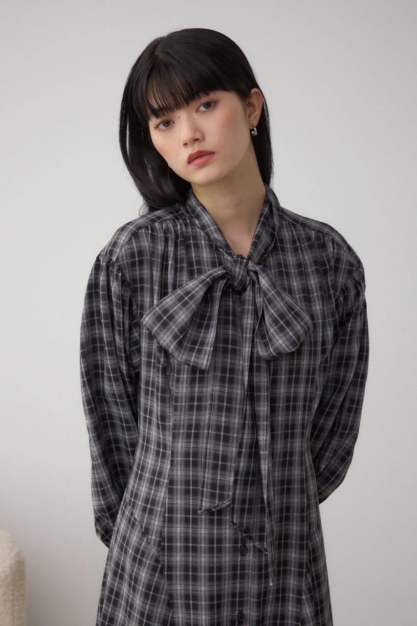 秋冬に注目のボウタイデザインのクラシカルムード漂うチェック柄ワンピース。