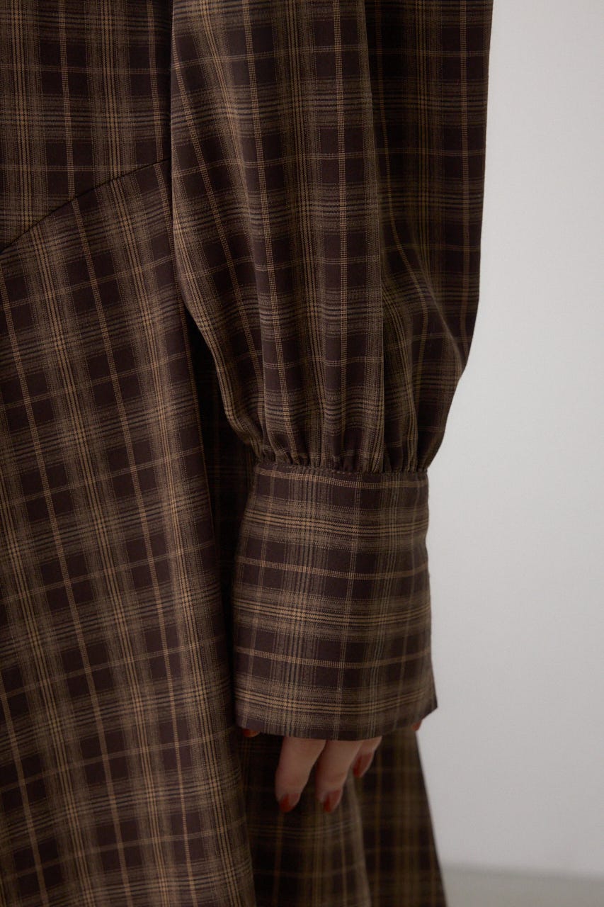 落ち着いたトーンのチェック柄で、大人らしい雰囲気を演出。