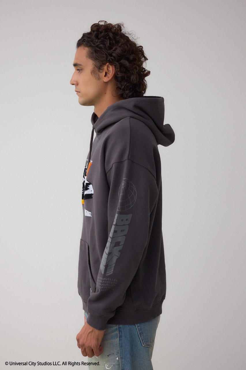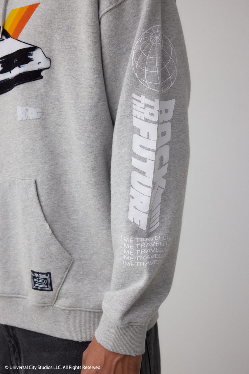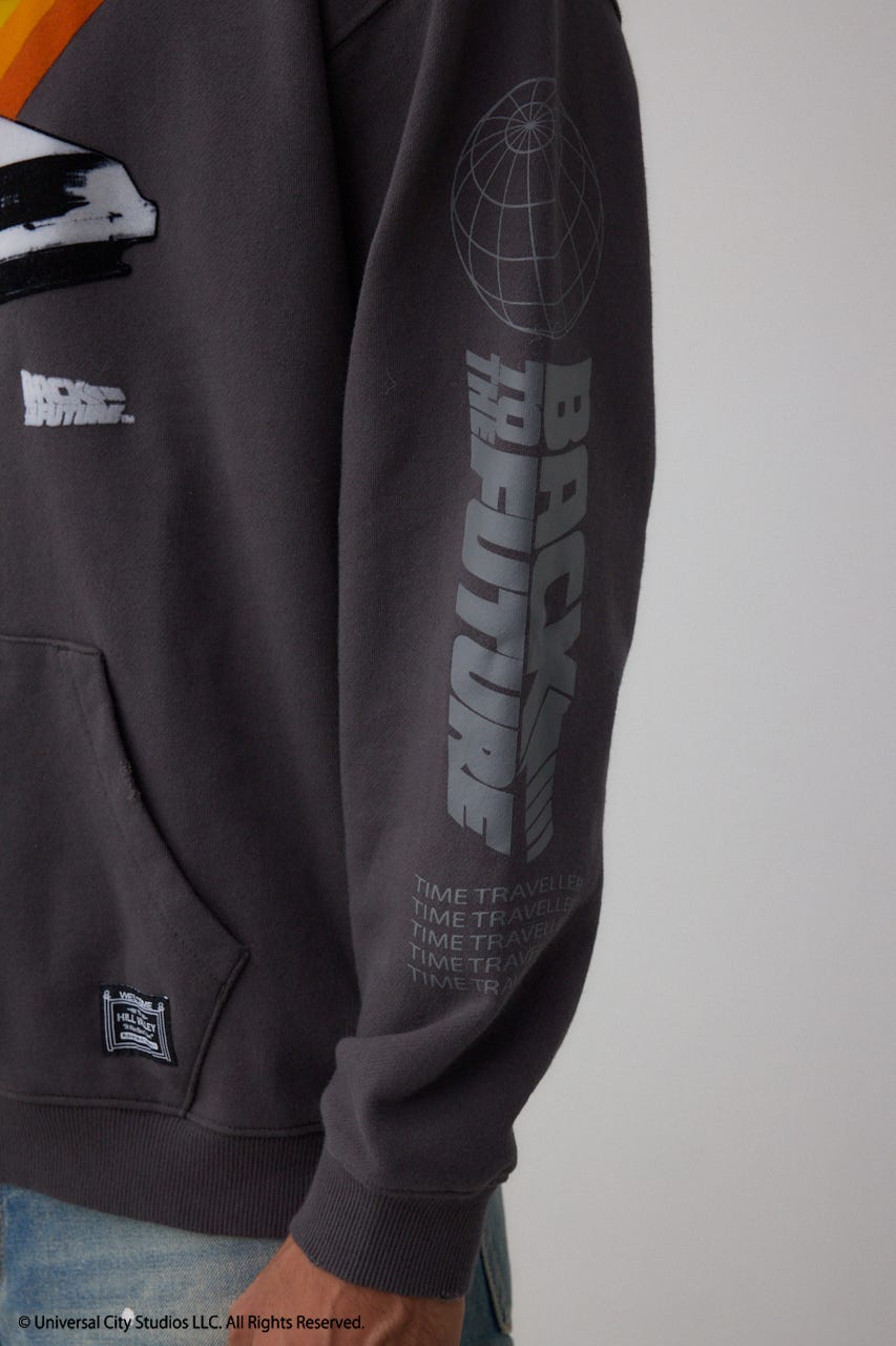 フロントに存在感があるフロッキープリント、左袖にはBACK TO THE FUTUREのプリントが入っています。