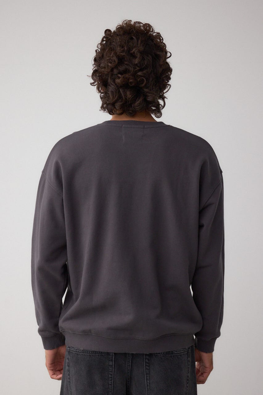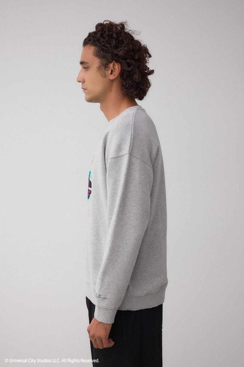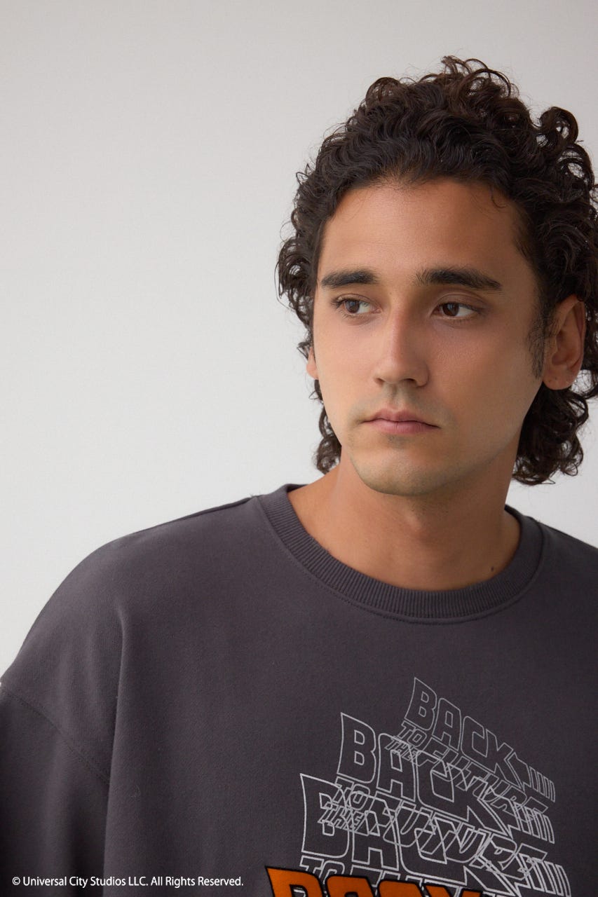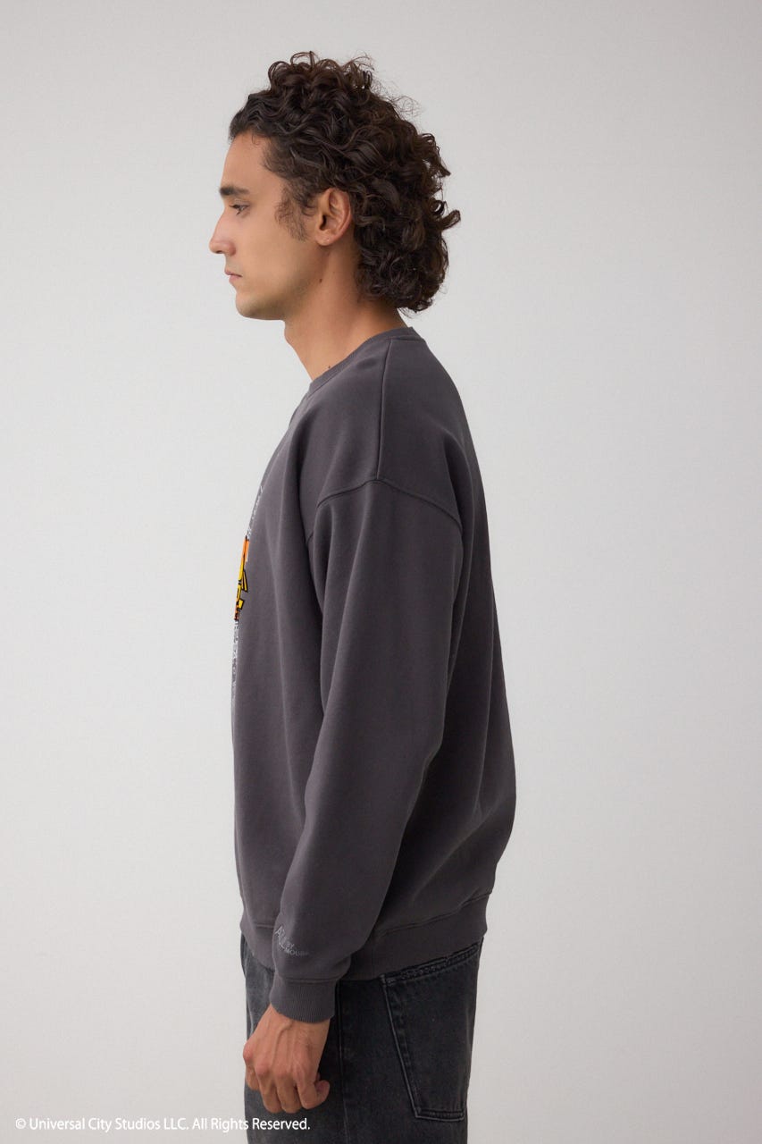 タイムトラベル気分を味わえる、フロッキープリント&ダメージ加工入りのスウェット、ファン心をくすぐる1着。