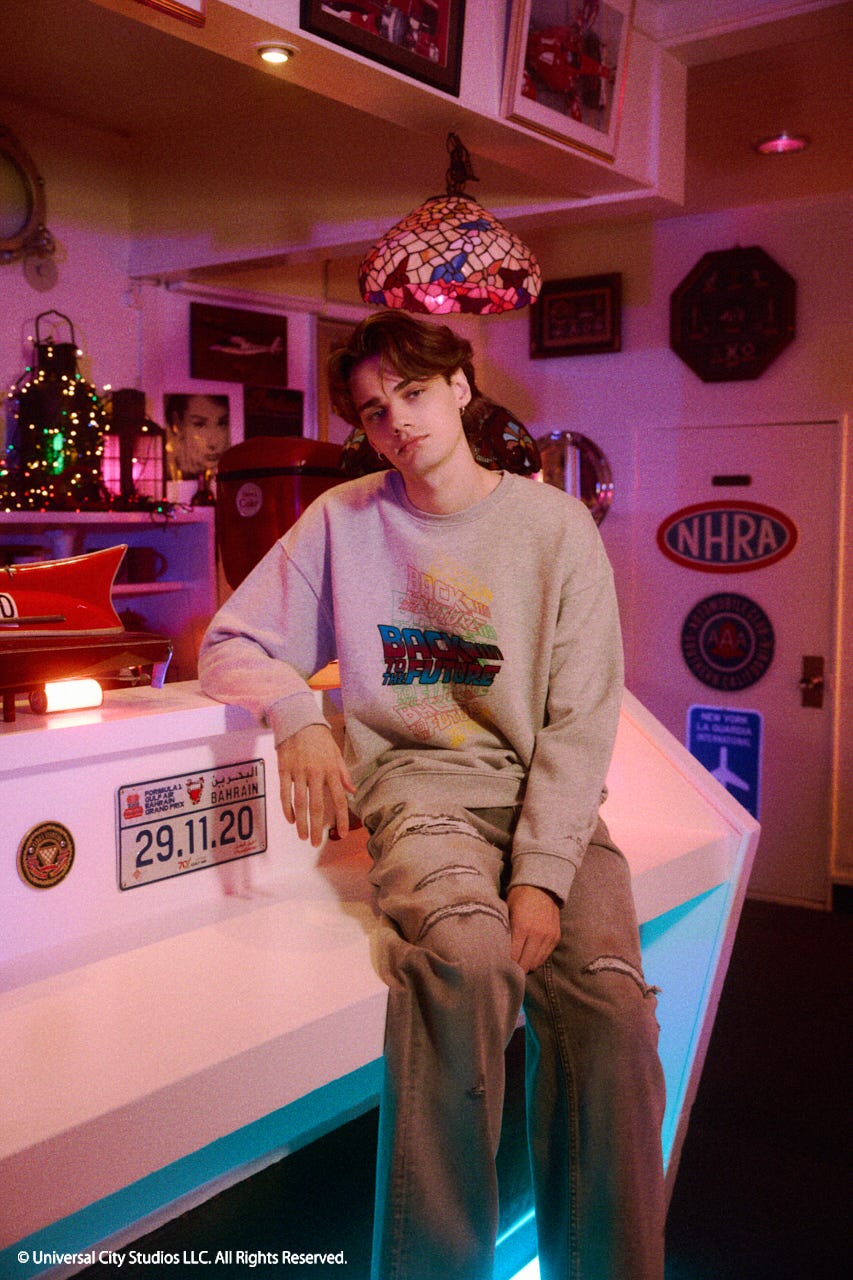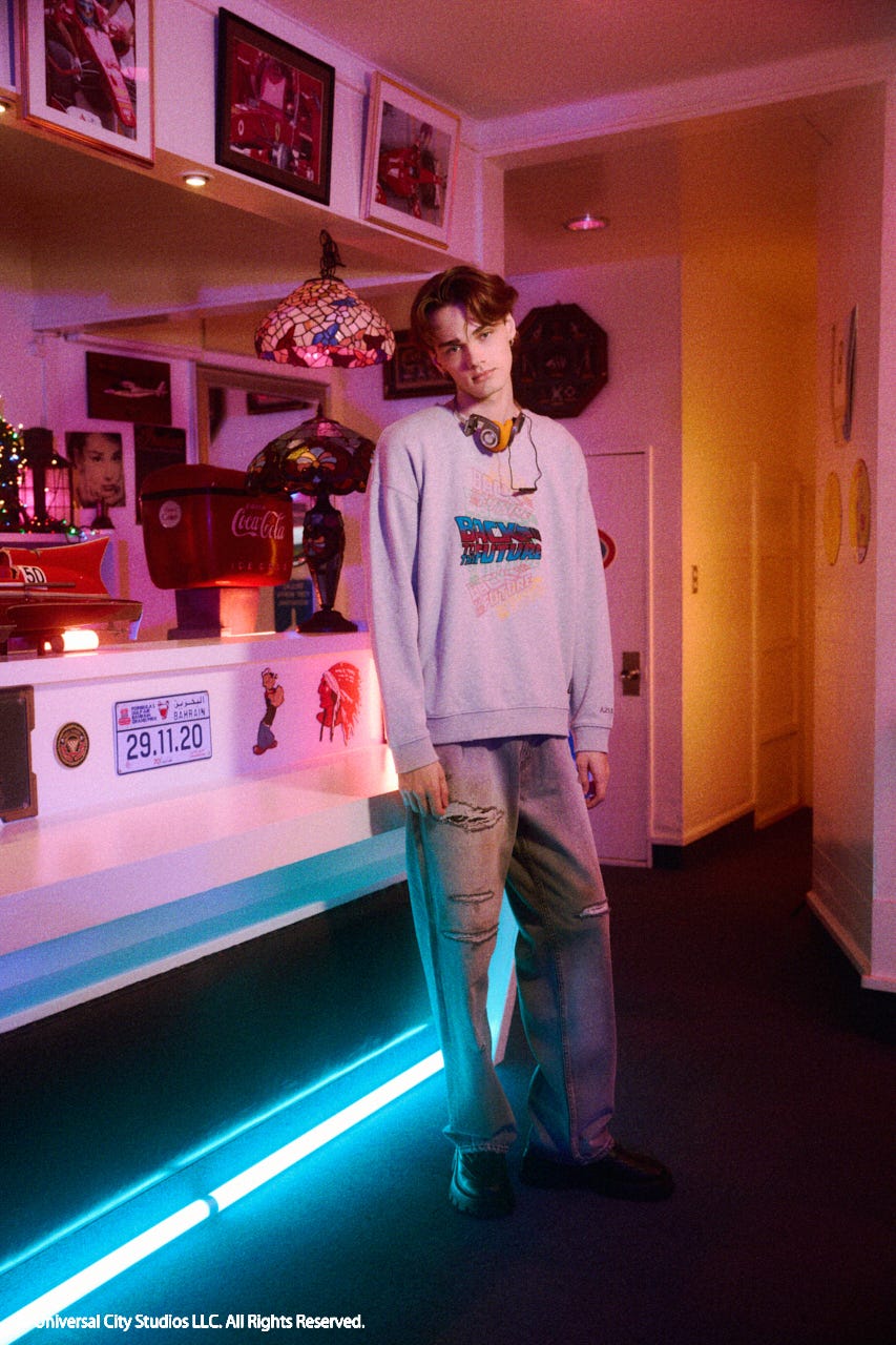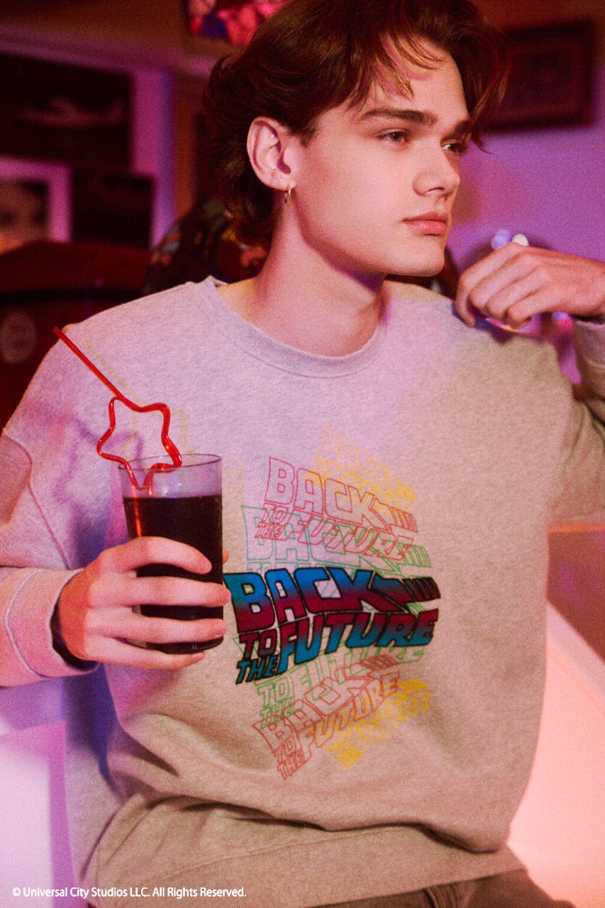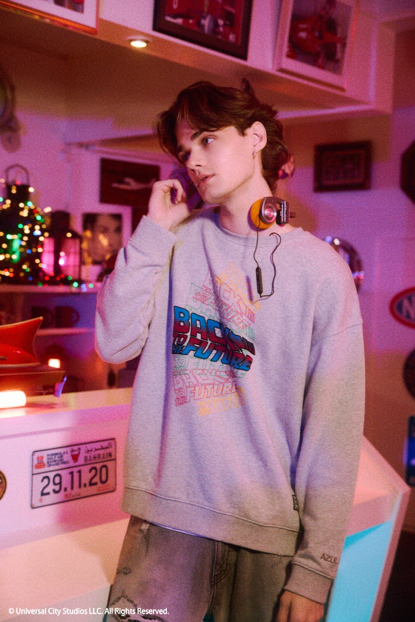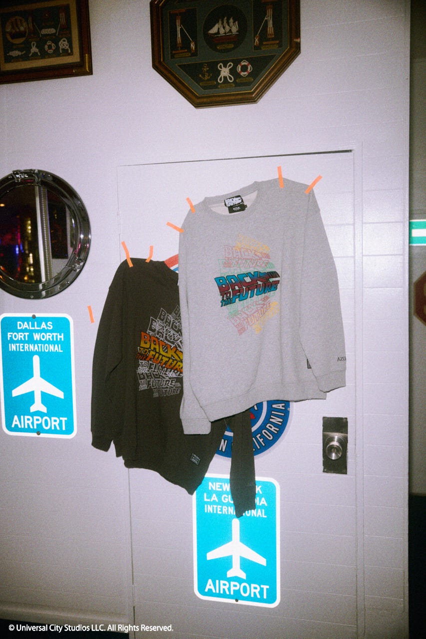 映画『バック・トゥ・ザ・フューチャー』の40周年を記念して、BACK TO THE FUTUREの公式ロゴをモチーフにしたスペシャルスウェットを制作しました。