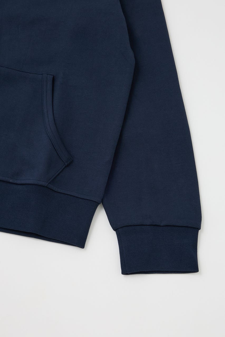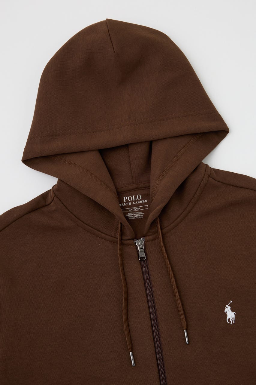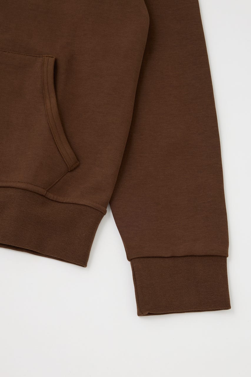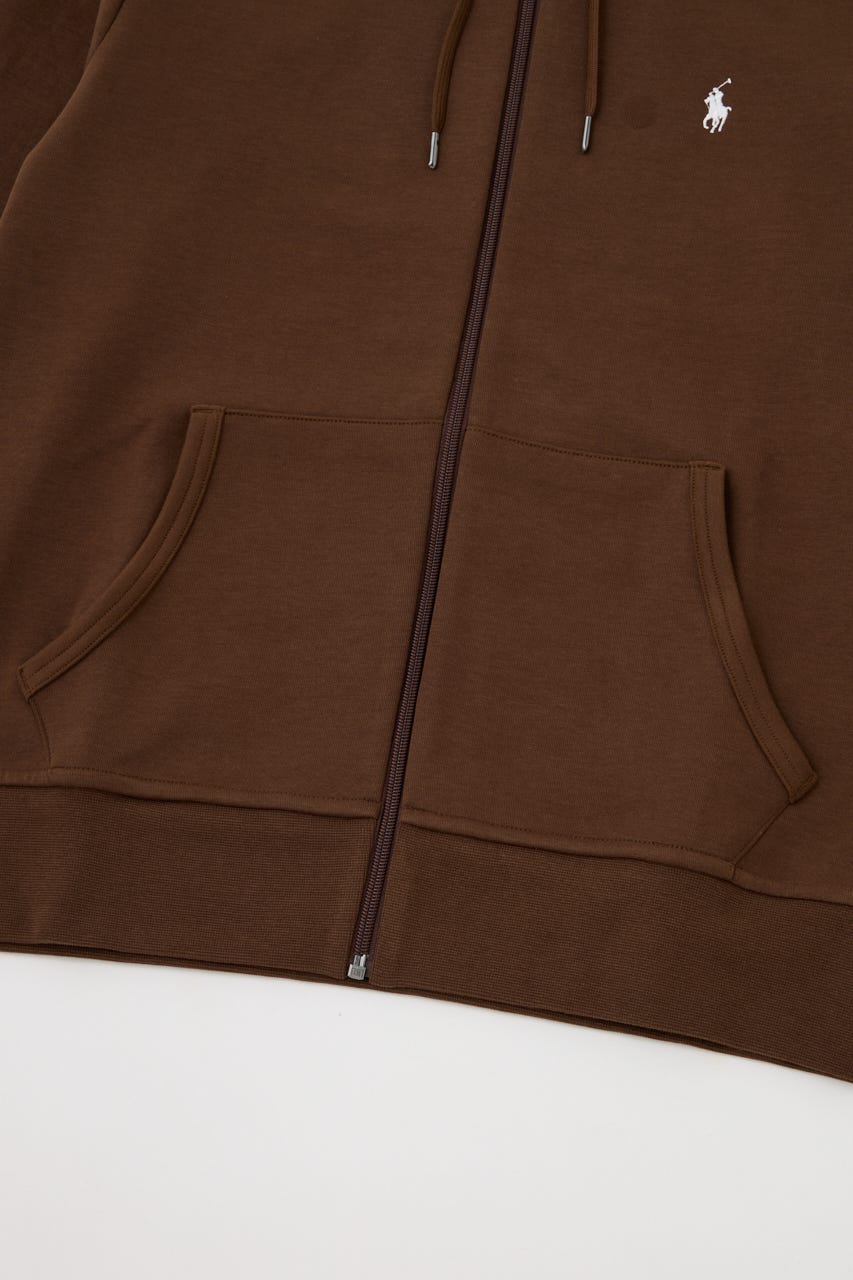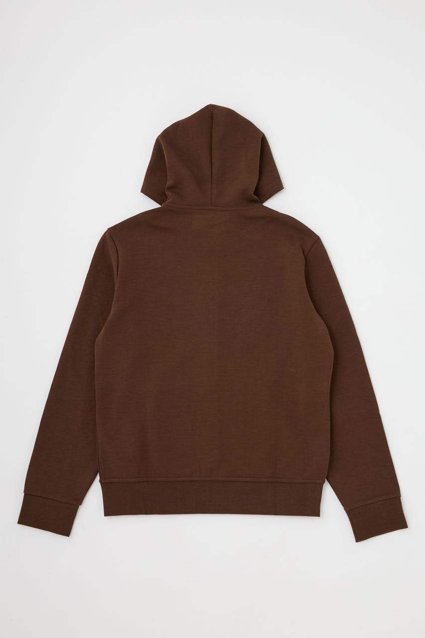 ガーメント染めを施したコットン ループバックフリースで仕立てたフルジップフーディ。