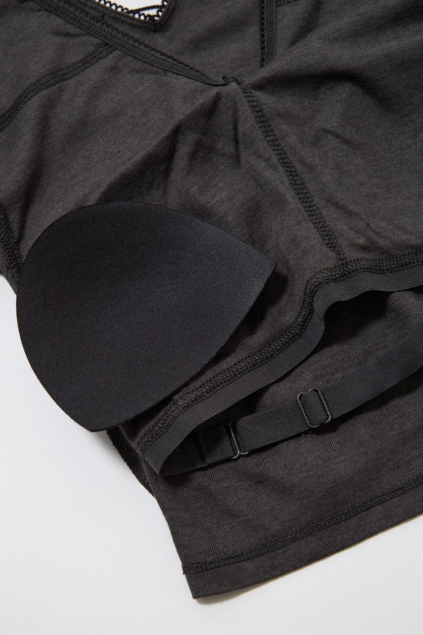 カップ内蔵で下着を気にせず着用可能、リラックスした着心地と美しいバストラインを演出。