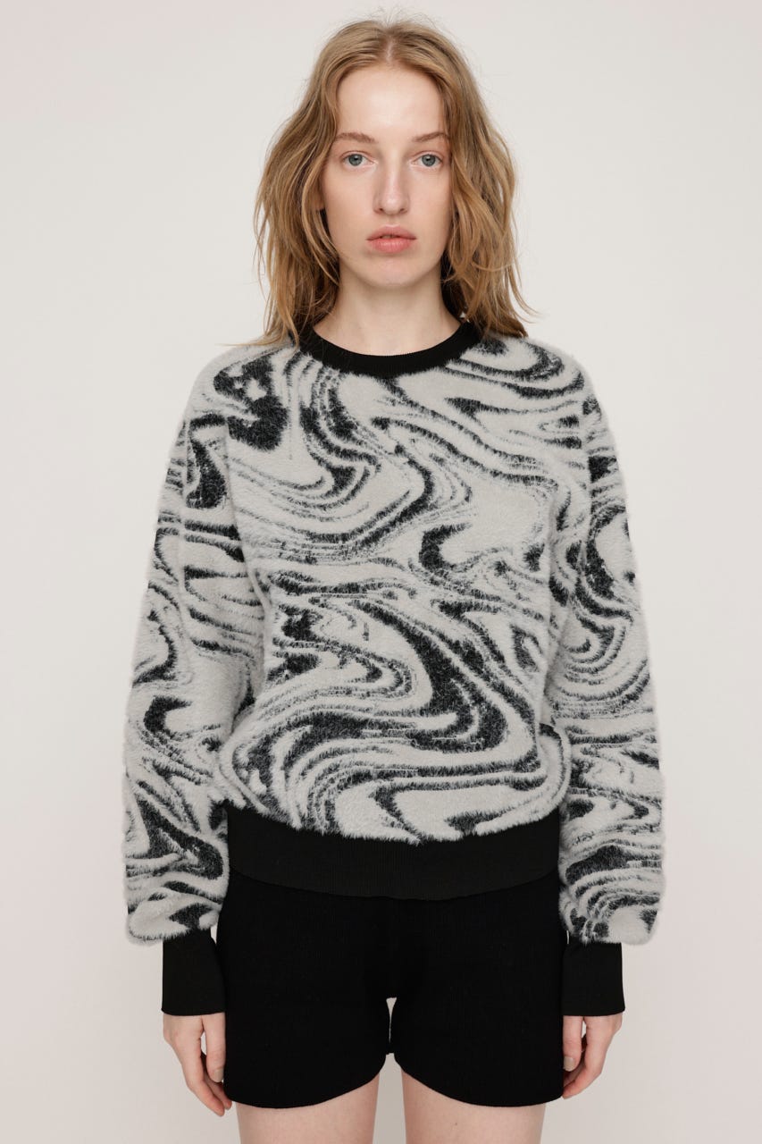 ■POINT:SLYオリジナルで作成したマーブル柄をシャギー素材で仕上げたニットトップス。