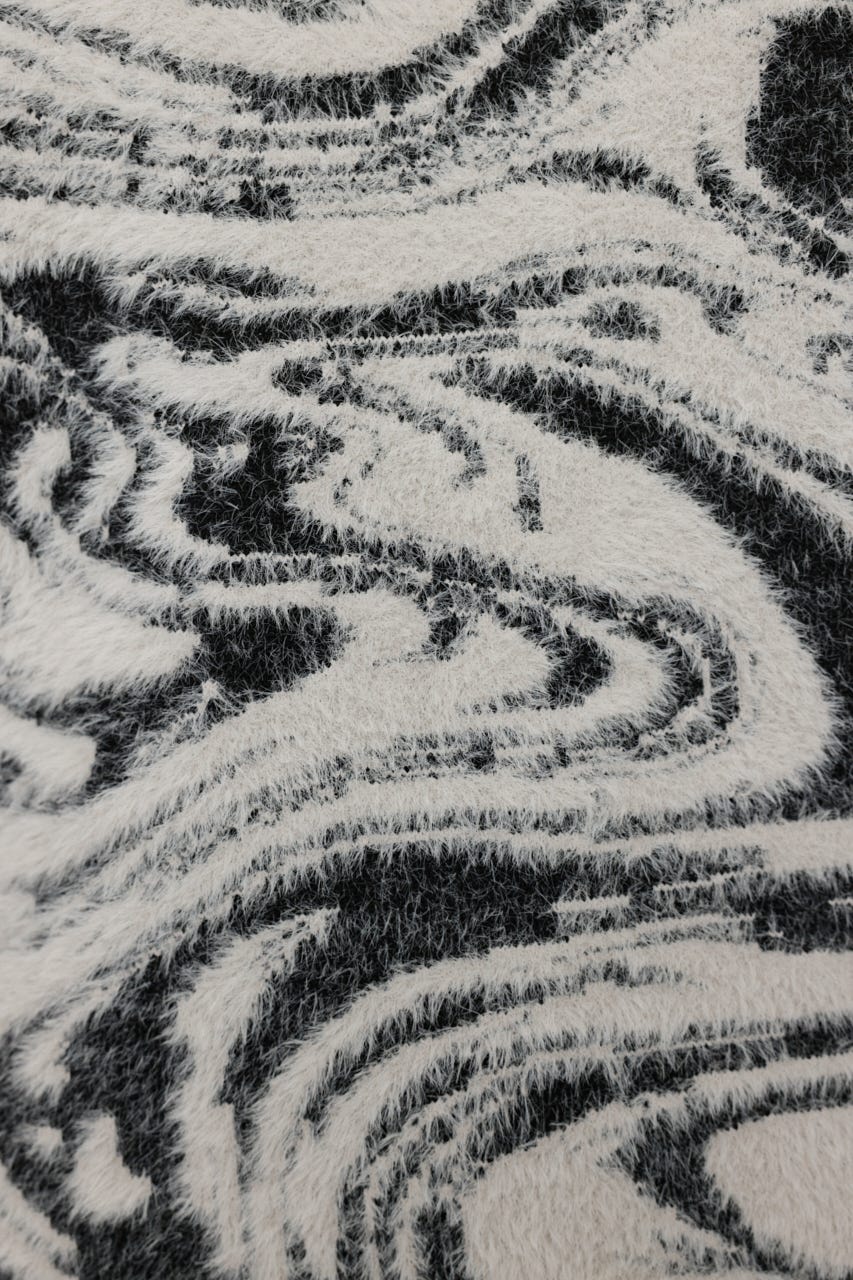 ■FABRIC/MATERIAL:ナイロンシャギーのニット糸をジャガード編みし、マーブル柄に仕上げました。