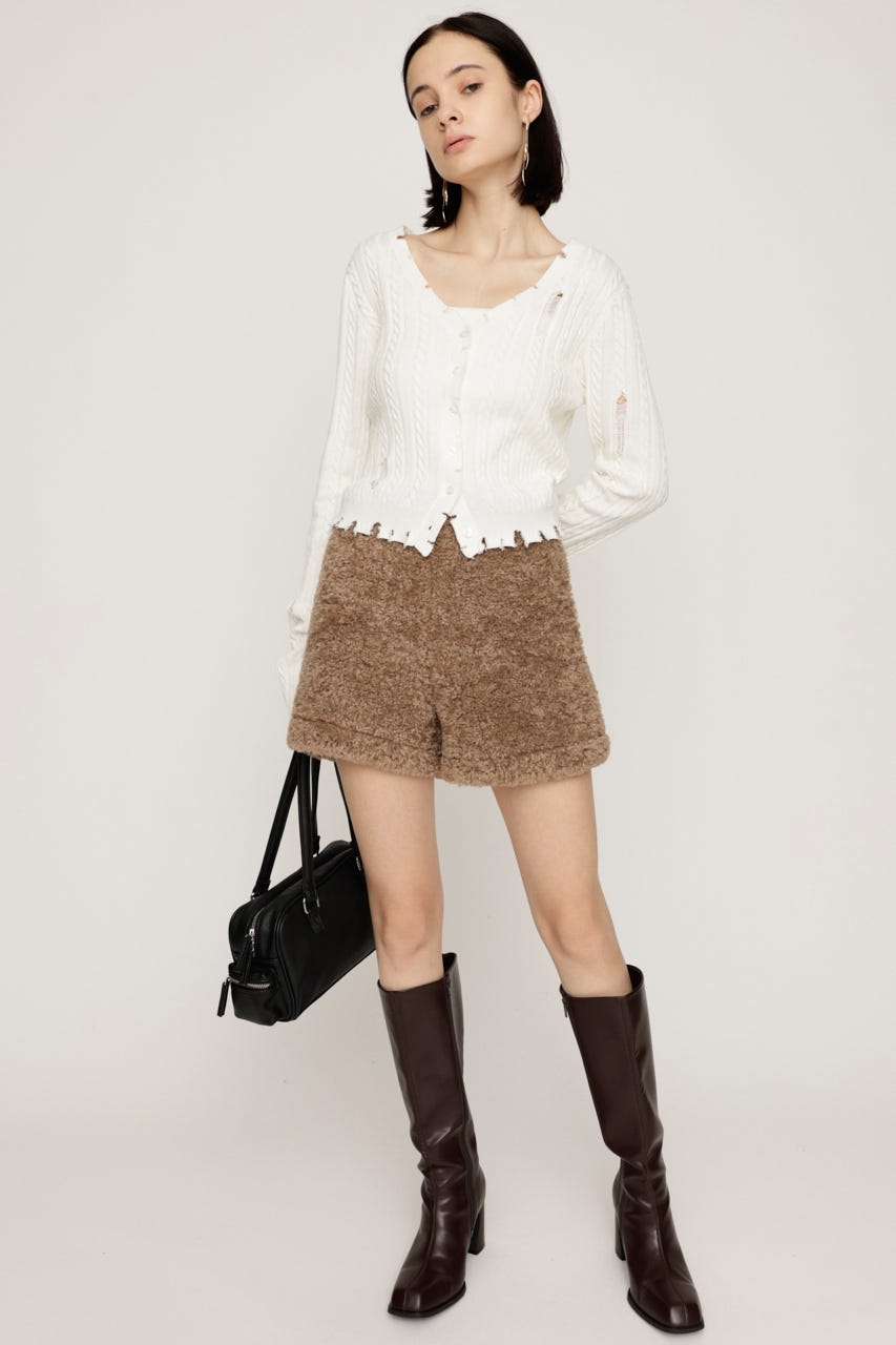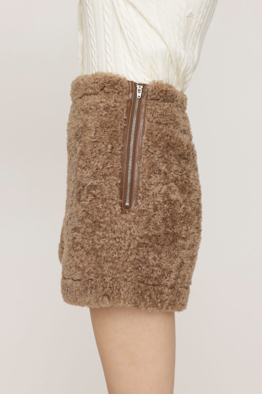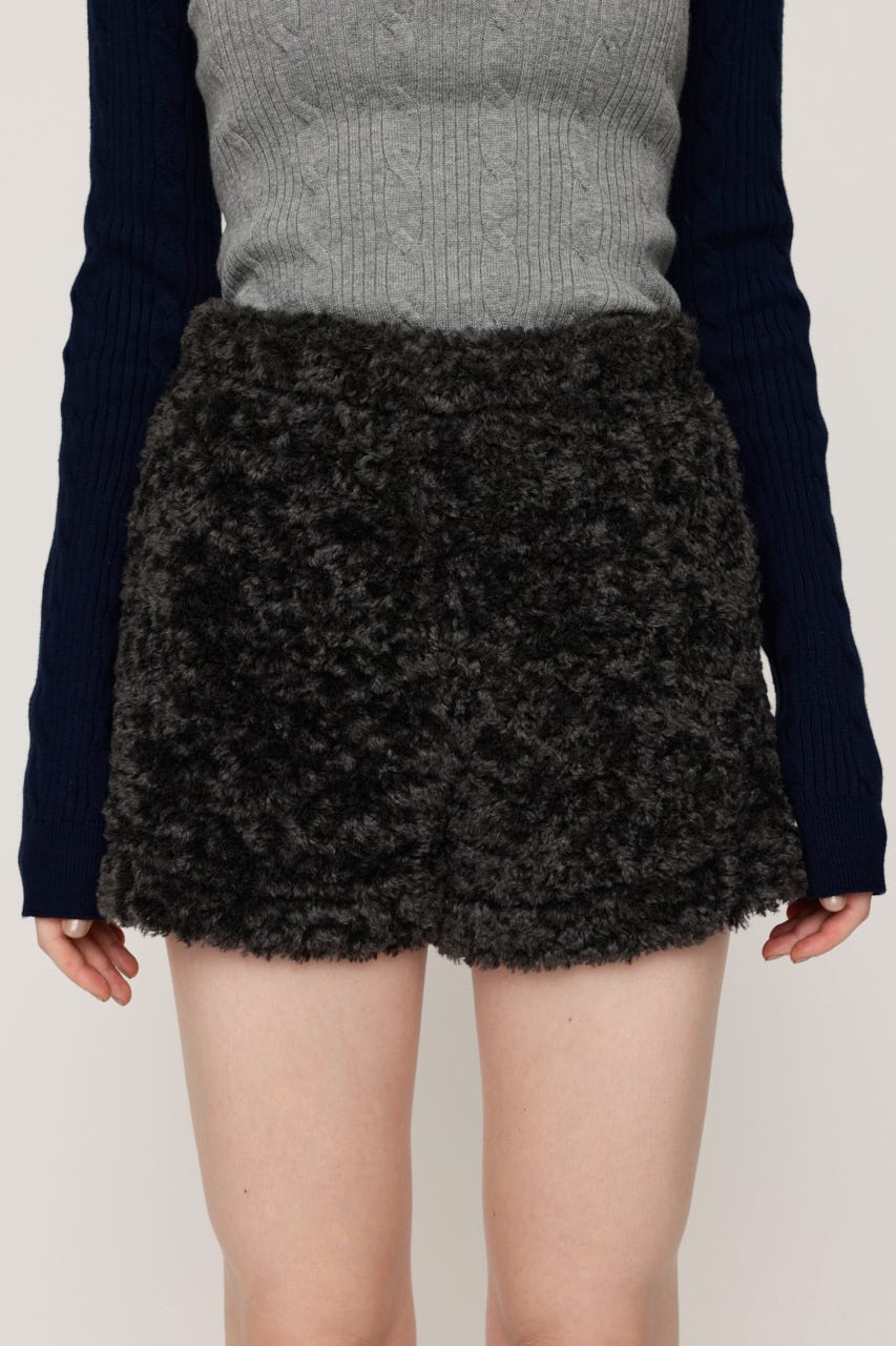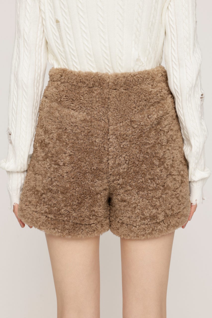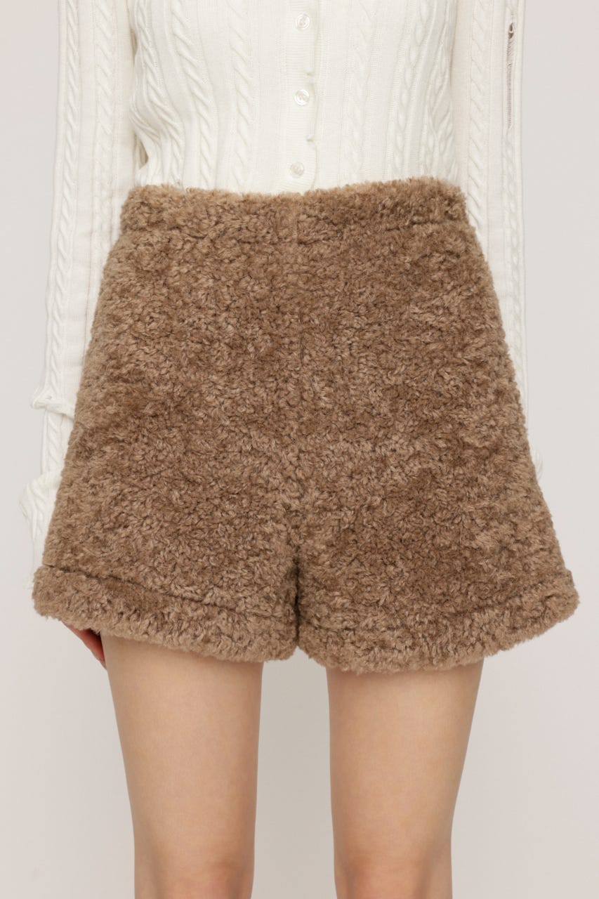 ■POINT:シーズンムードを高めるフェイクボア素材がスタイリングの主役になるショートパンツ。