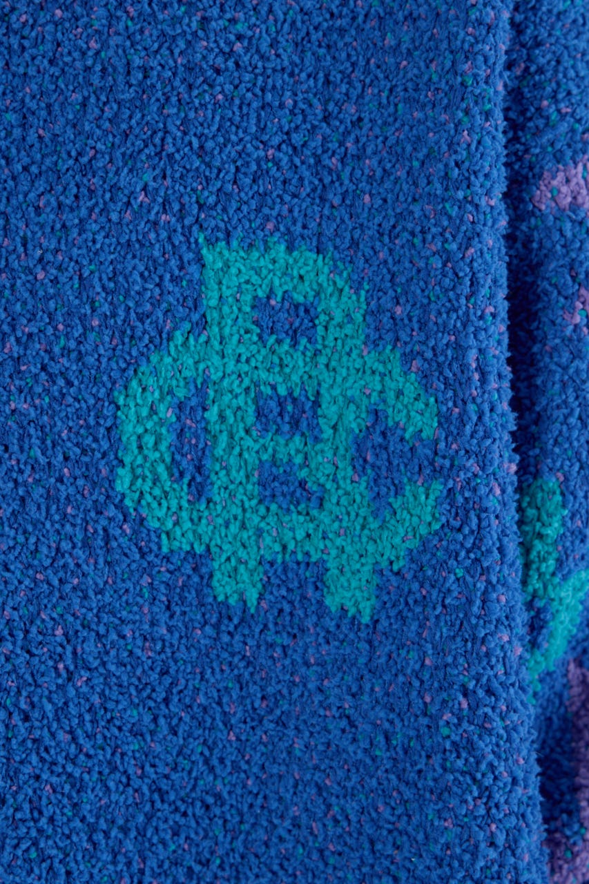 着心地の良い柔らかい糸が特徴で、膨らみのある表情の中にオルテガデザインをジャカードで落とし込みました。
