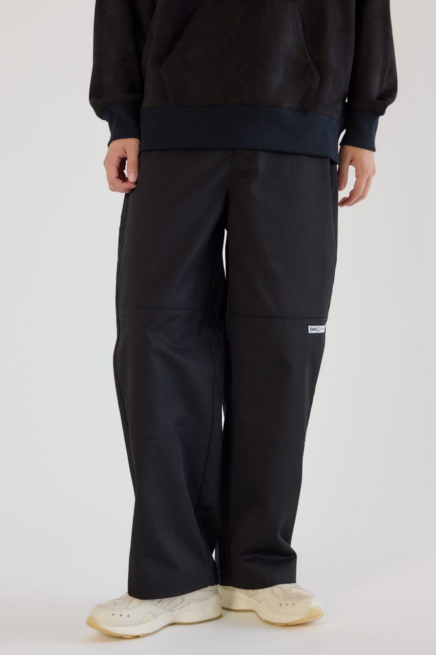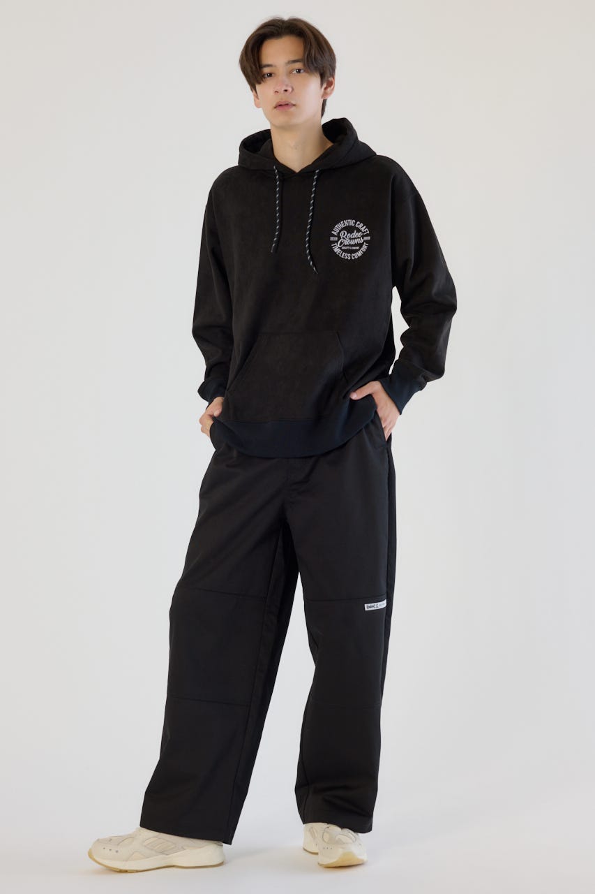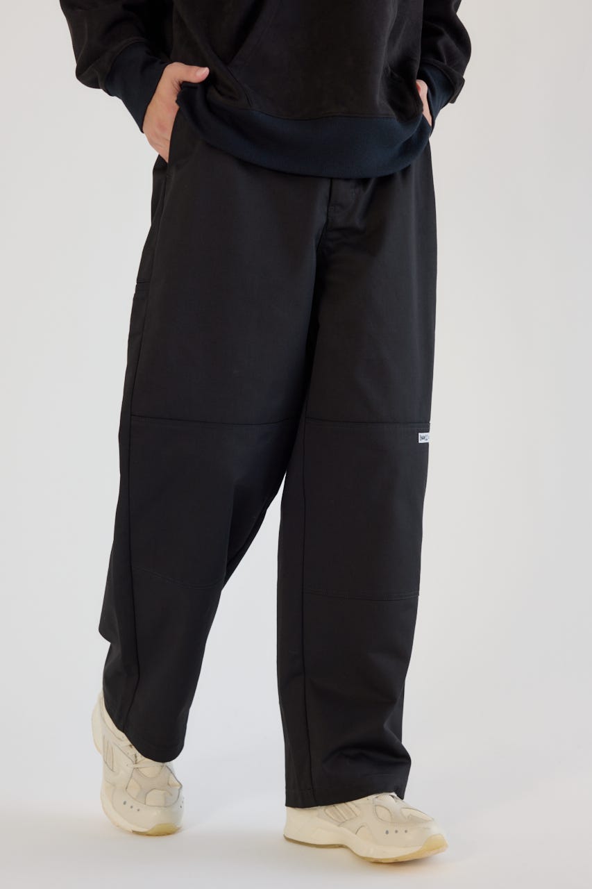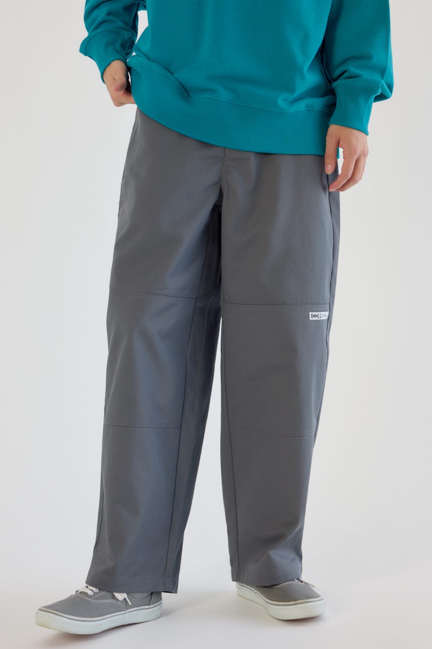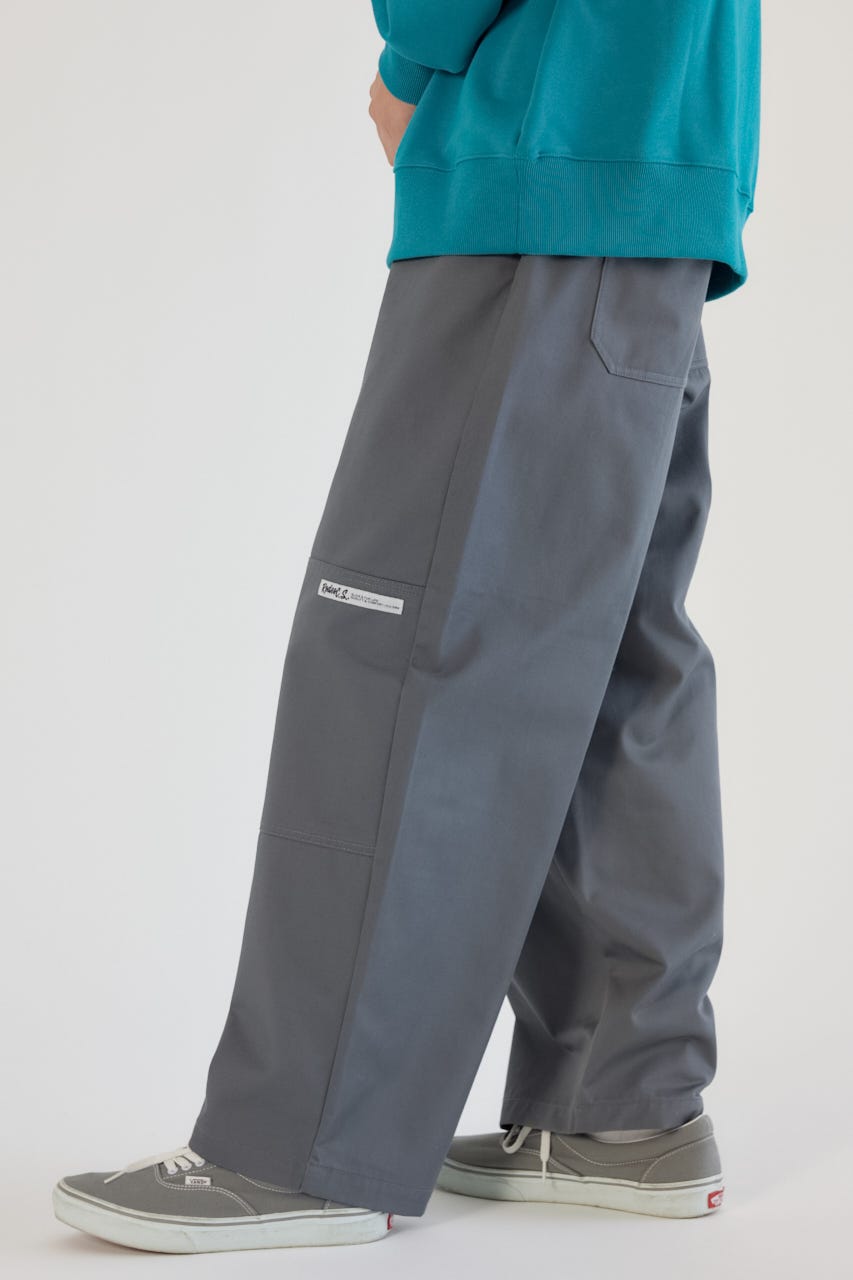 腰と太腿にゆとりを持たせたルーズフィットで動きやすくマルチに使えるダブルニーデザイン。