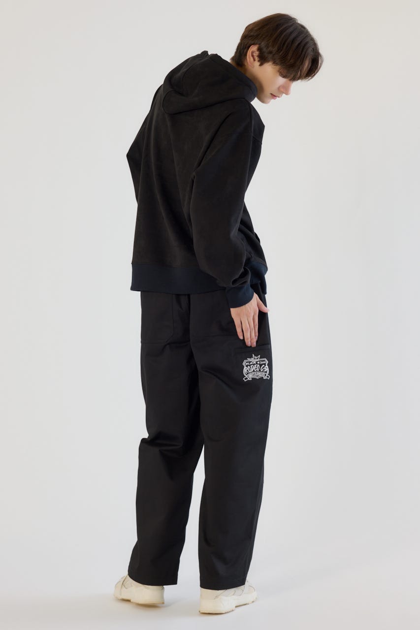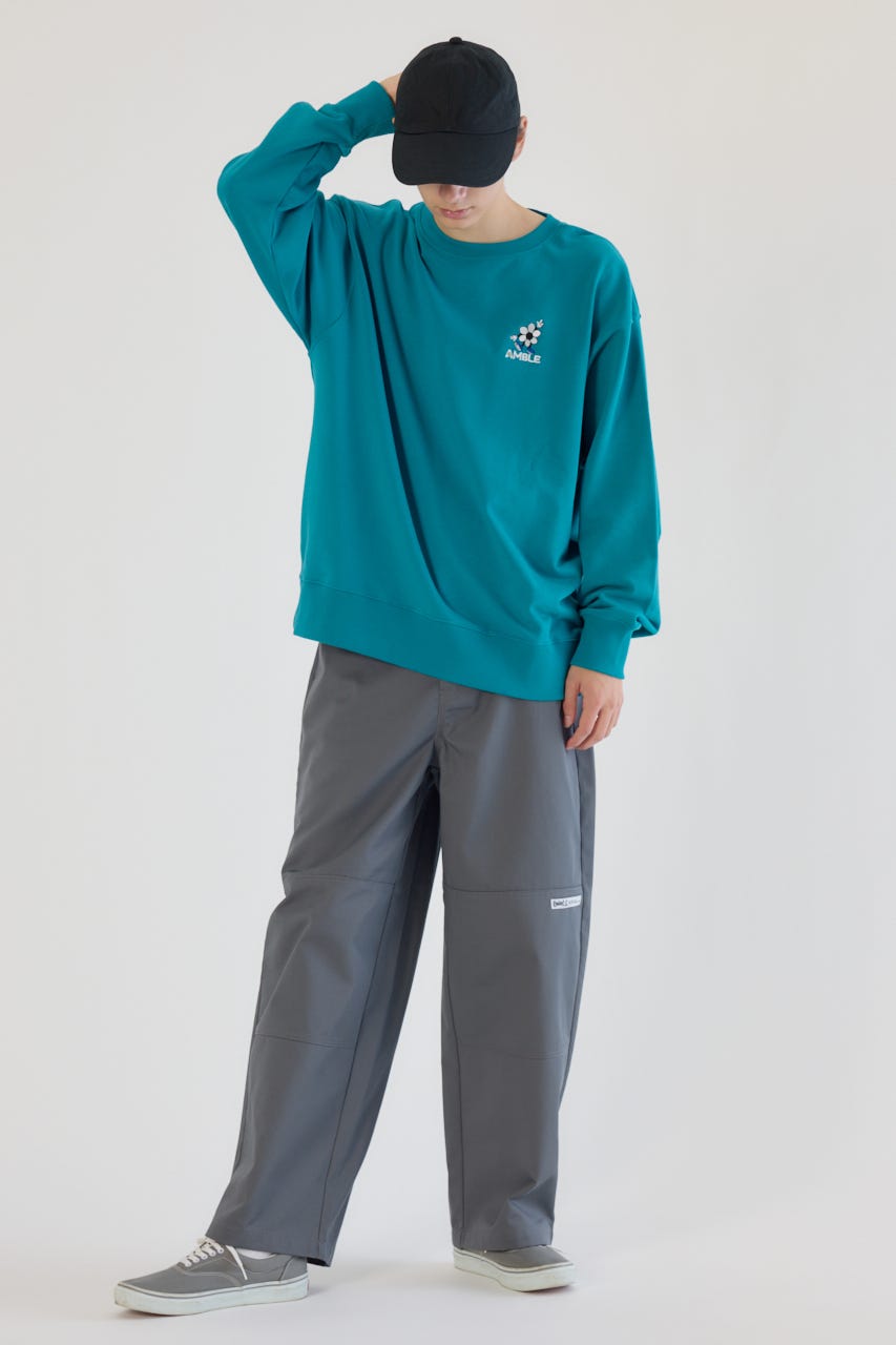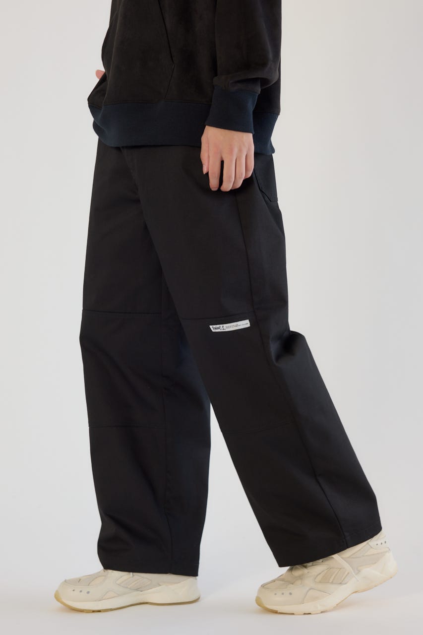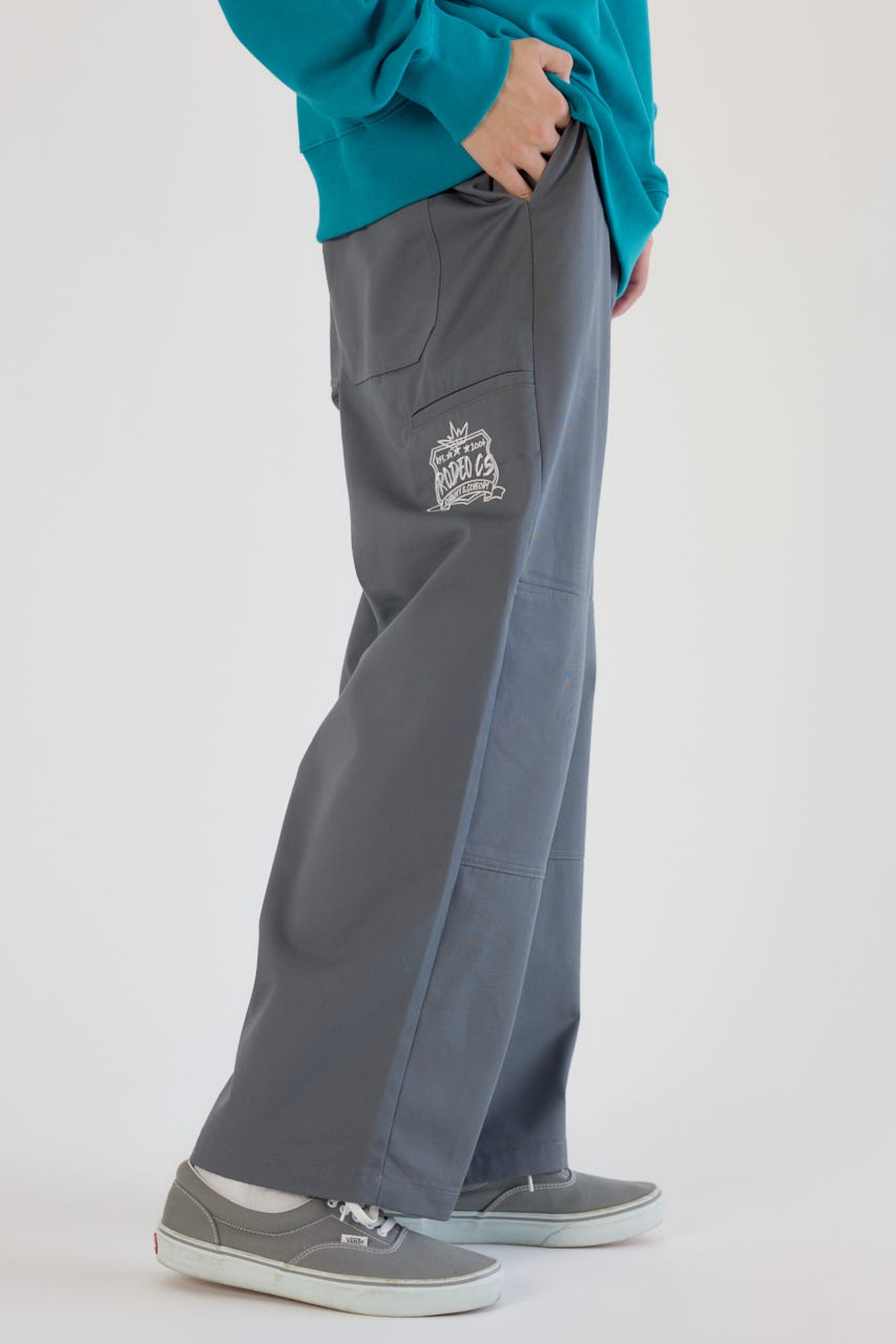 腰と太腿にゆとりを持たせたルーズフィットで動きやすくマルチに使えるダブルニーデザイン。