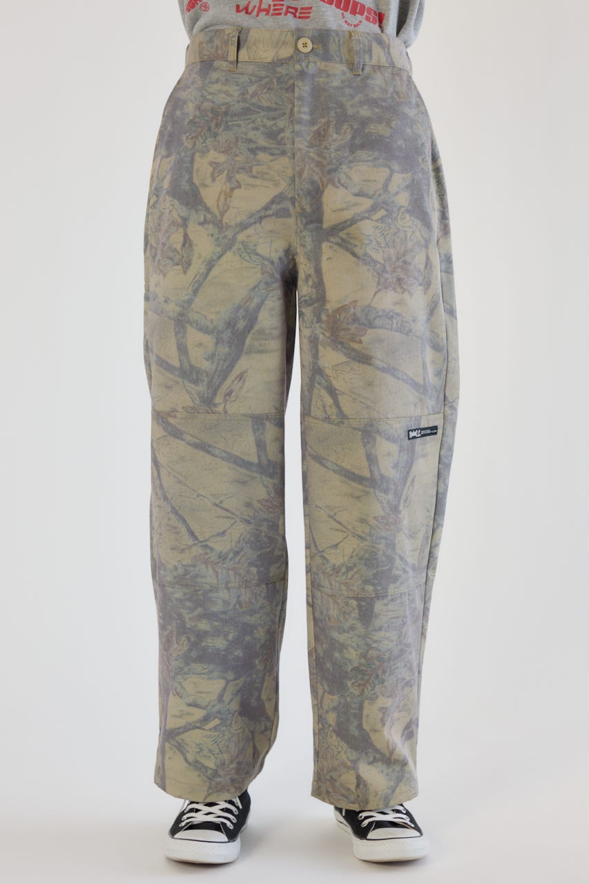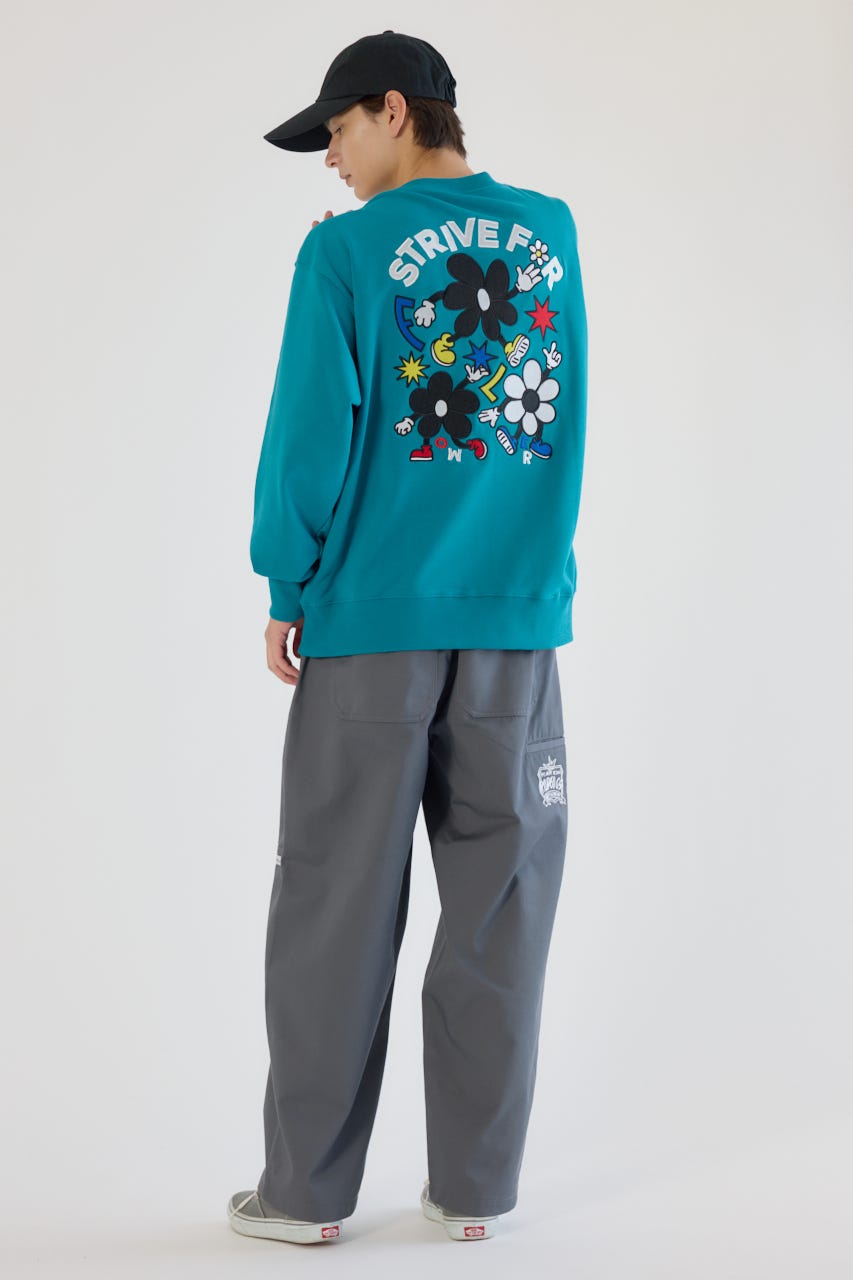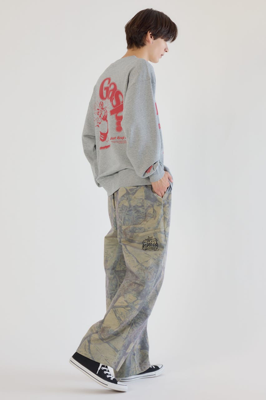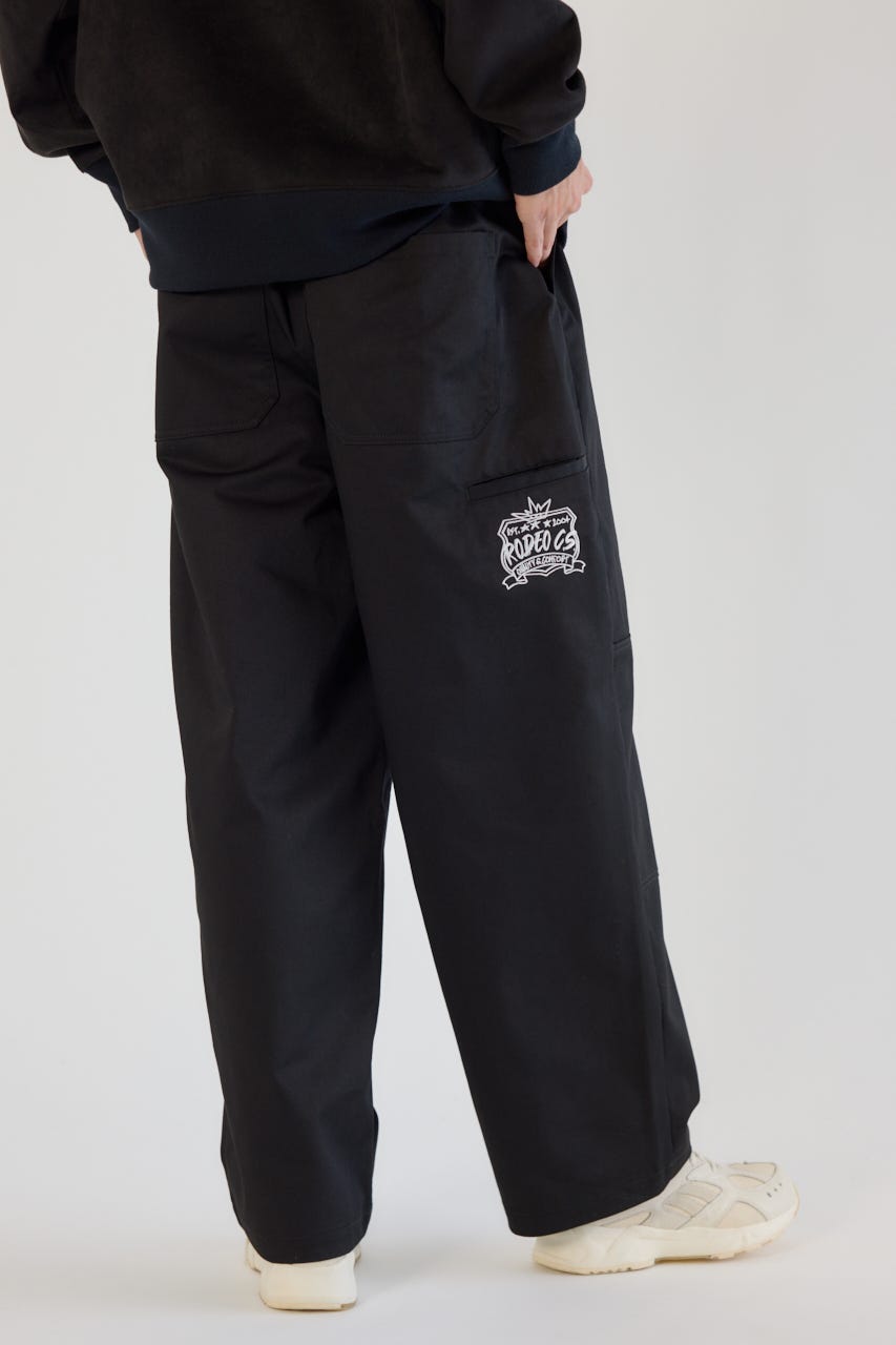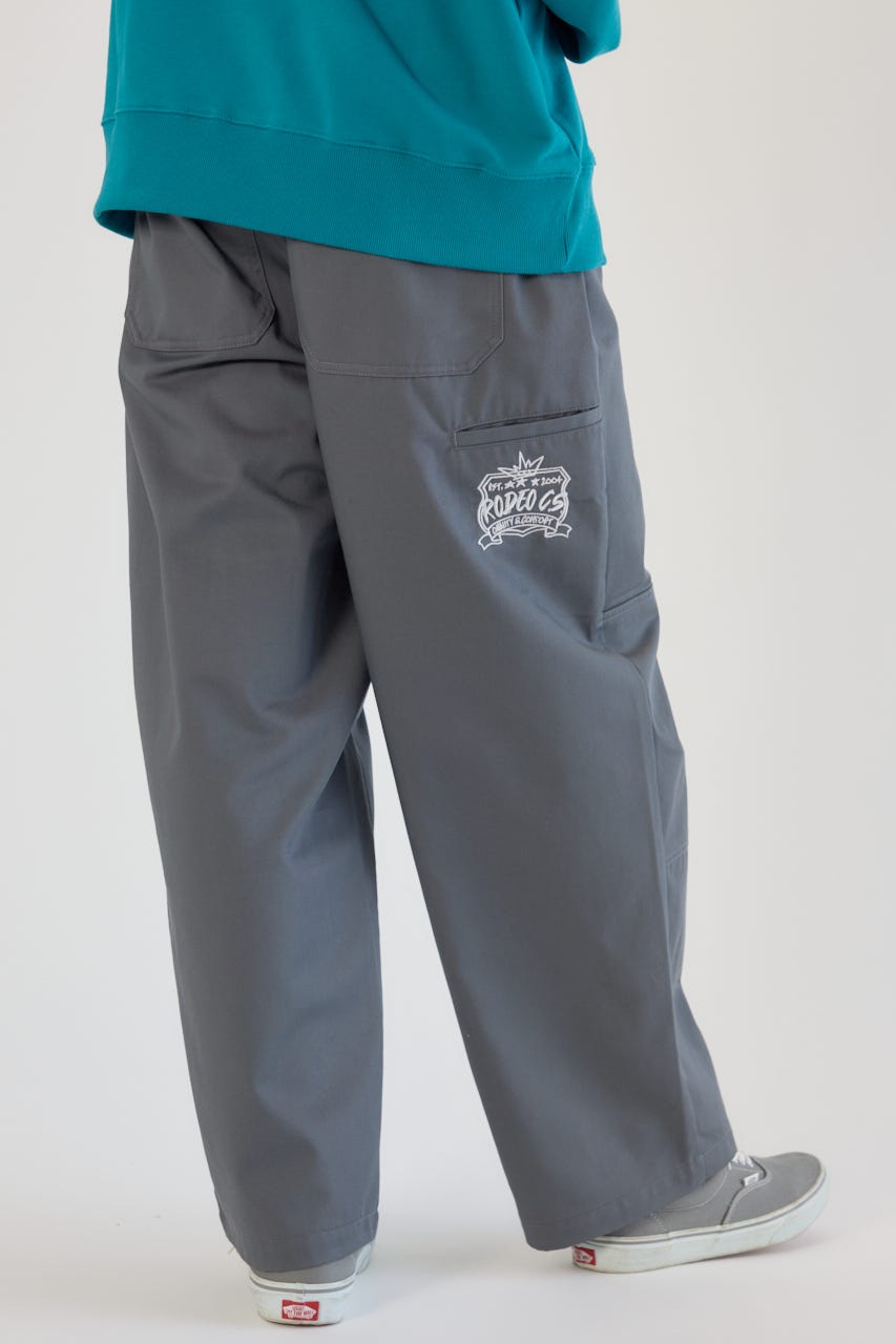 腰と太腿にゆとりを持たせたルーズフィットで動きやすくマルチに使えるダブルニーデザイン。