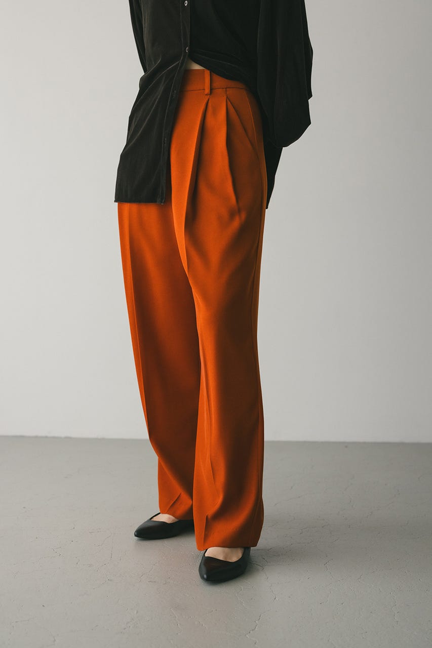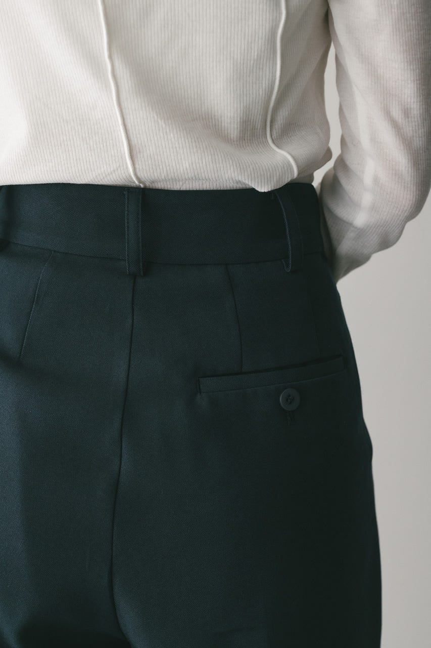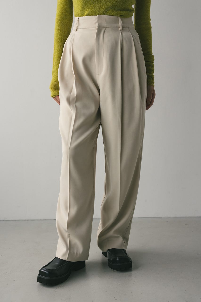 深く入れた2本のタックとセンタープレスが美しいシルエットをつくり、上品なマニッシュモードスタイルを完成させます。