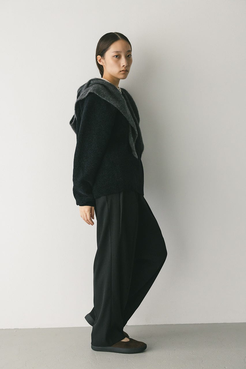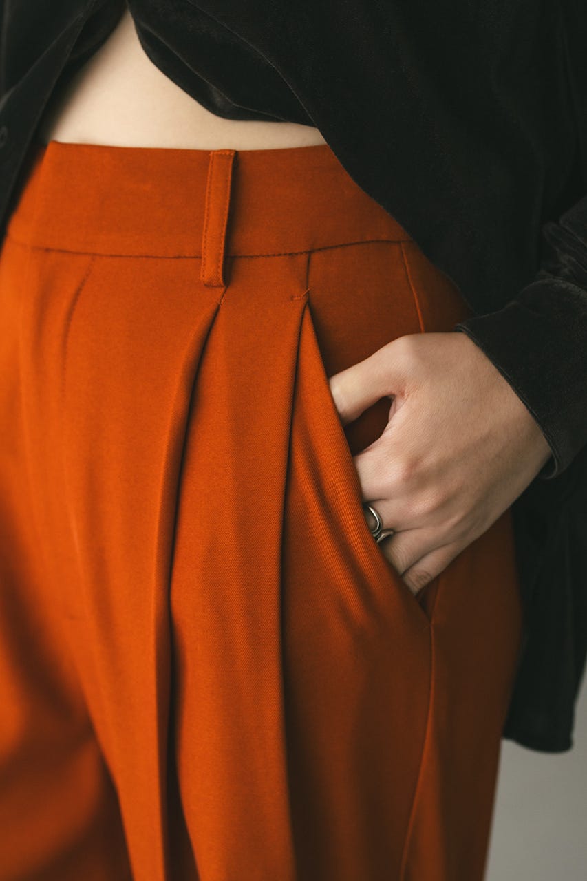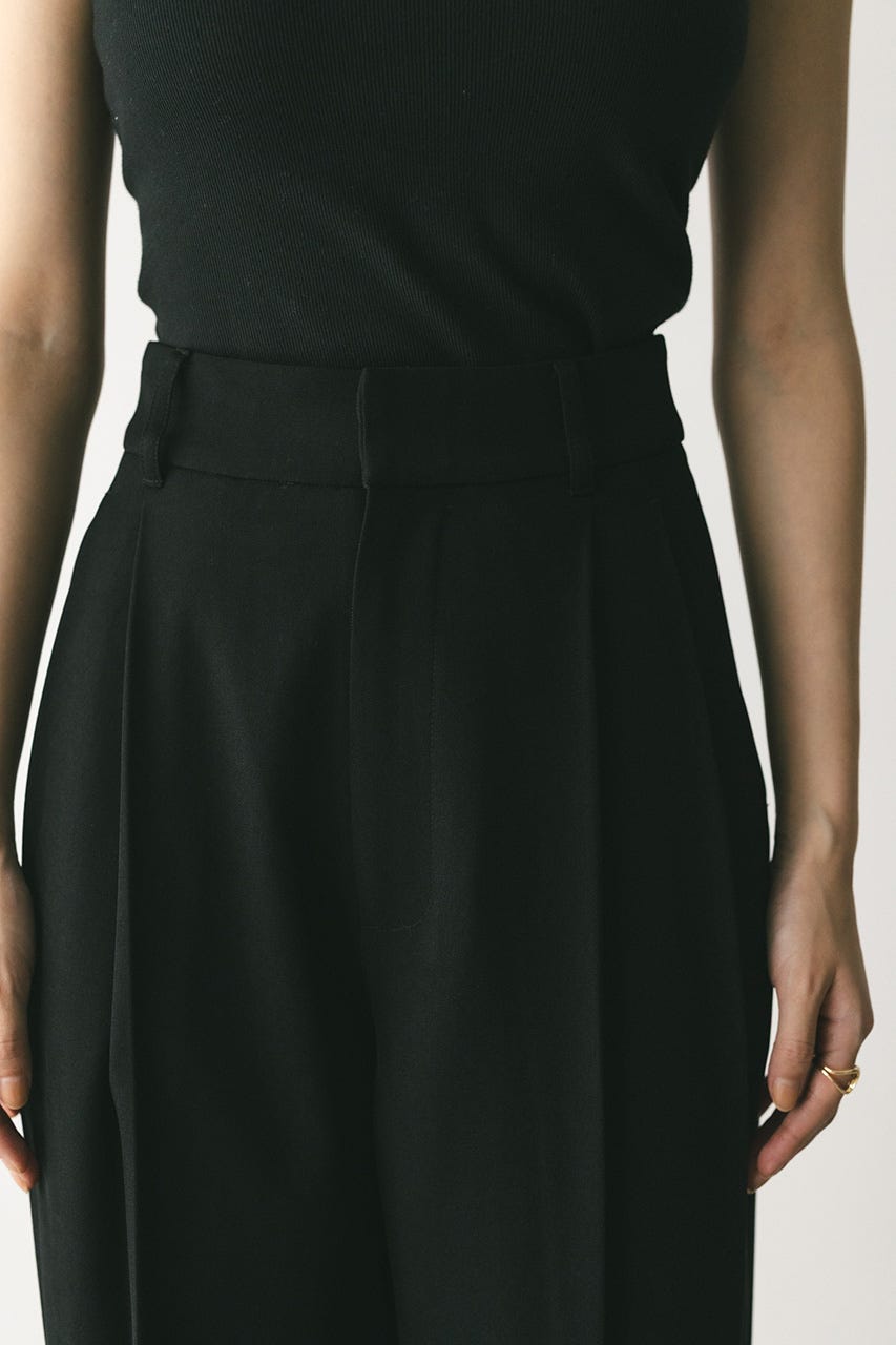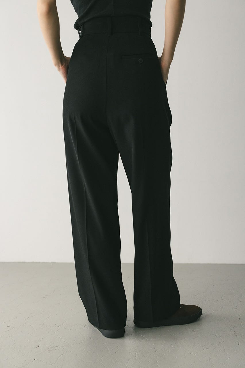深く入れた2本のタックとセンタープレスが美しいシルエットをつくり、上品なマニッシュモードスタイルを完成させます。