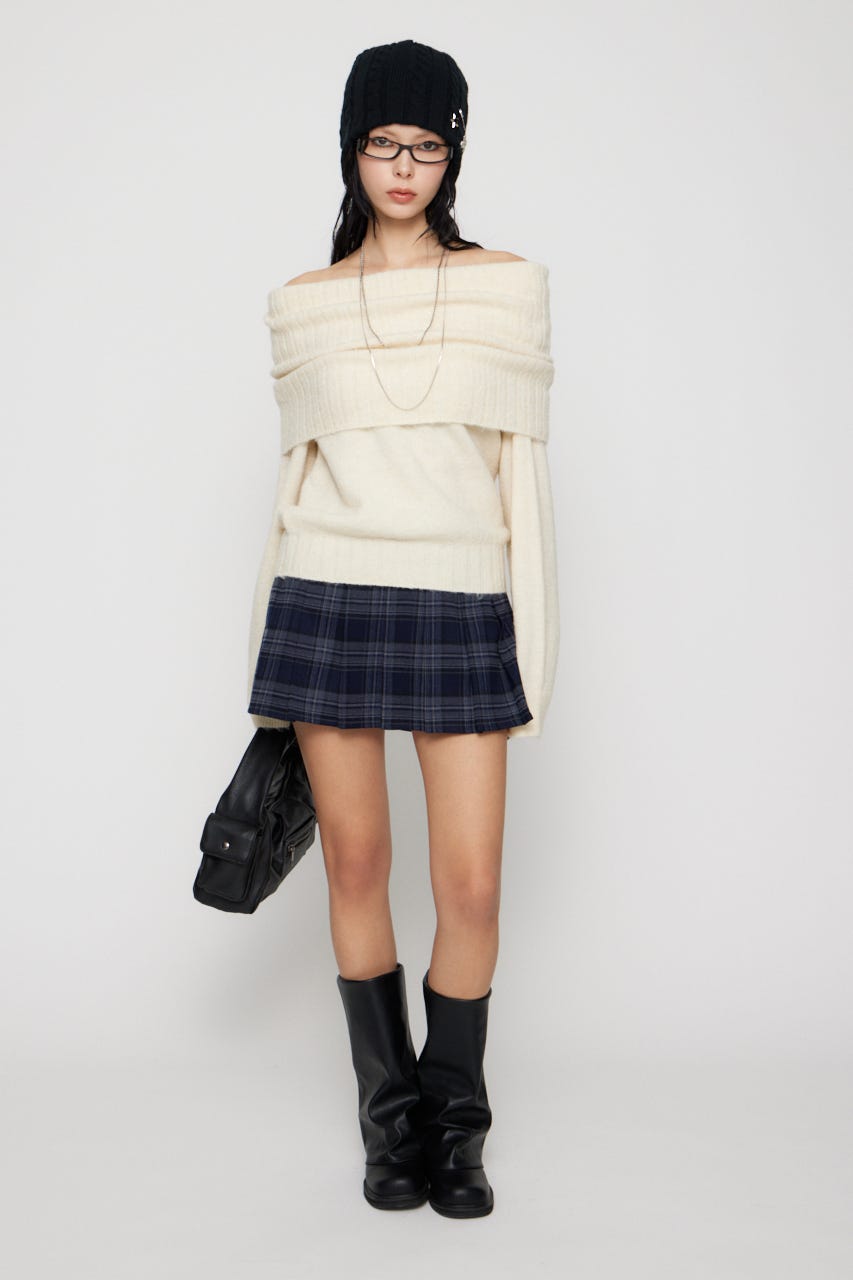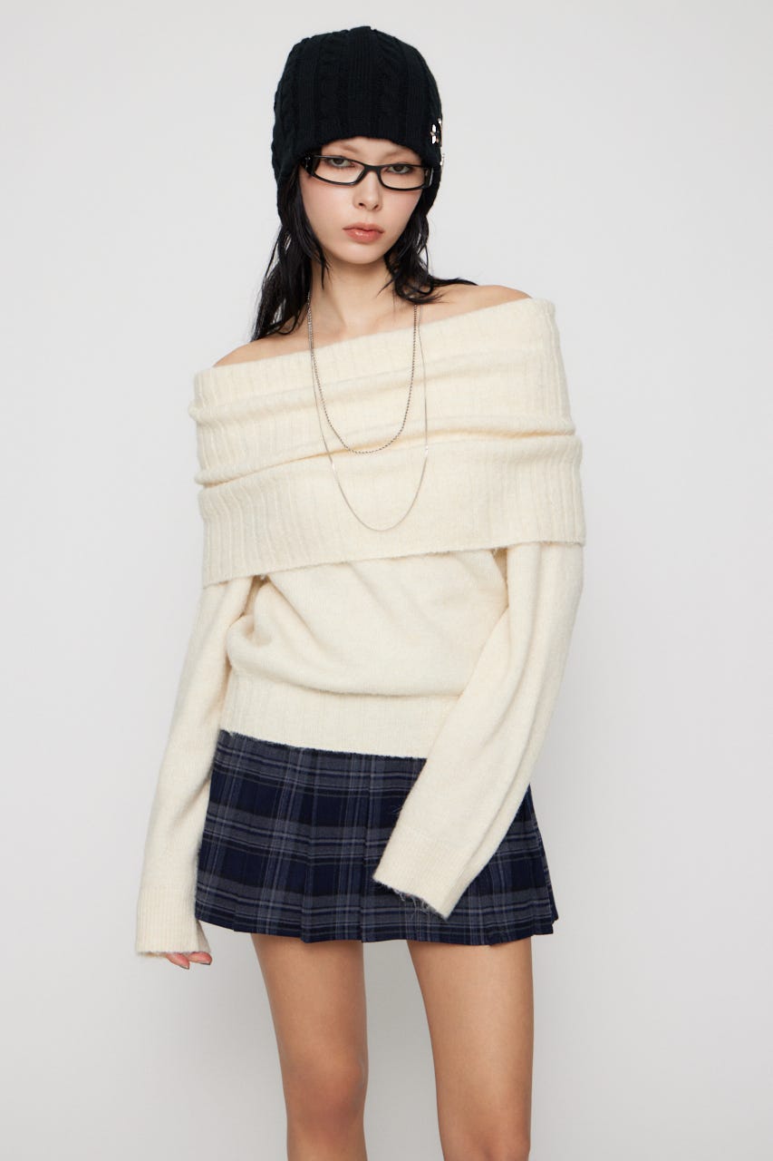 ■POINT:もっちりふんわりとした糸の質感がポイントのオフショルニット。