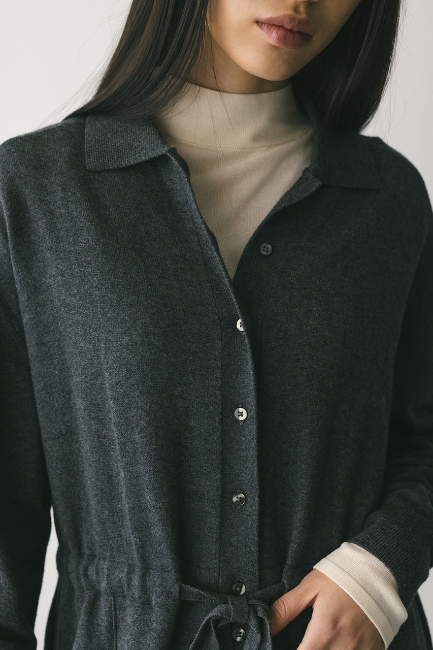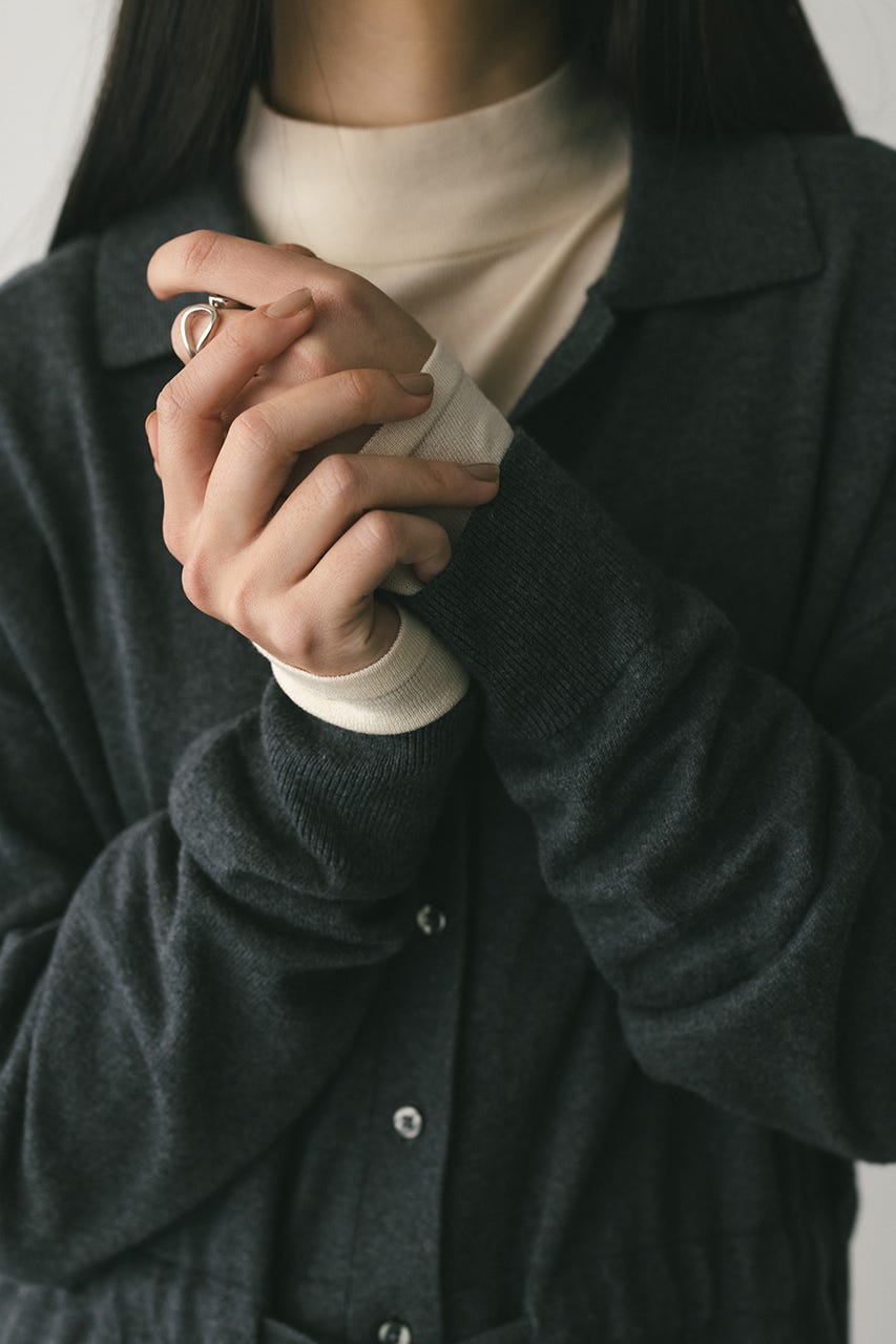 襟デザインでリラックスの中にもきちんと感をプラス。