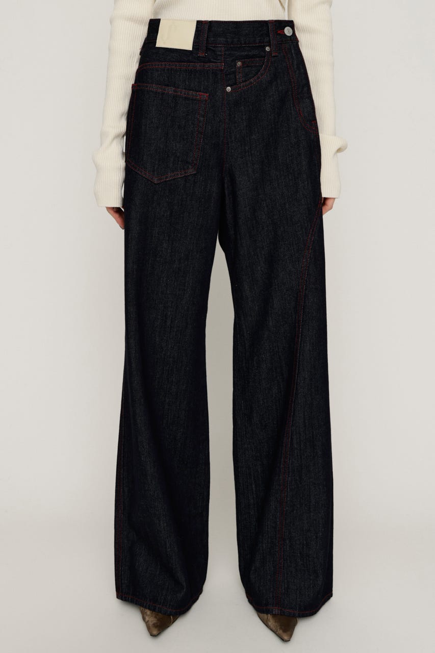 デニムバックの半分がフロントにきたようなリメイク風デザインがSLYらしいデザインデニム。