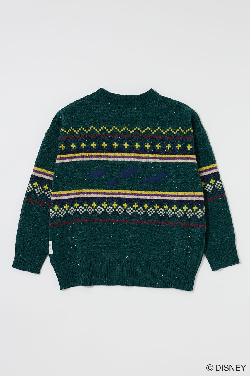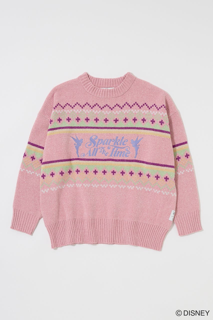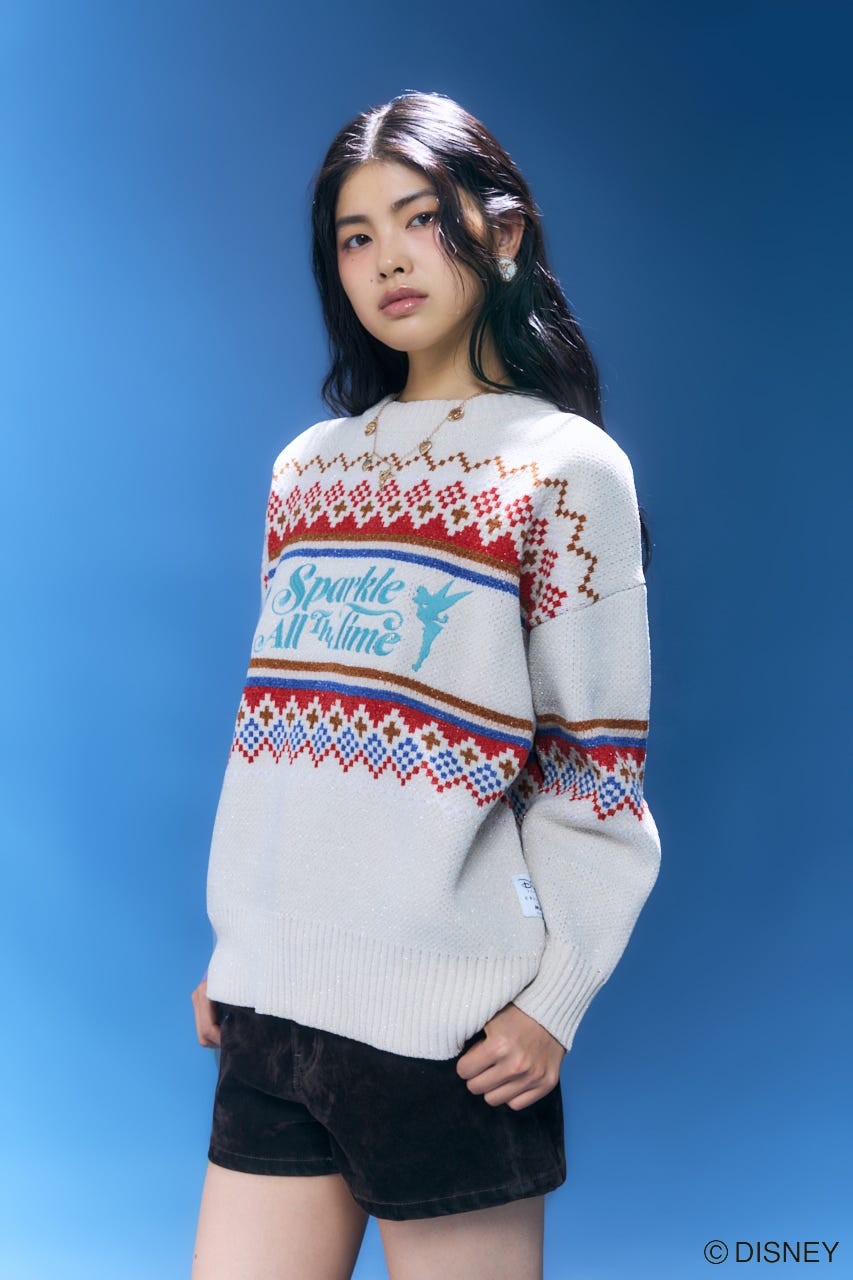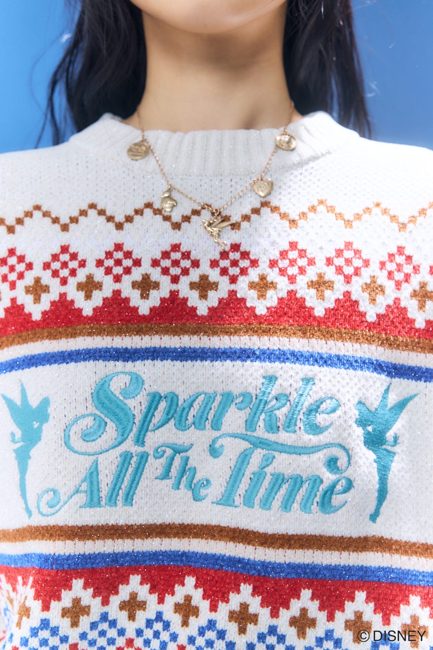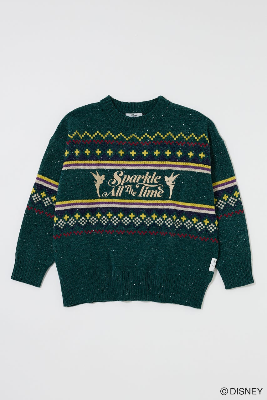 秋冬シーズンに欠かすことのできないフェアアイル調の柄にティンカーベル、ピーターパン達を刺繍で表現した1枚。