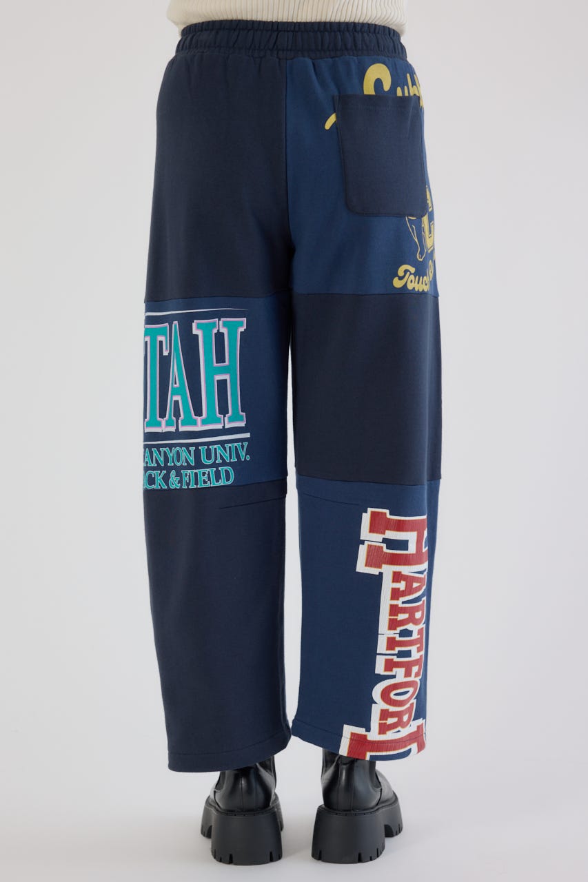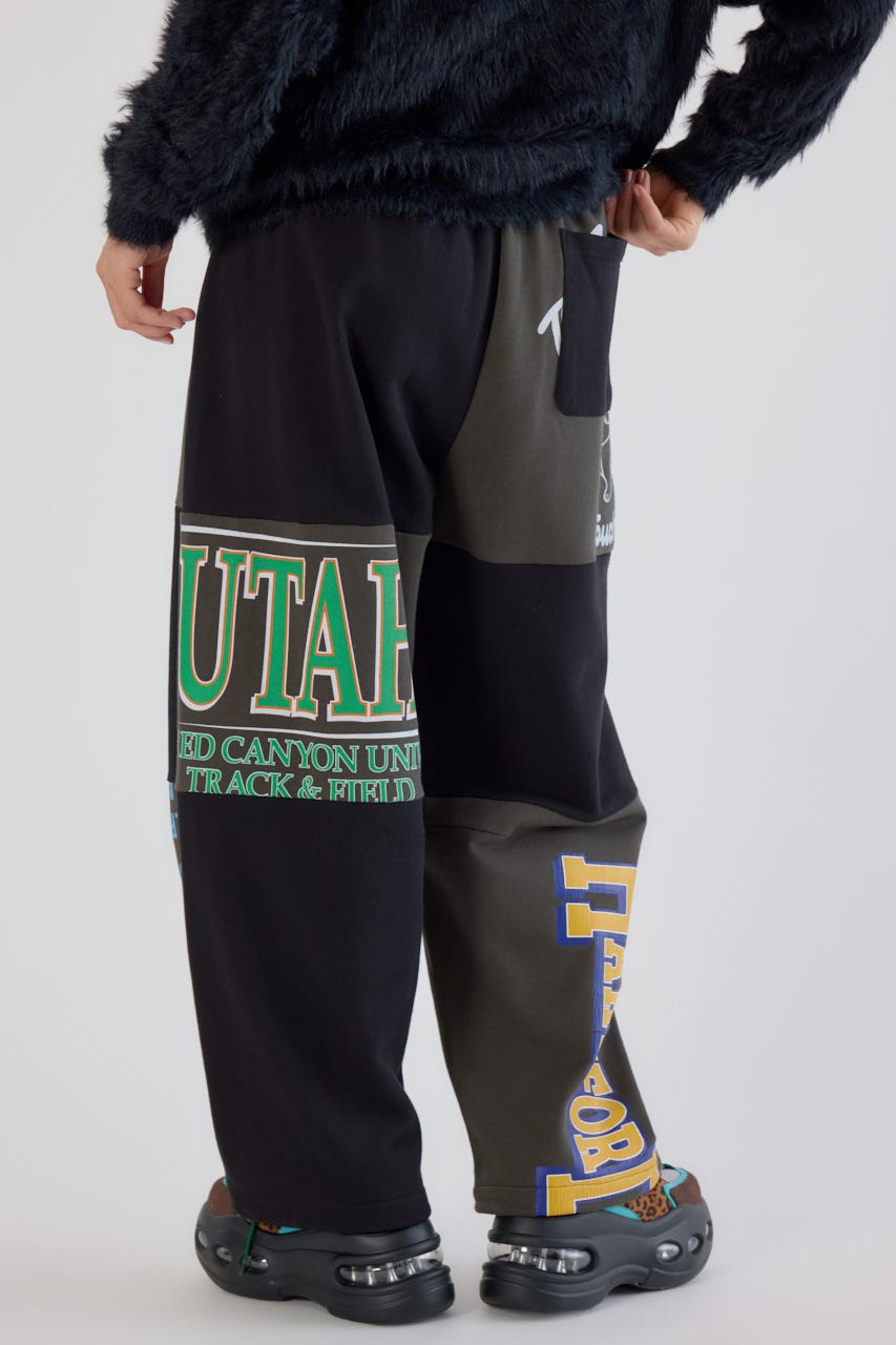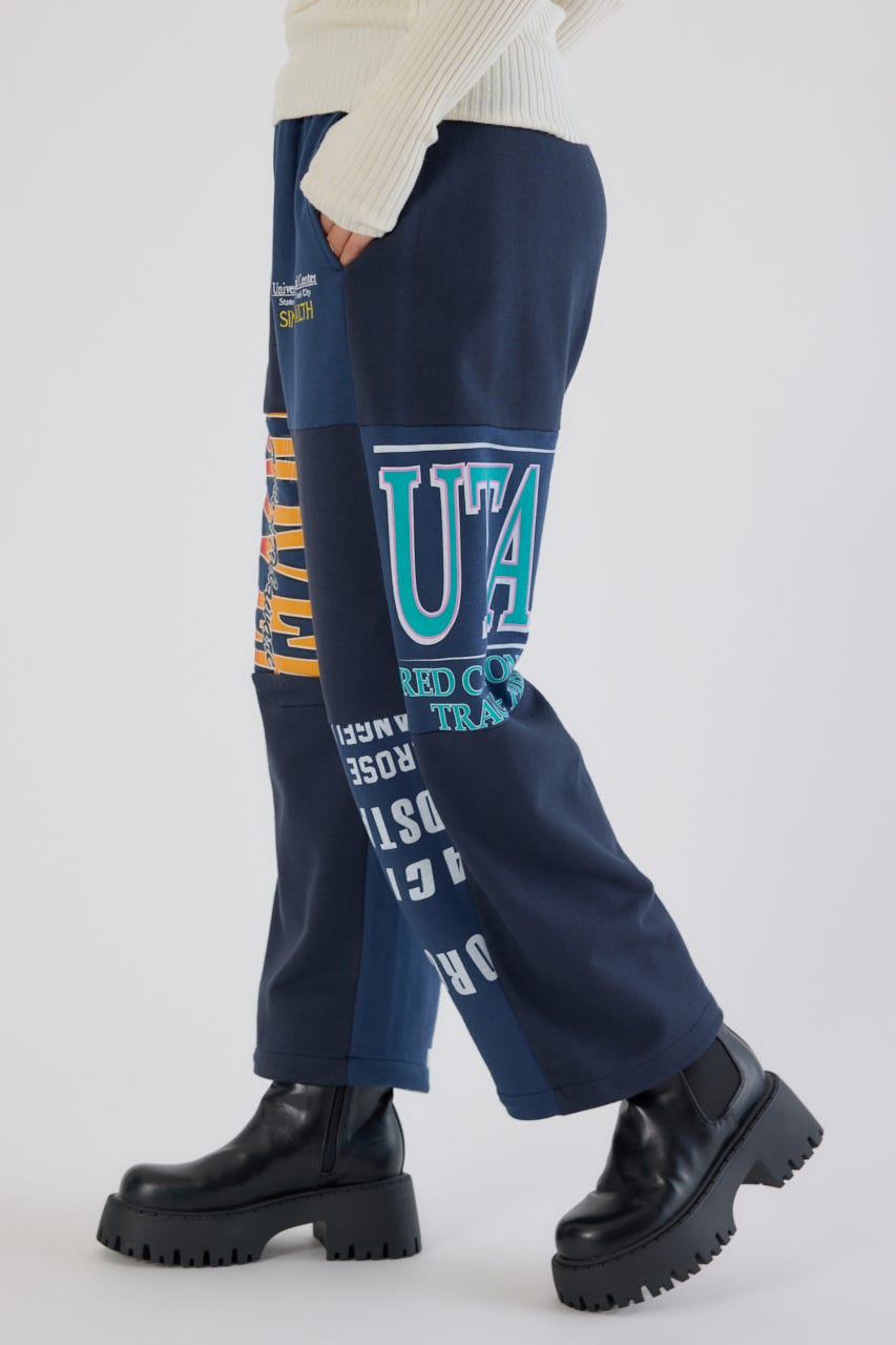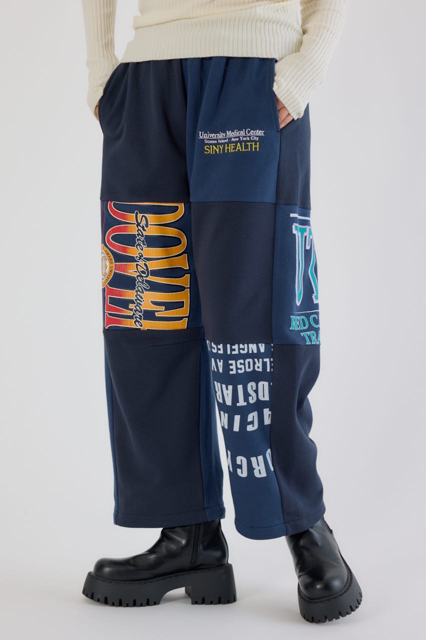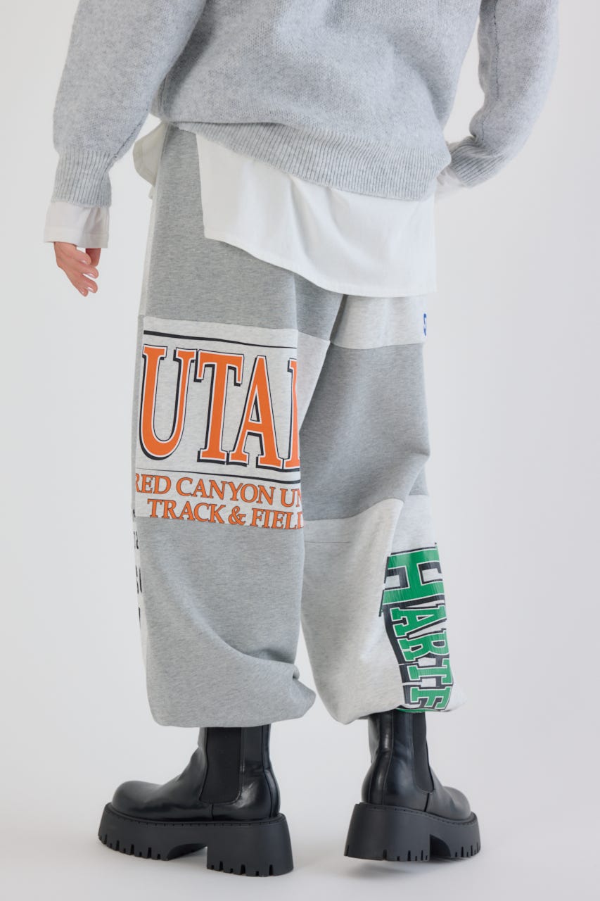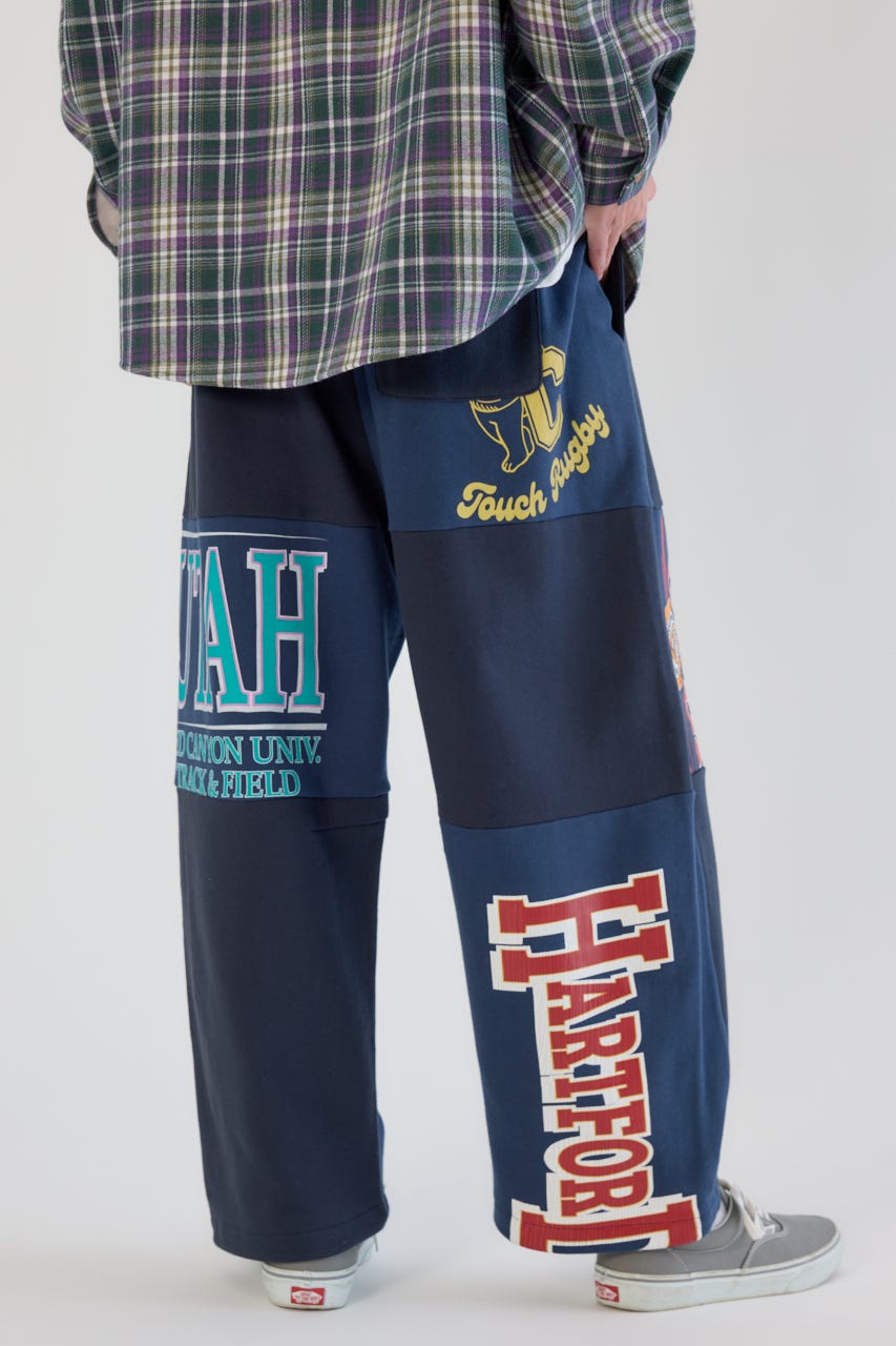 何枚かのスウェットをはぎ合わせてリメイクしたかのようなスウェットパンツ。