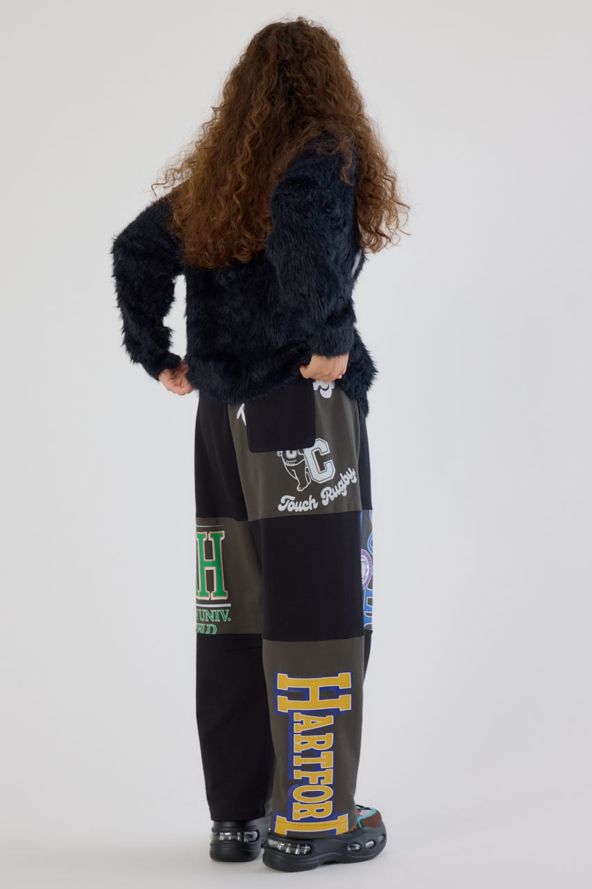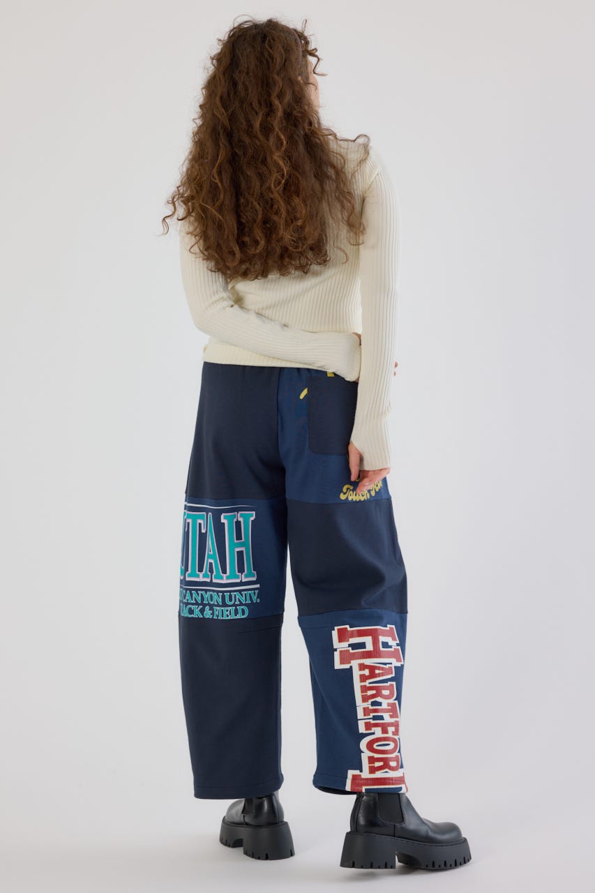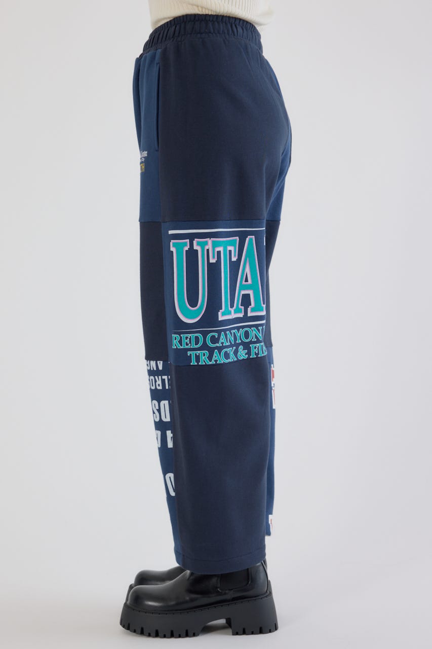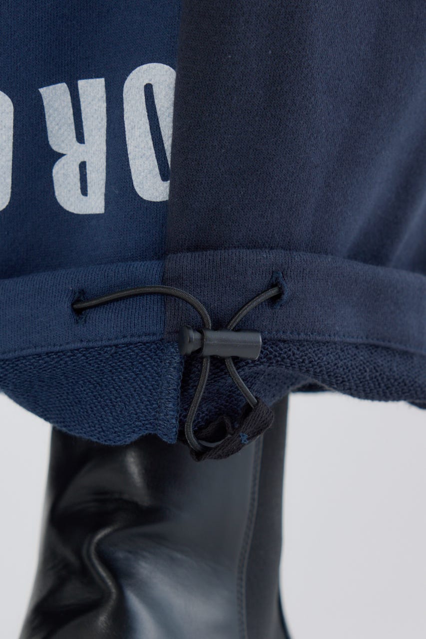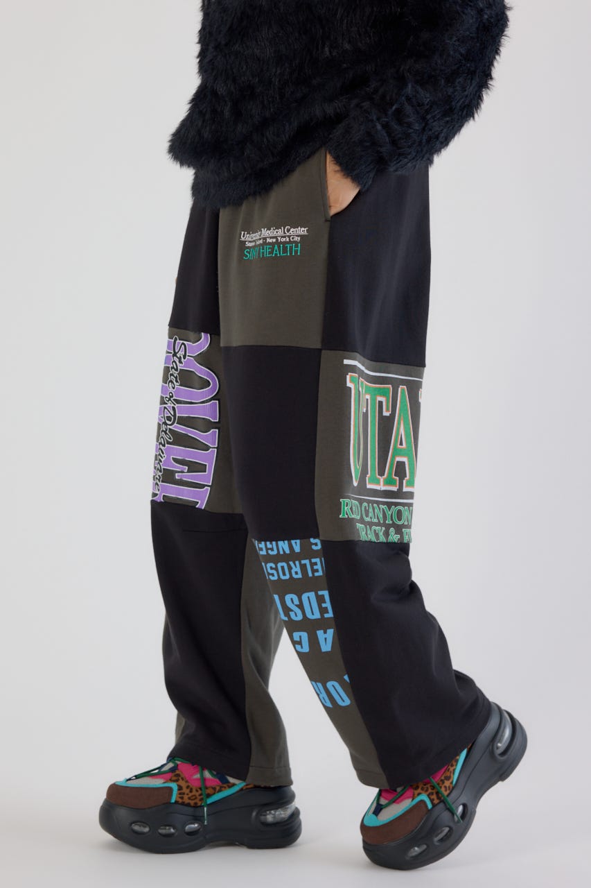 何枚かのスウェットをはぎ合わせてリメイクしたかのようなスウェットパンツ。
