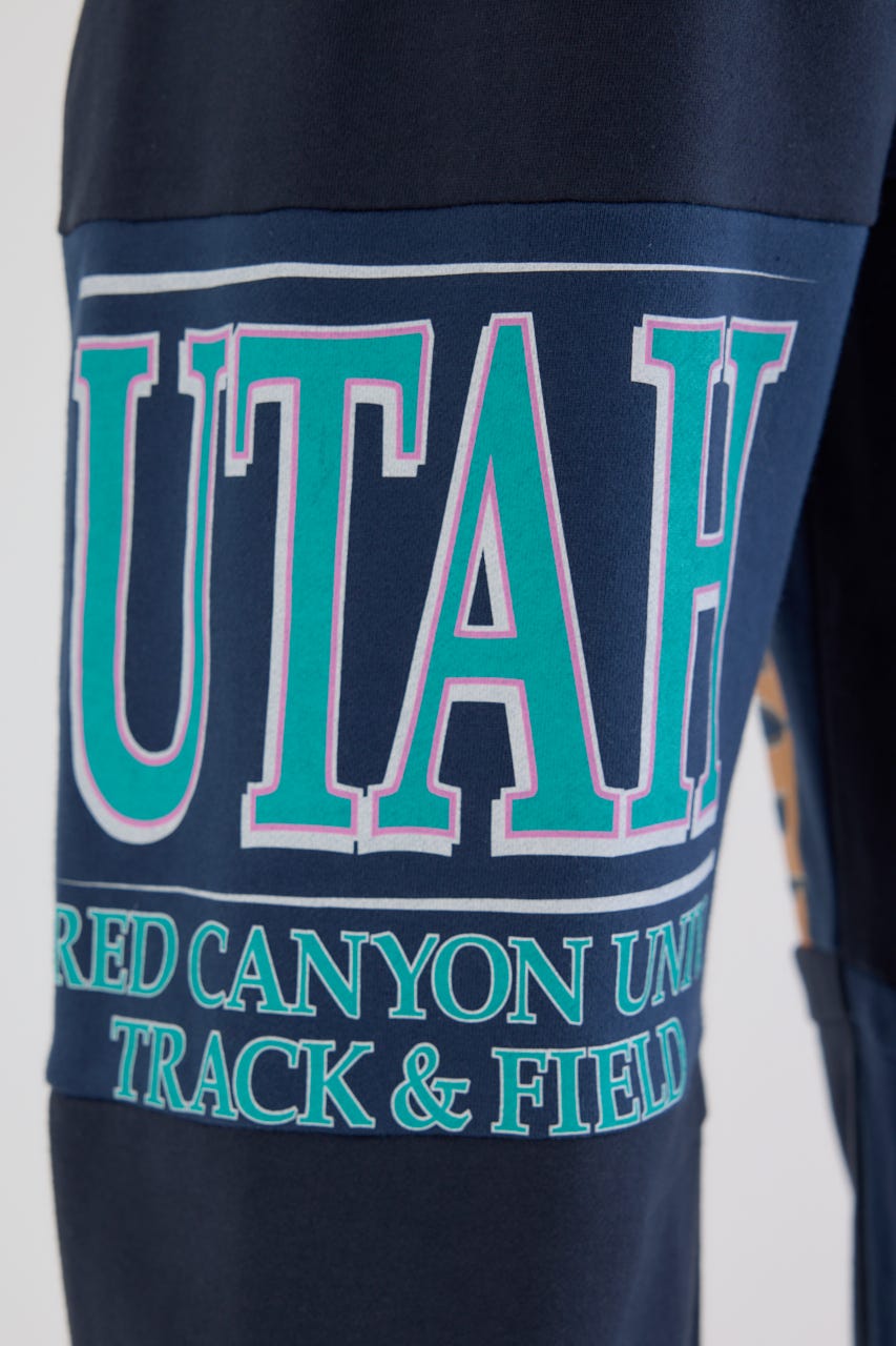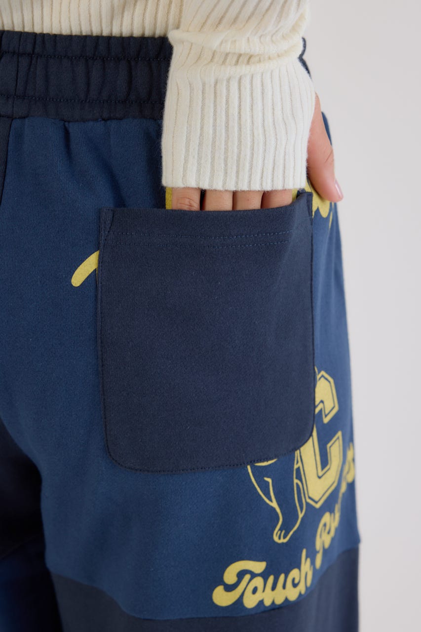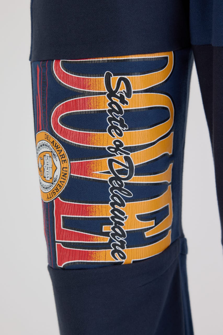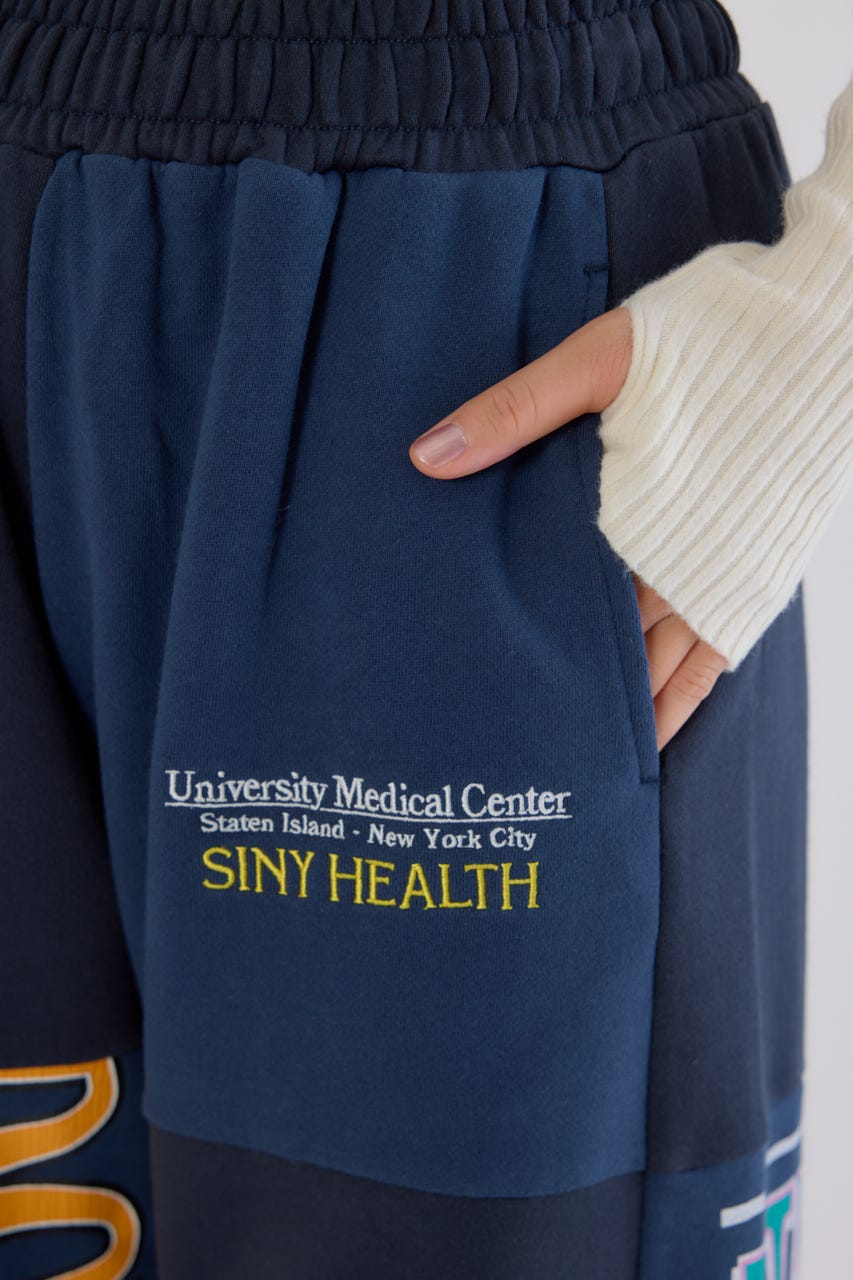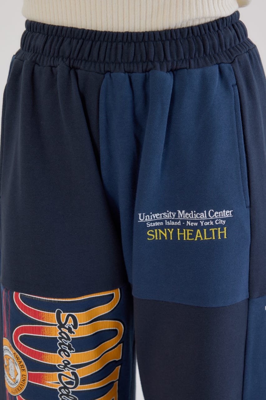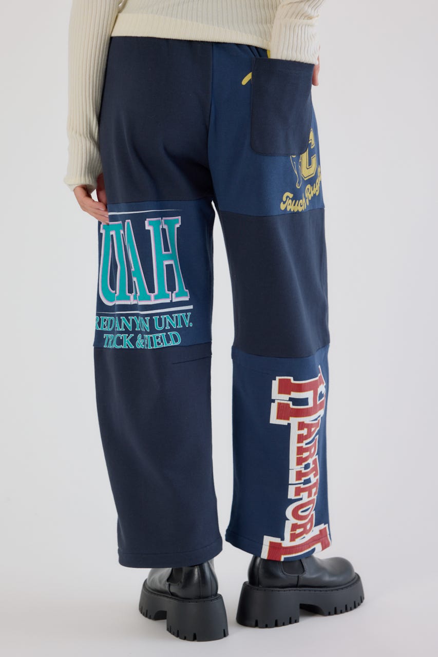 何枚かのスウェットをはぎ合わせてリメイクしたかのようなスウェットパンツ。