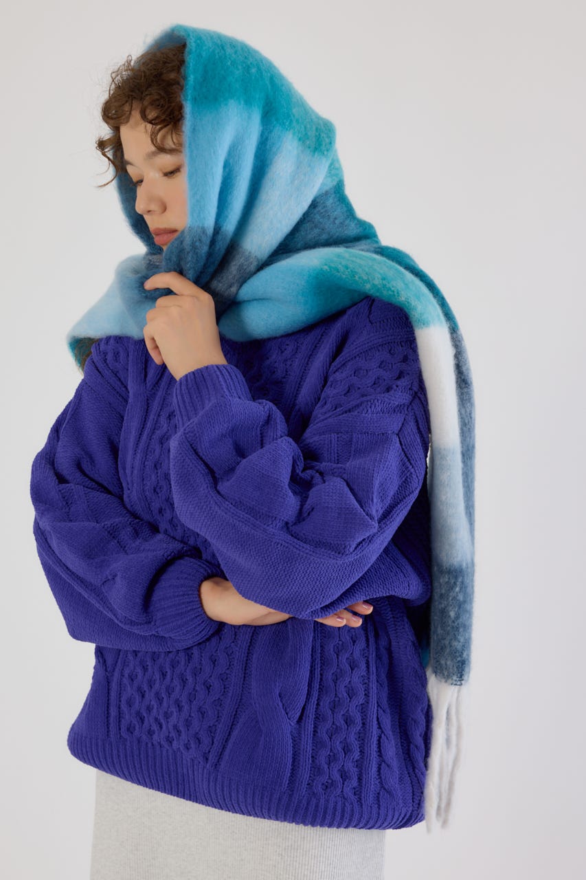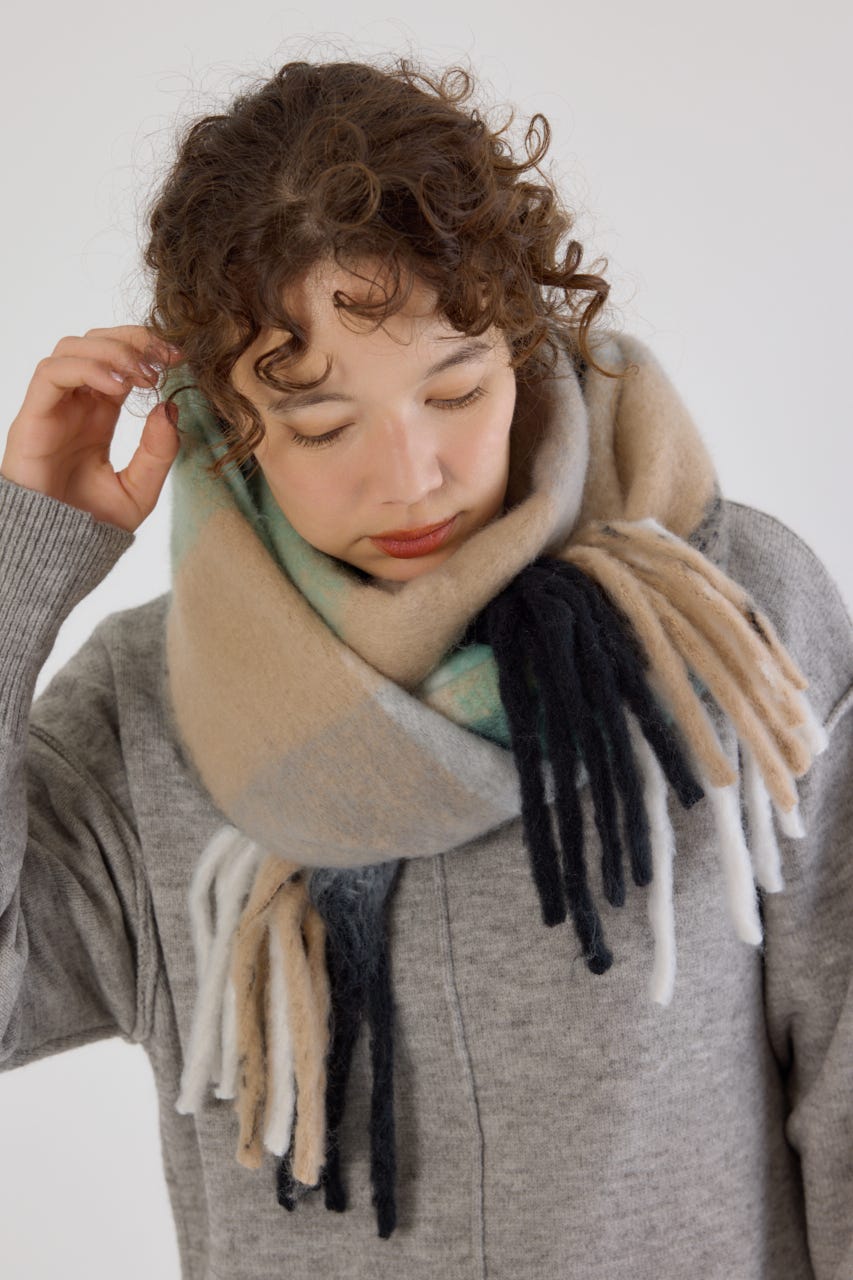 オリジナルのマルチチェック柄となるボリュームマフラー。