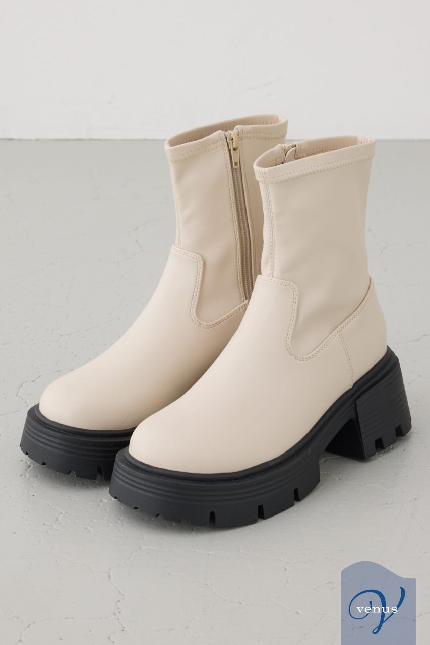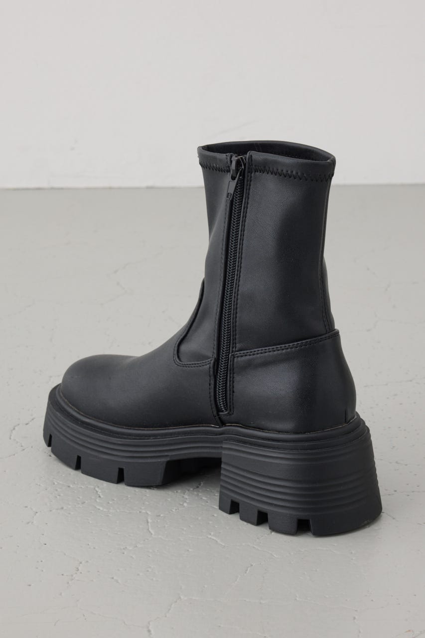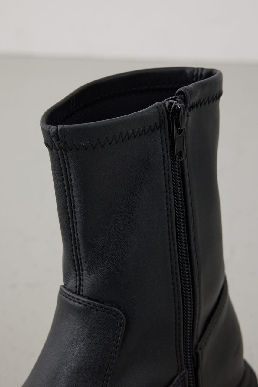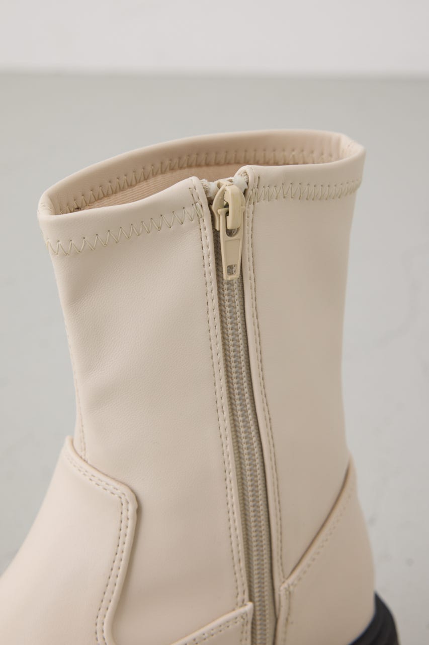 柔らかなストレッチ素材が足首を優しく包み込み、スタイルアップ見えを叶えるショートブーツ。