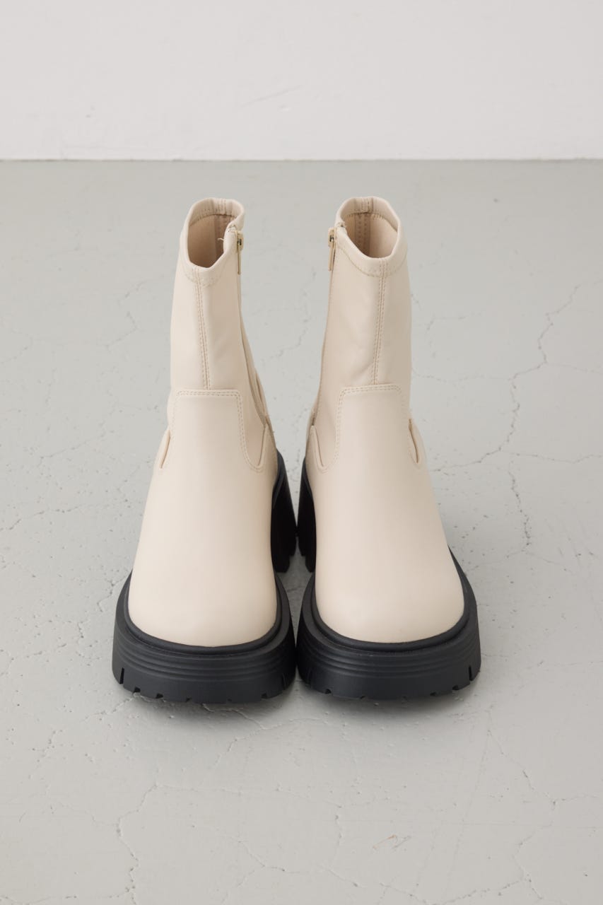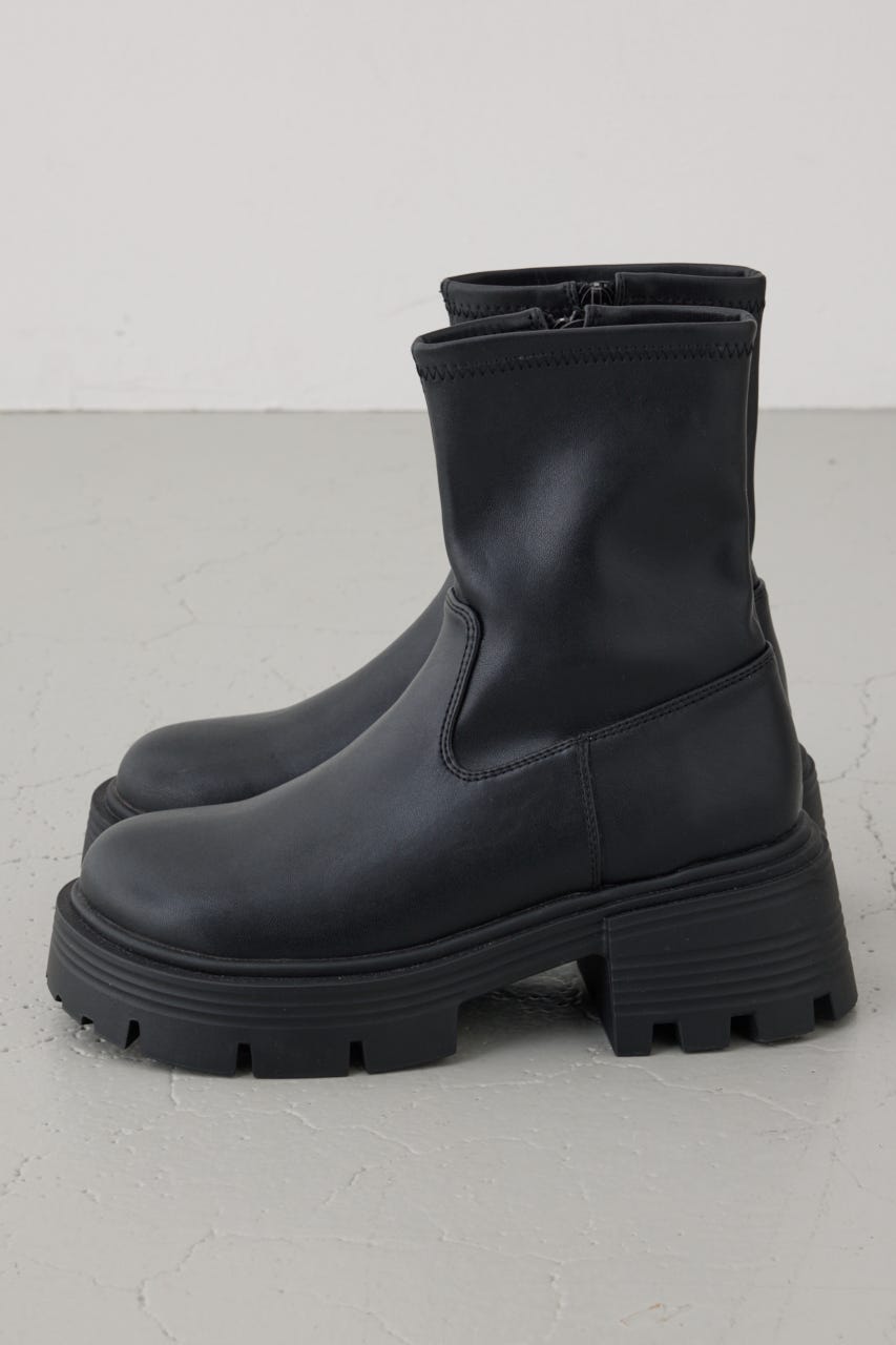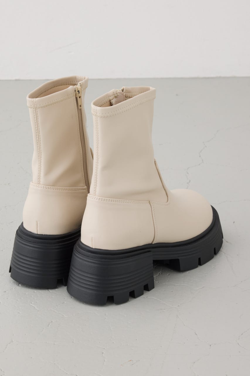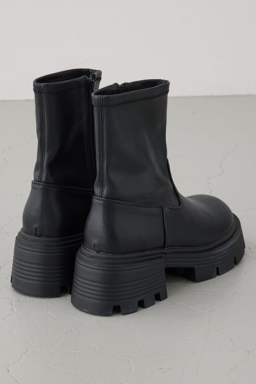 柔らかなストレッチ素材が足首を優しく包み込み、スタイルアップ見えを叶えるショートブーツ。