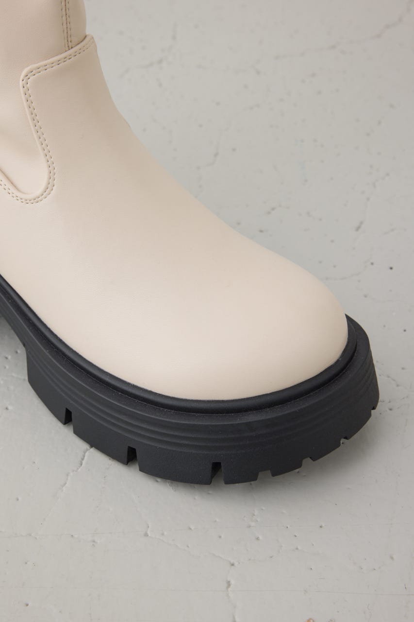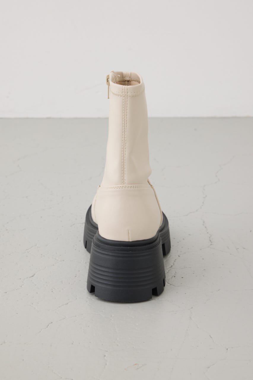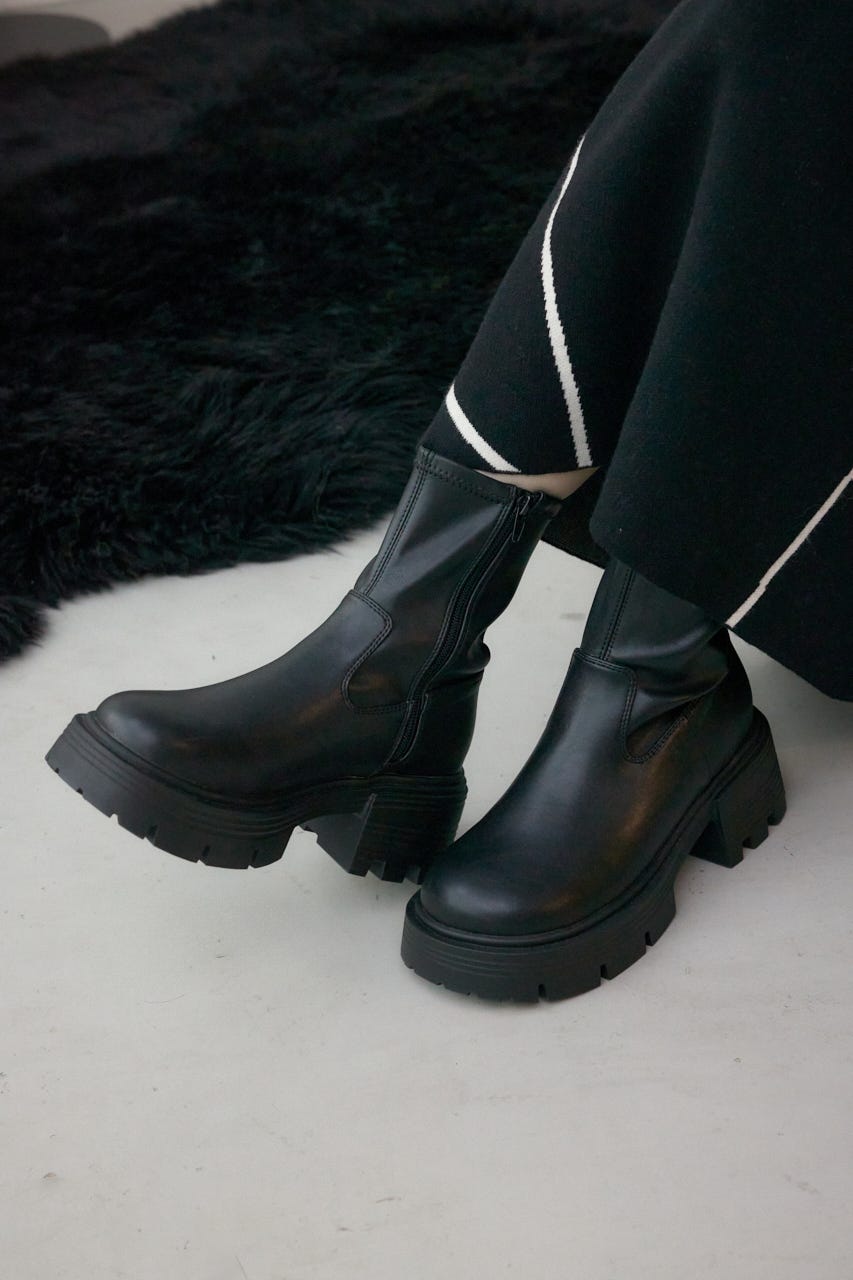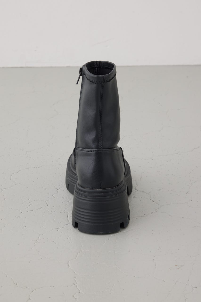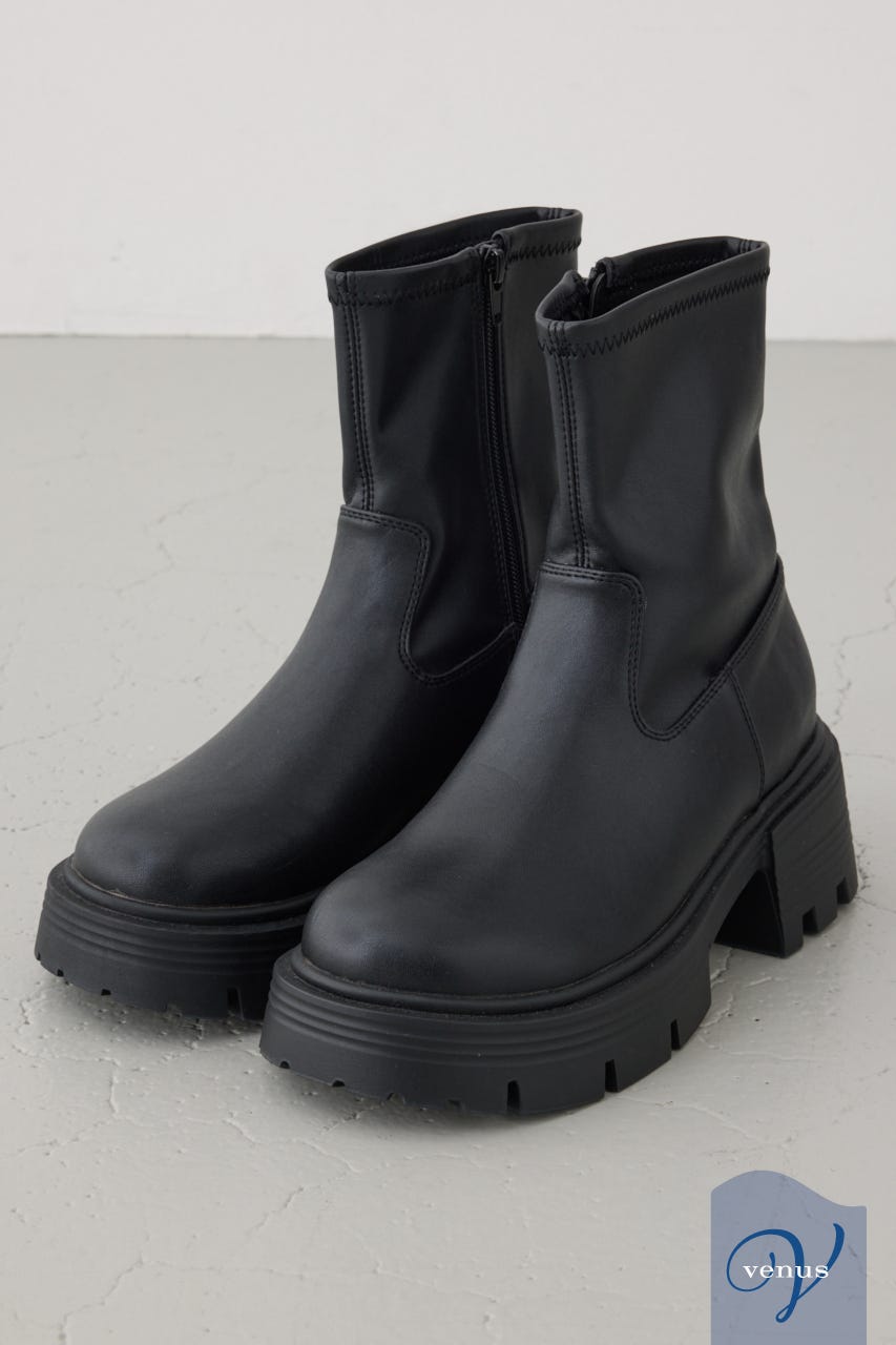 柔らかなストレッチ素材が足首を優しく包み込み、スタイルアップ見えを叶えるショートブーツ。