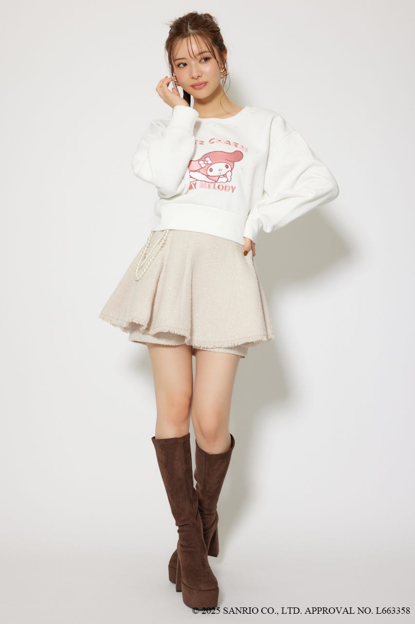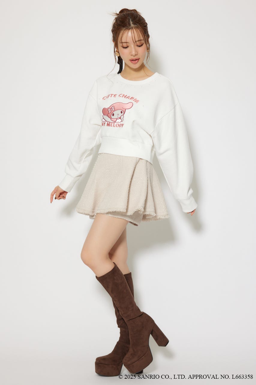 ロゴとそれぞれのキャラクターが存在感を放つ、フェミニンなムード漂うコンパクトスウェットトップス。