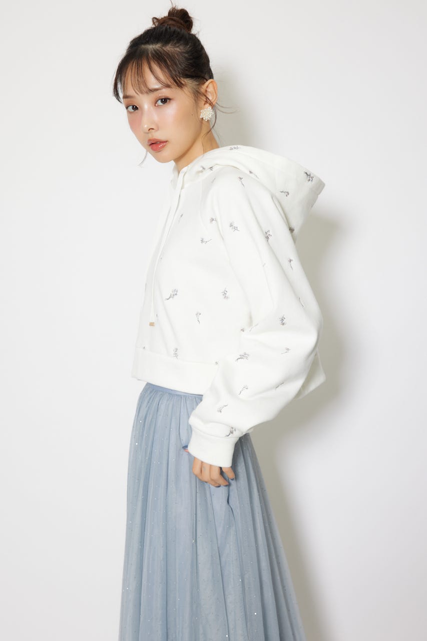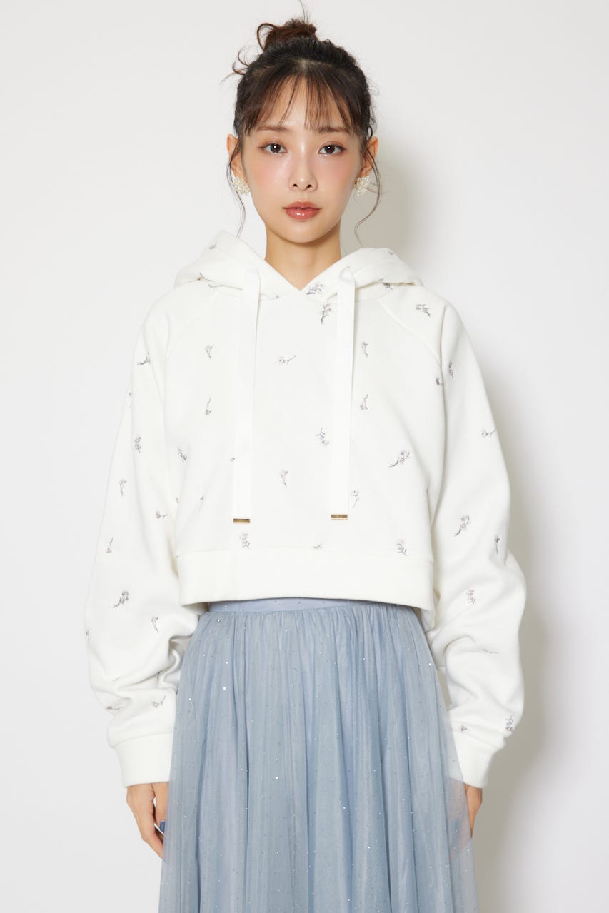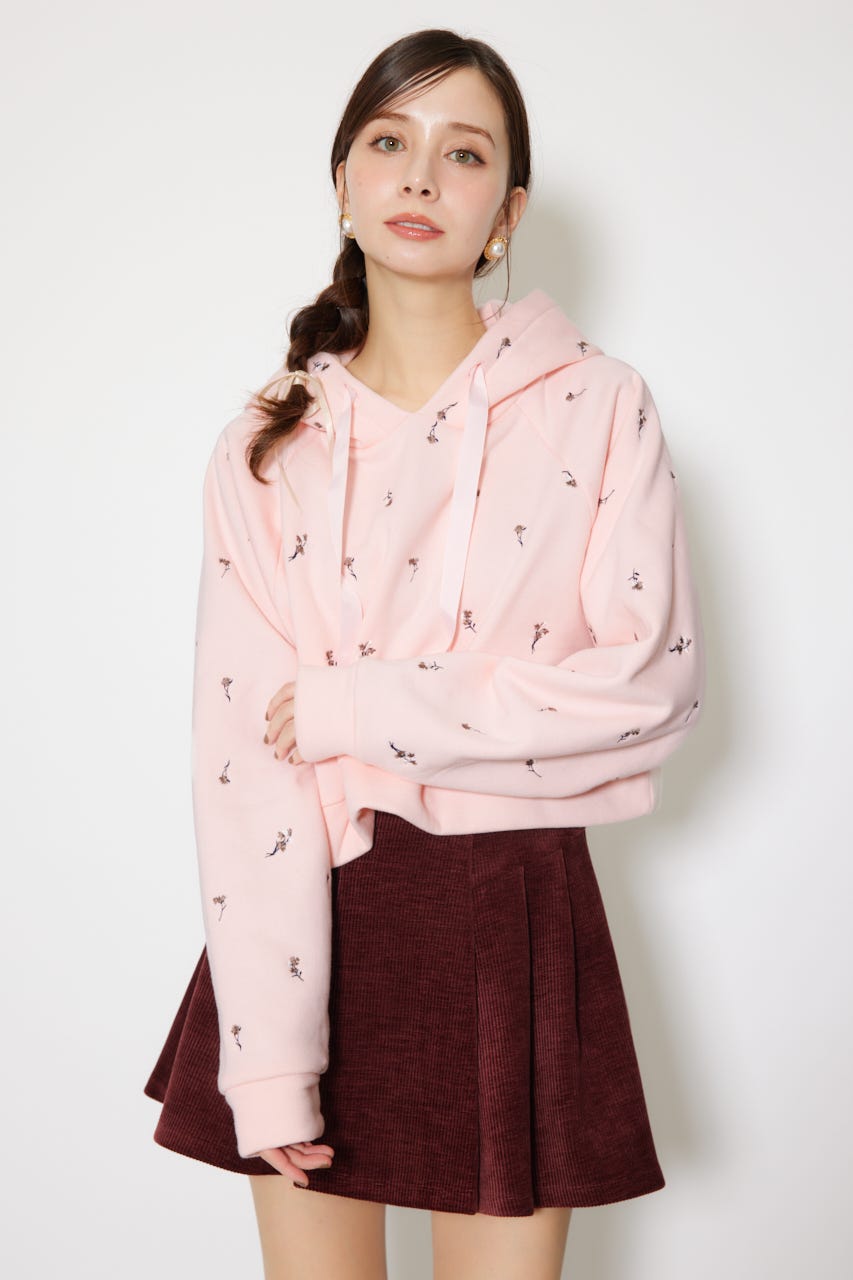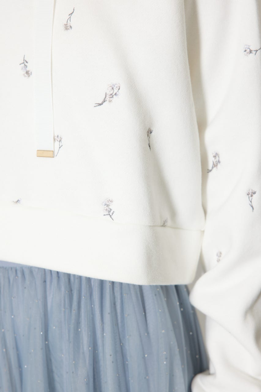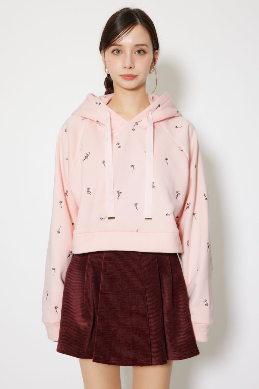 【小さな花柄刺繍がポイントのコンパクトなスウェットトップス】