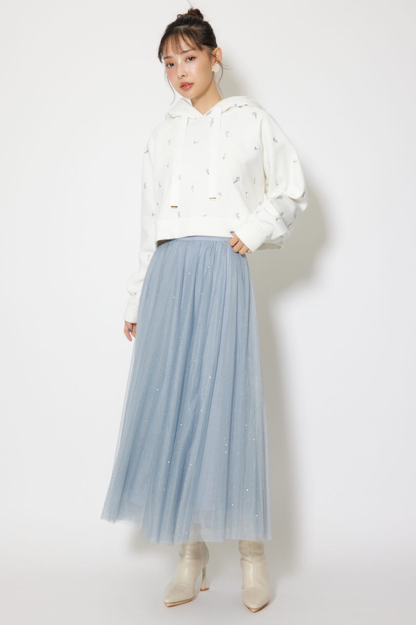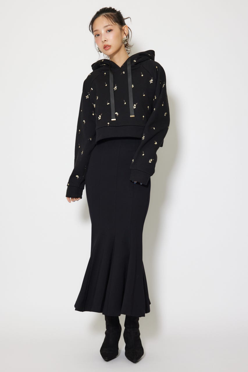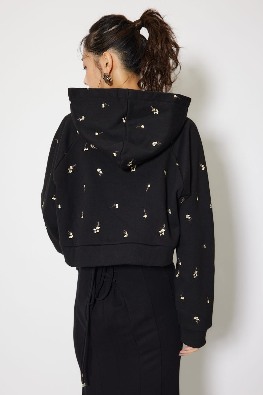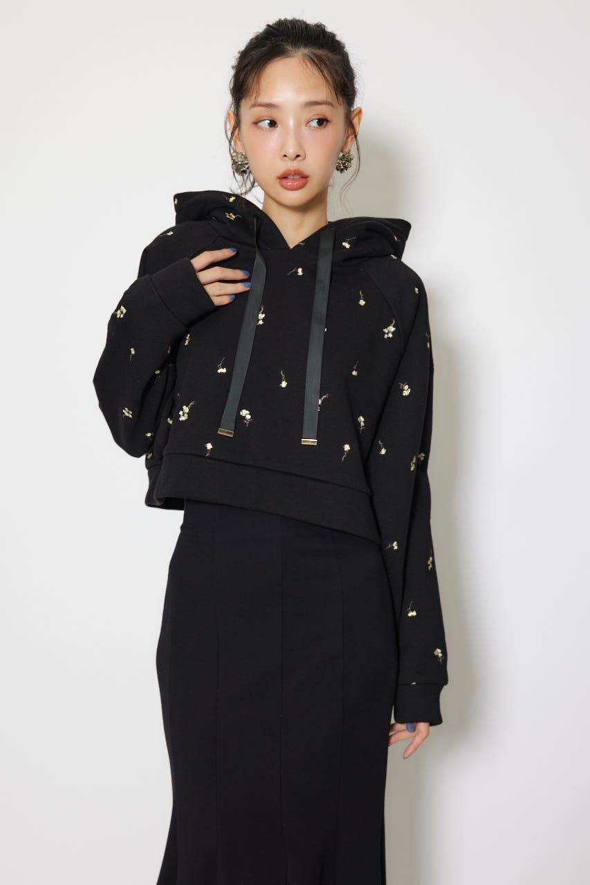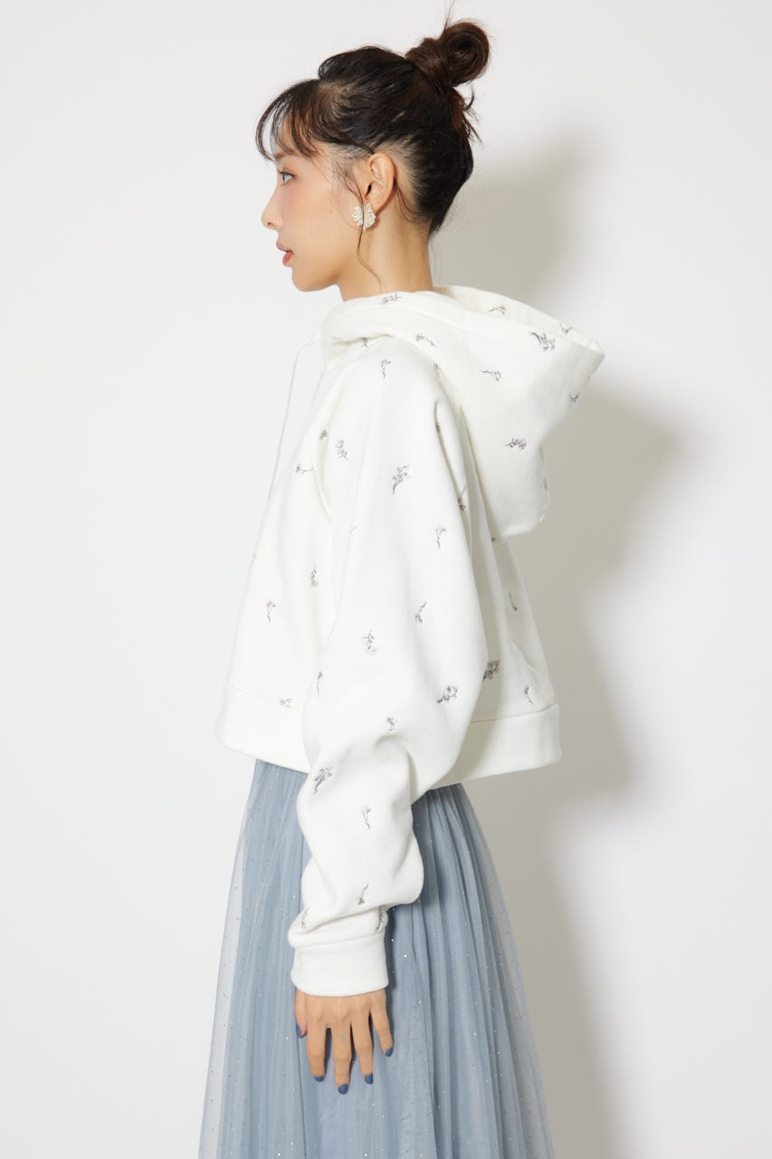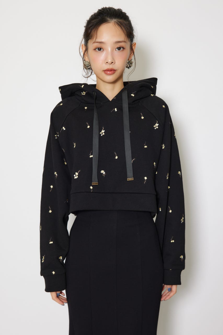 【小さな花柄刺繍がポイントのコンパクトなスウェットトップス】