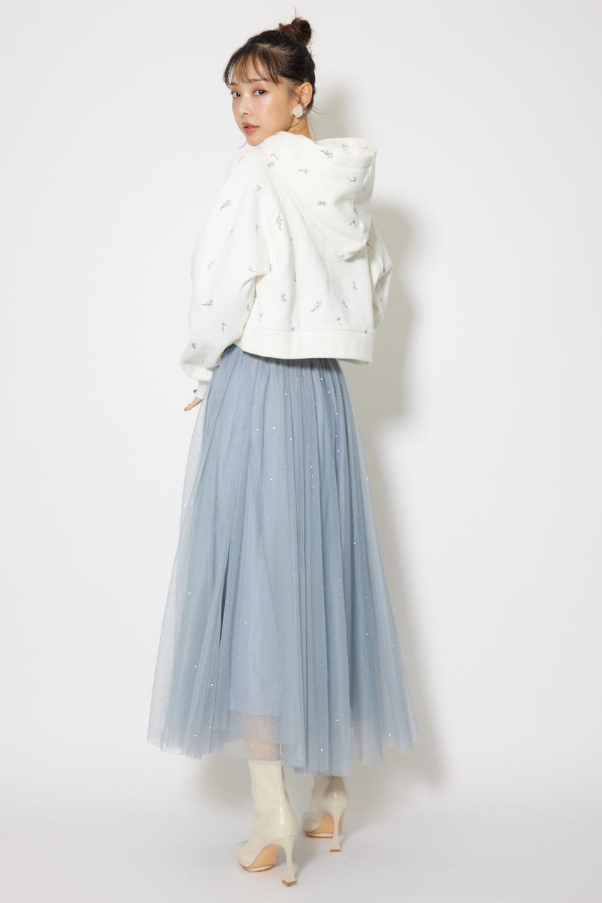 ミニ丈のボトムスかフレアのロングスカートに合わせるのがおすすめです。