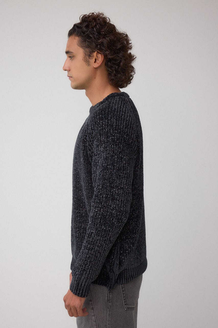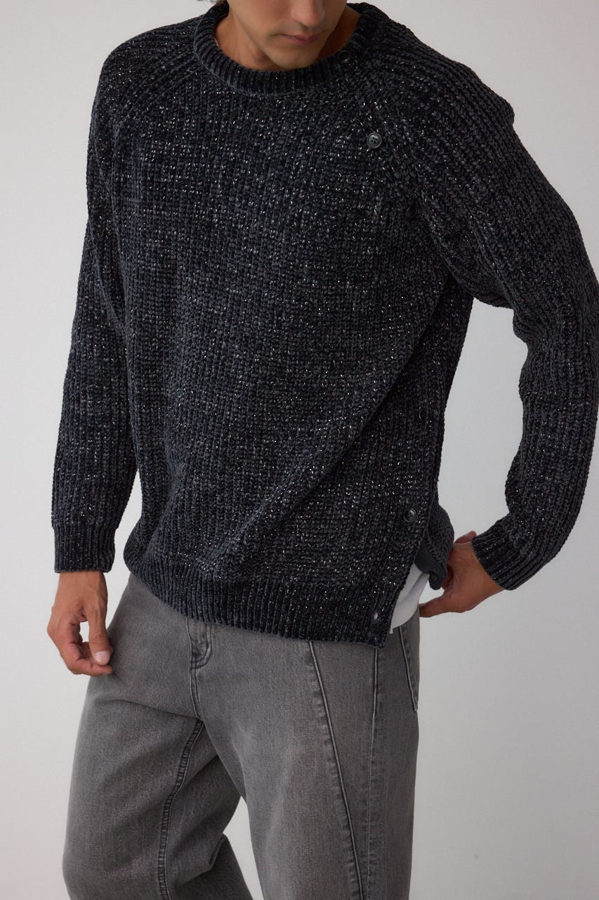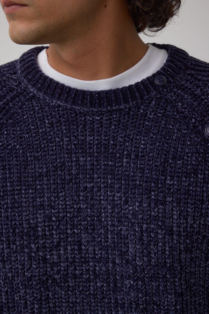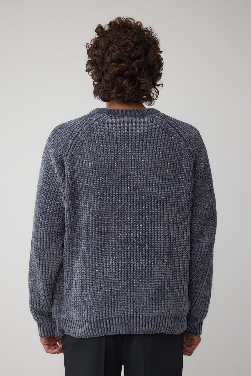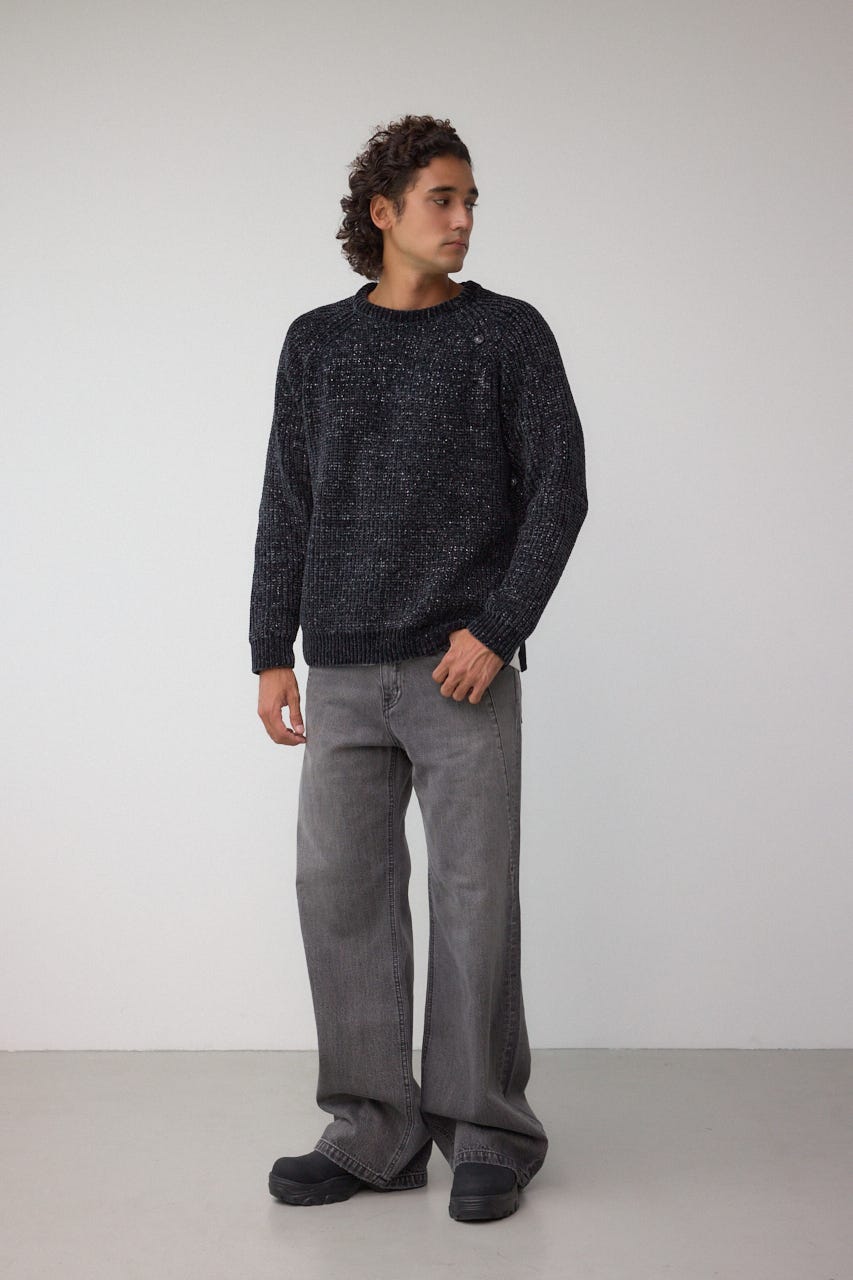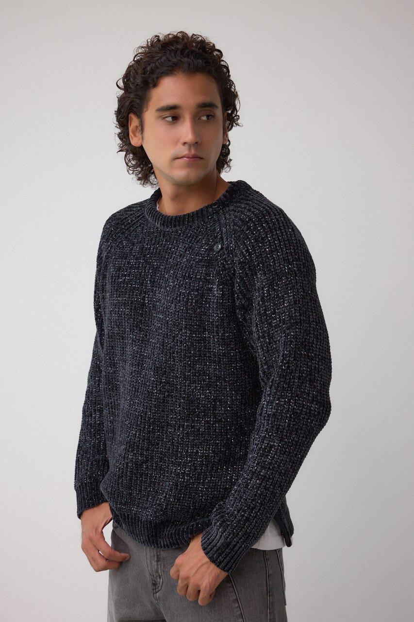 モールヤーンを使用し、軽く、柔らかくモチモチした風合いとラメの光沢感の対比のミックス感が特徴です。